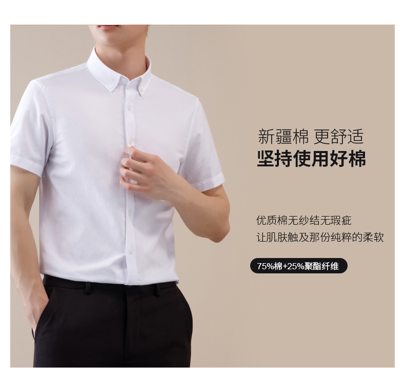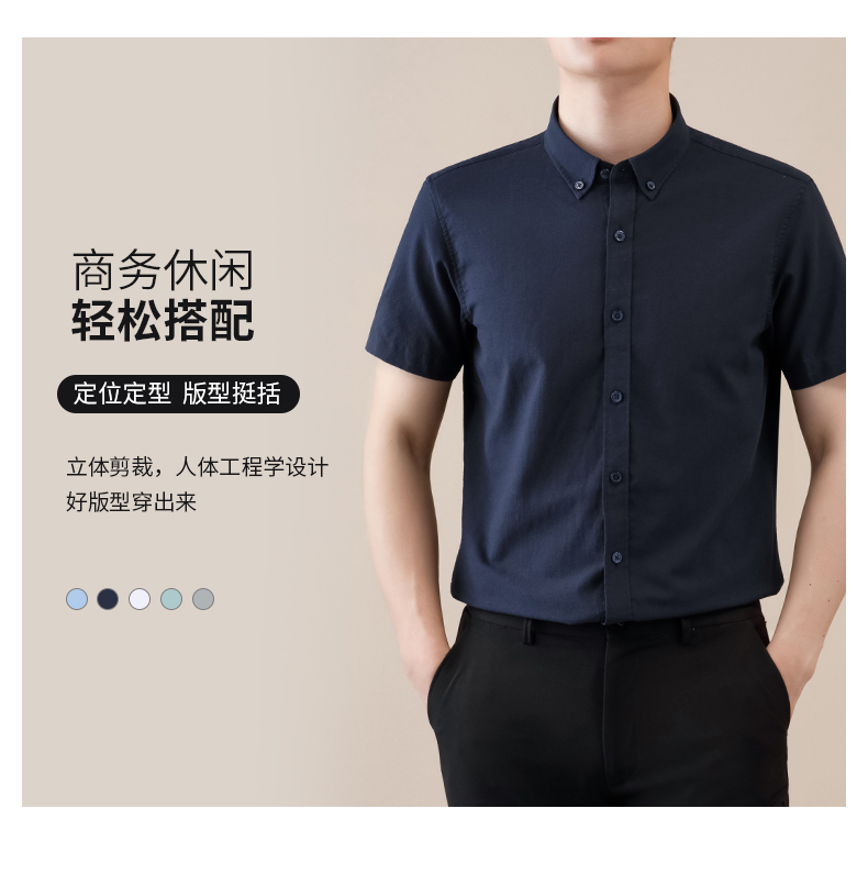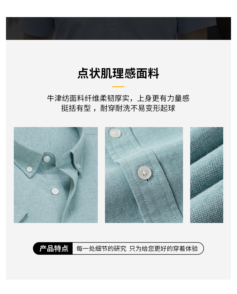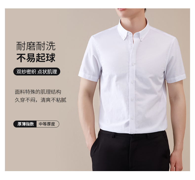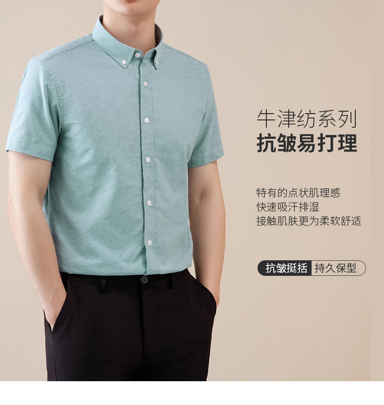 【牛津纺】罗蒙男士夏季短袖衬衫舒适百搭经典纯色简约休闲通勤上班男衬衫