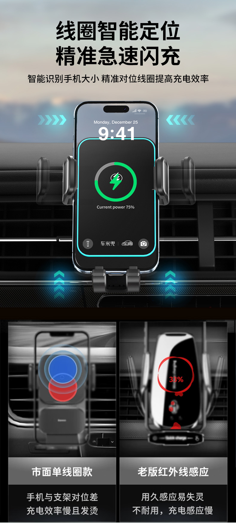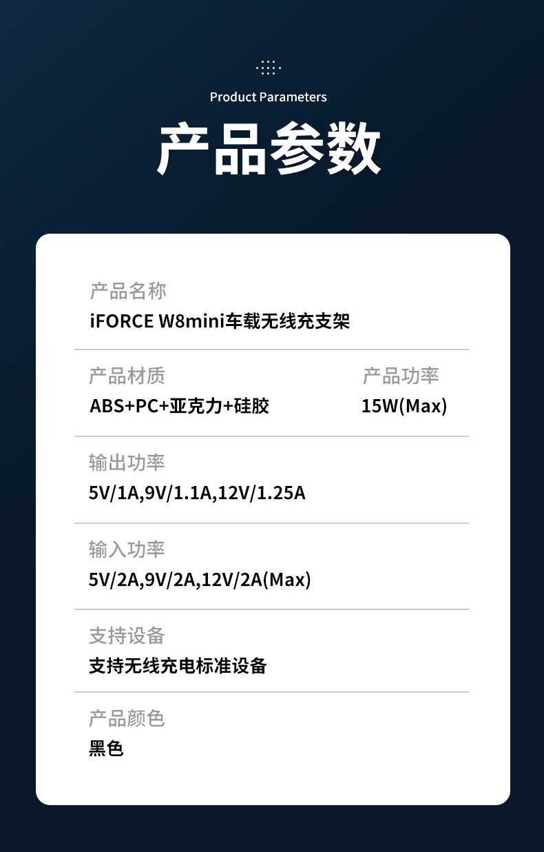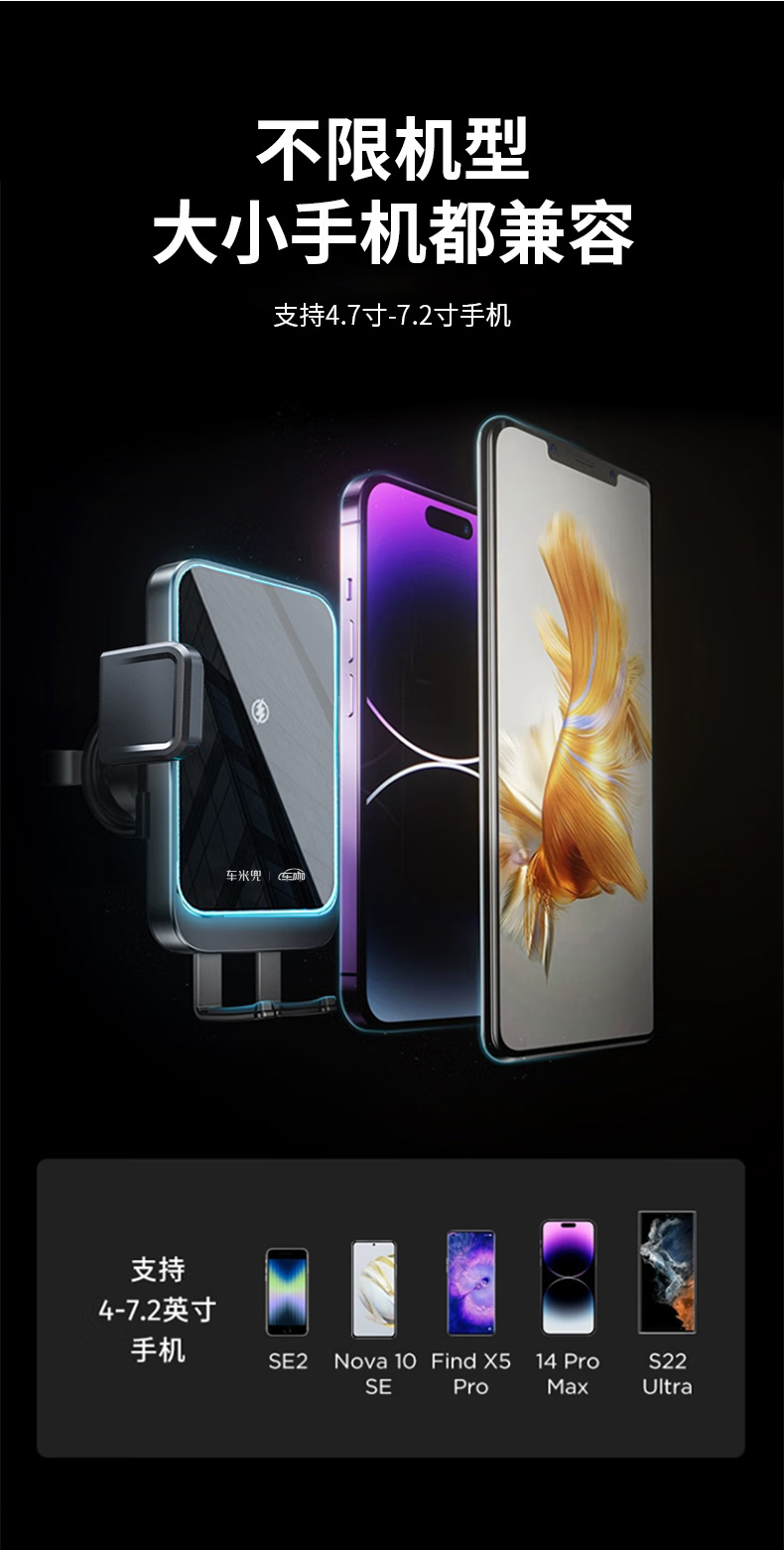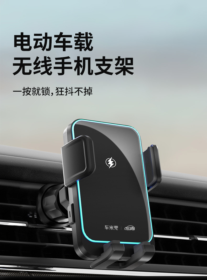 【精选】车米兜 W8mini电动车载无线充手机支架 360°旋转调节三角稳固支撑高效散热不伤机极速闪充