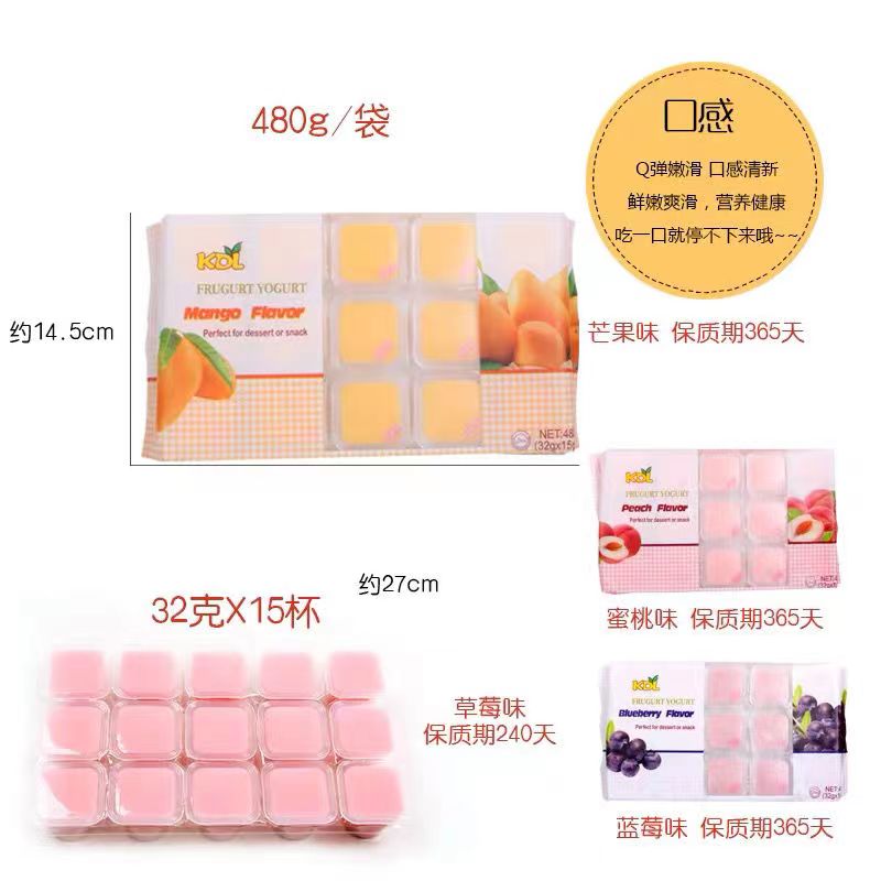 【中欧班列精选】KDL布丁大板蓝莓芒果桃子大板果冻布丁休闲零食果冻480G*袋
