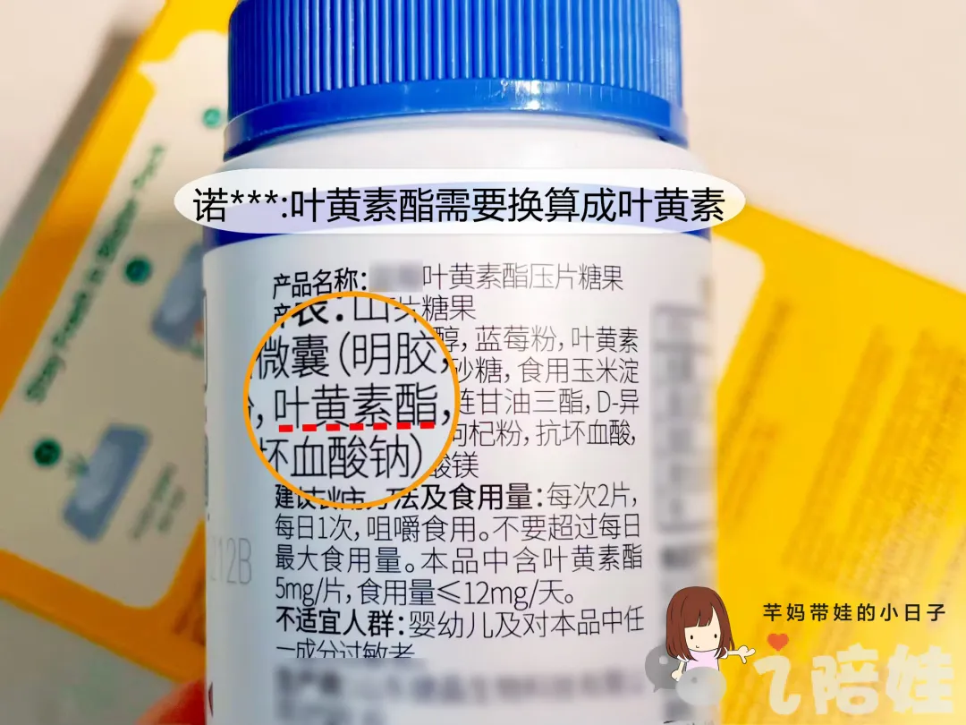 像这种,配料表会标注出它是叶黄素酯,还是叶黄素,我会选标注叶黄素的。