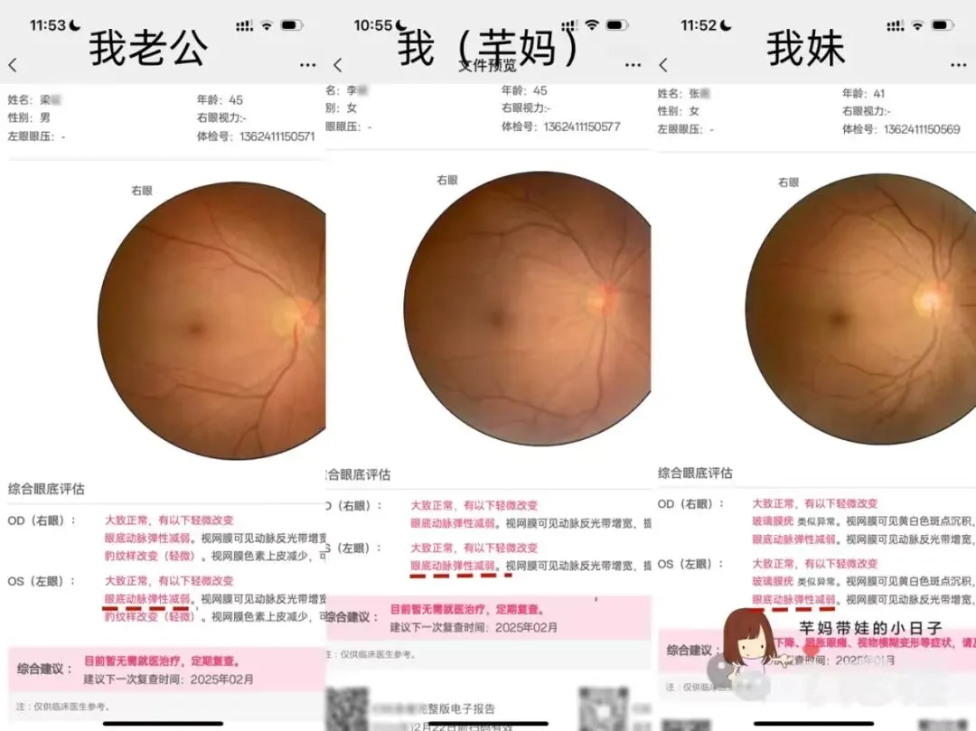过了40以后,还伴有视网膜动脉硬化和老化的问题了(我老公,我,我妹都是)。