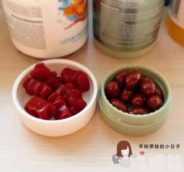 ●儿童款1颗含10mg叶黄素,酸甜莓果味道的,1天1颗就够了。