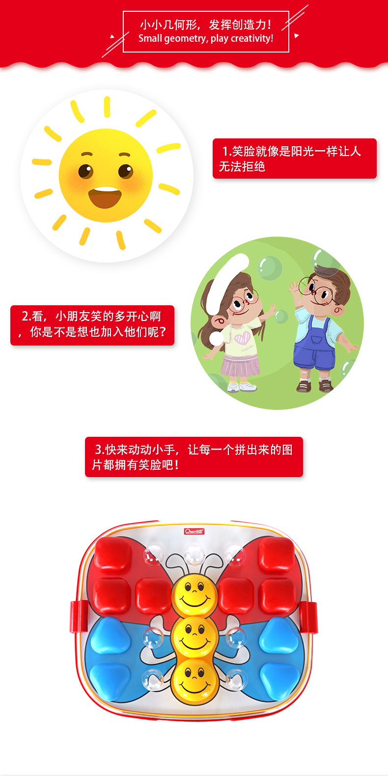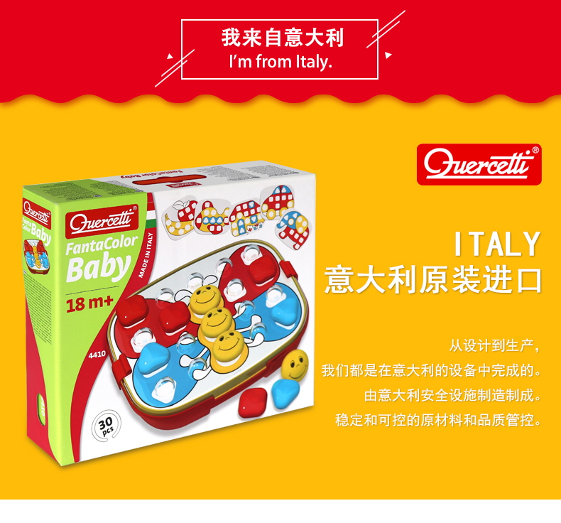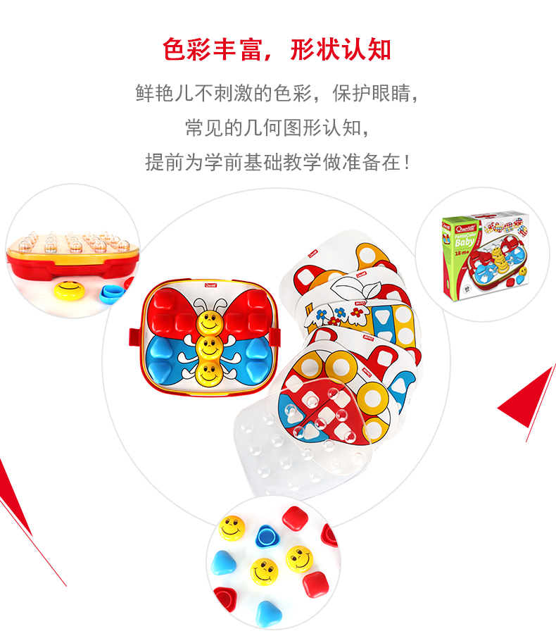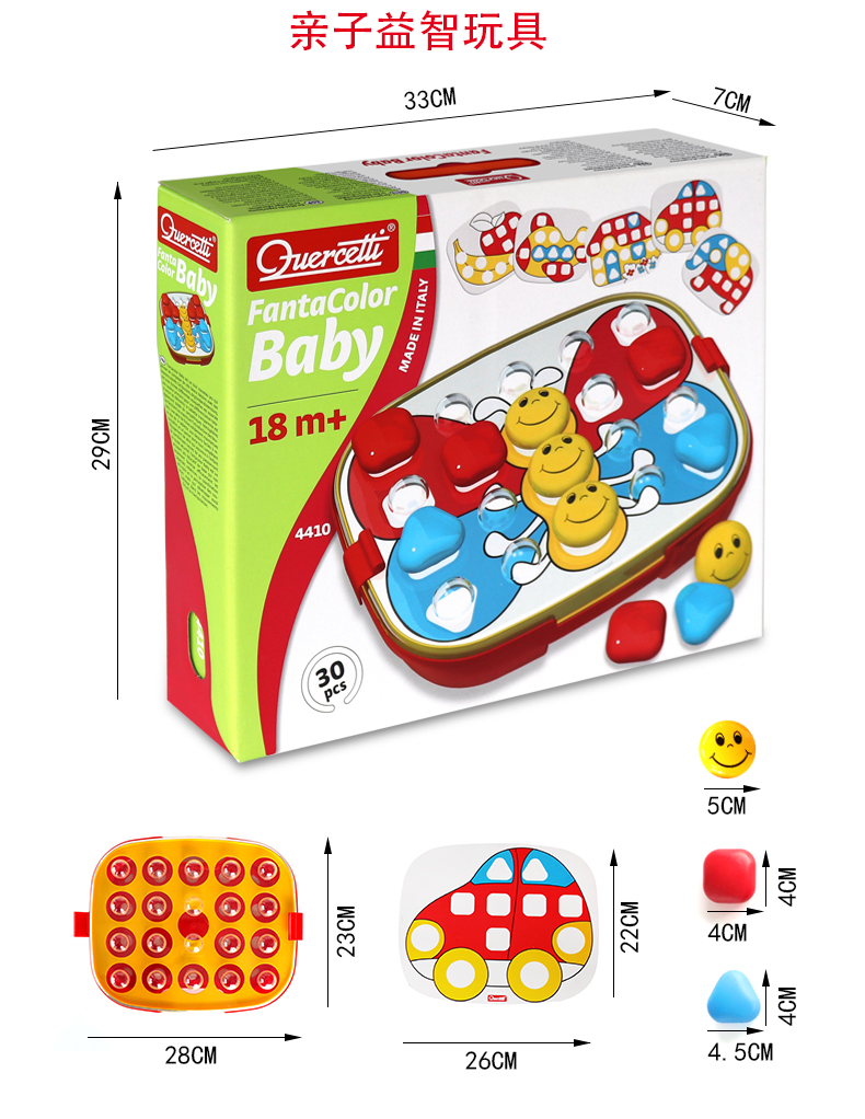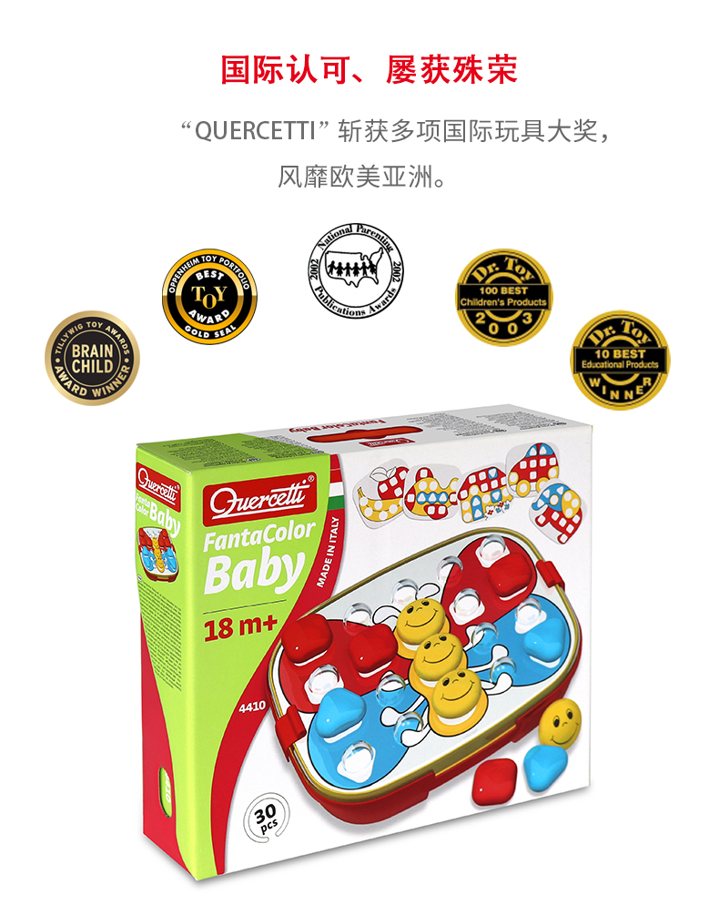 Quercetti启迪 早教系列 笑脸幼儿拼图(圆形方形三角形3色精装版)Q4410 1.5+岁 意大利