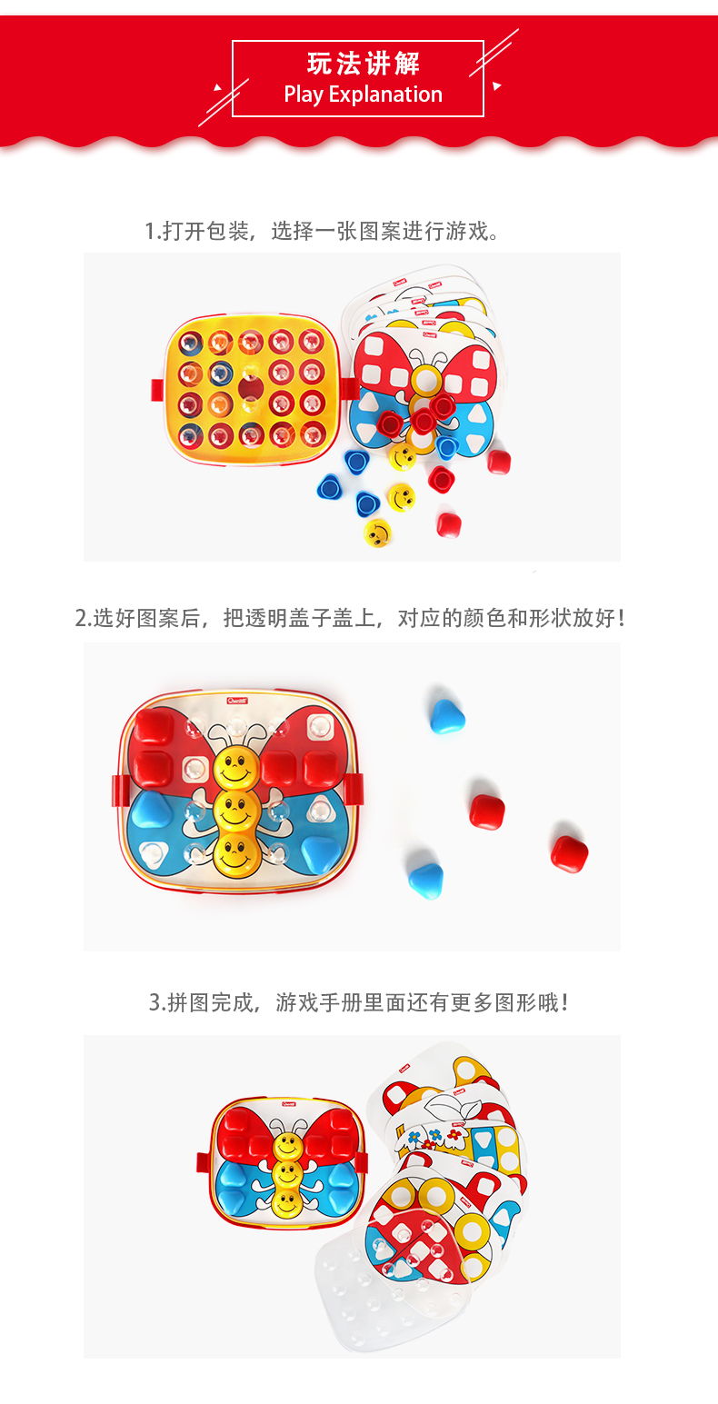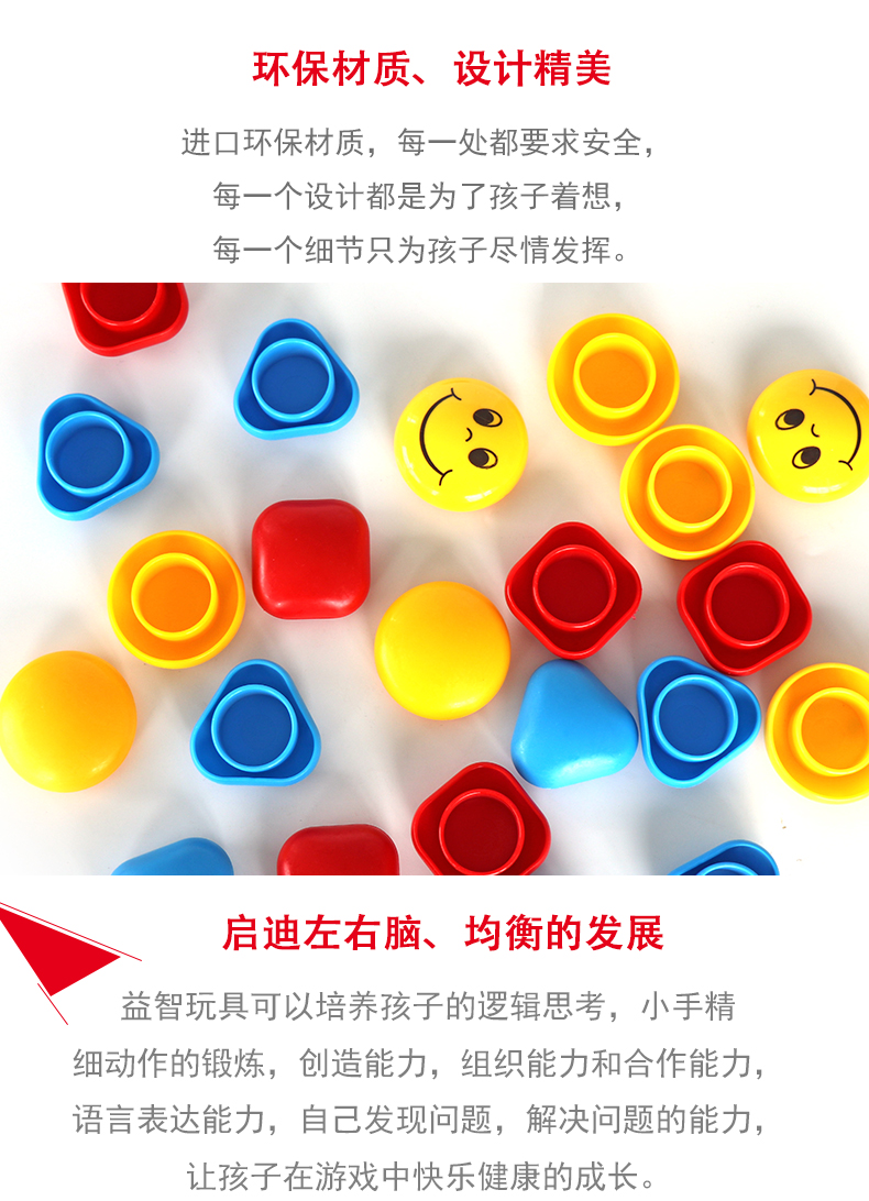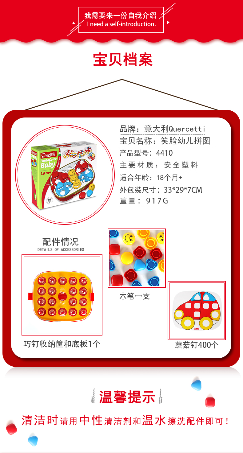 Quercetti启迪 早教系列 笑脸幼儿拼图(圆形方形三角形3色精装版)Q4410 1.5+岁 意大利