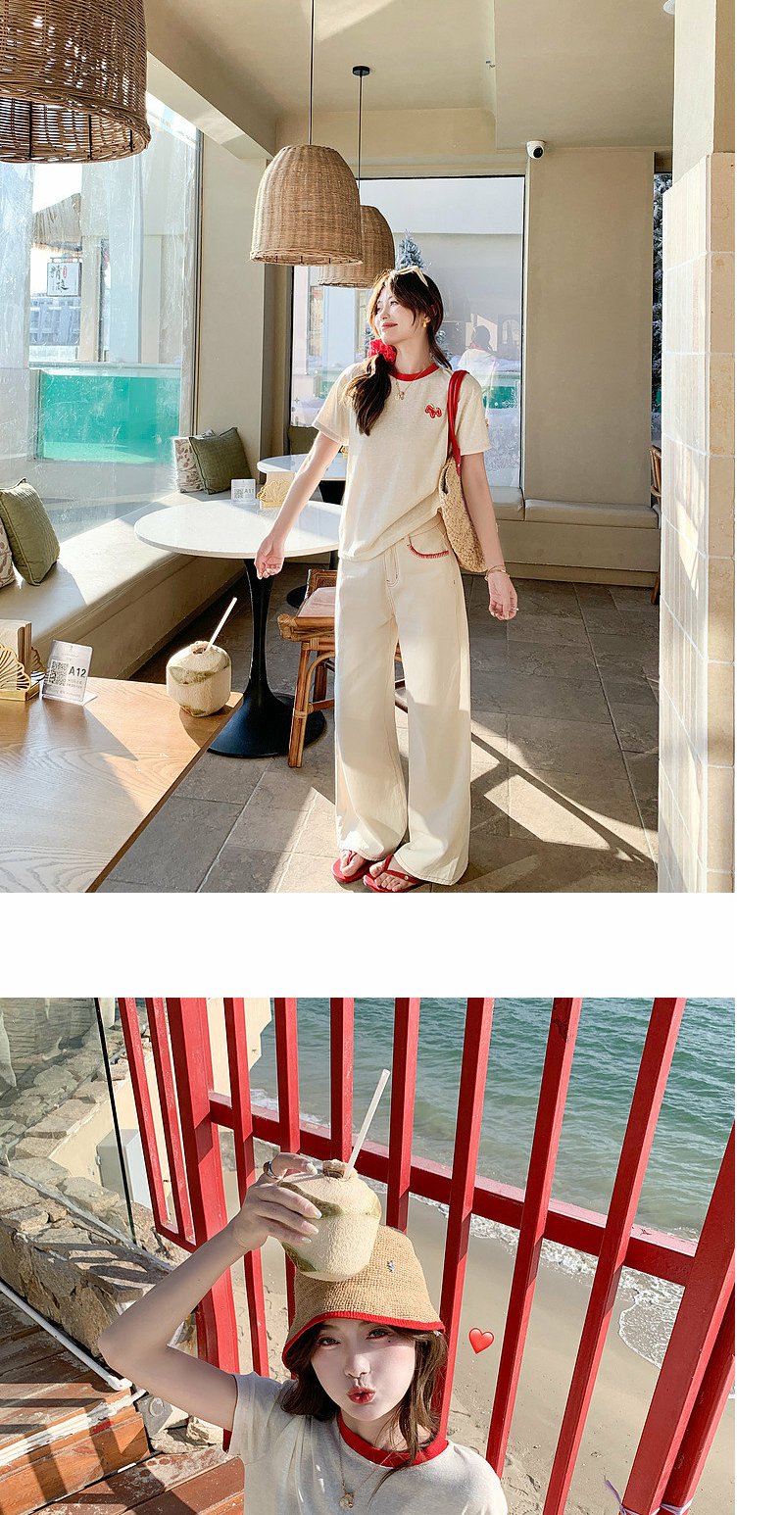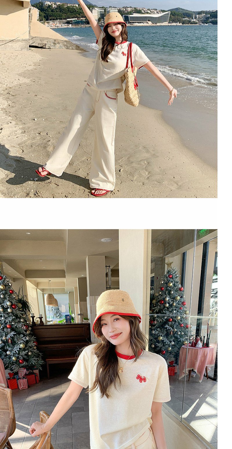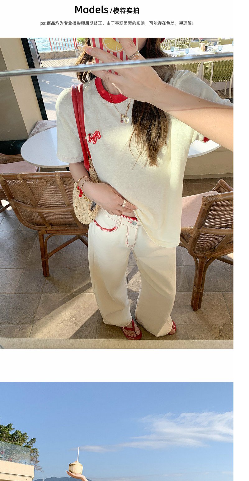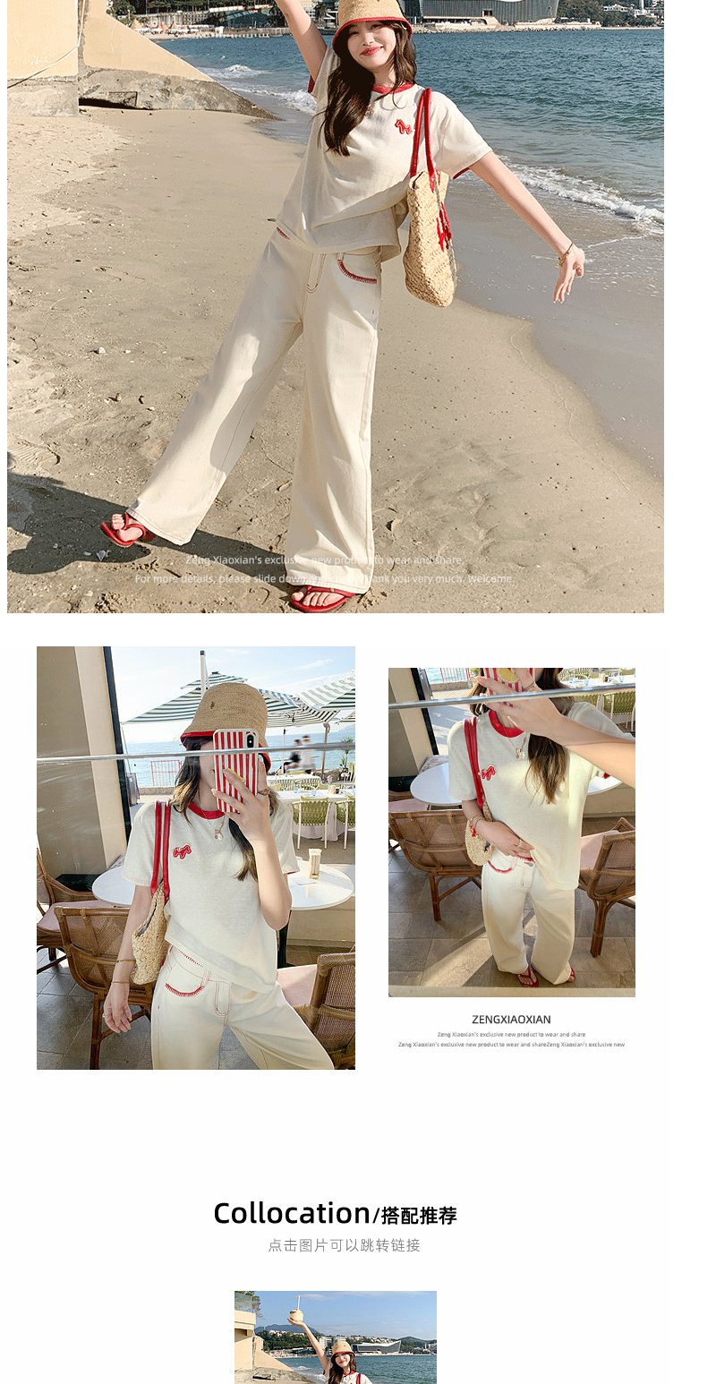 <曾小咸推荐>韩系撞色圆领减龄短袖t恤女