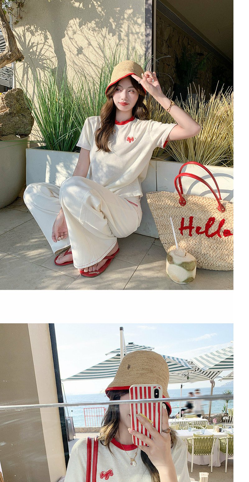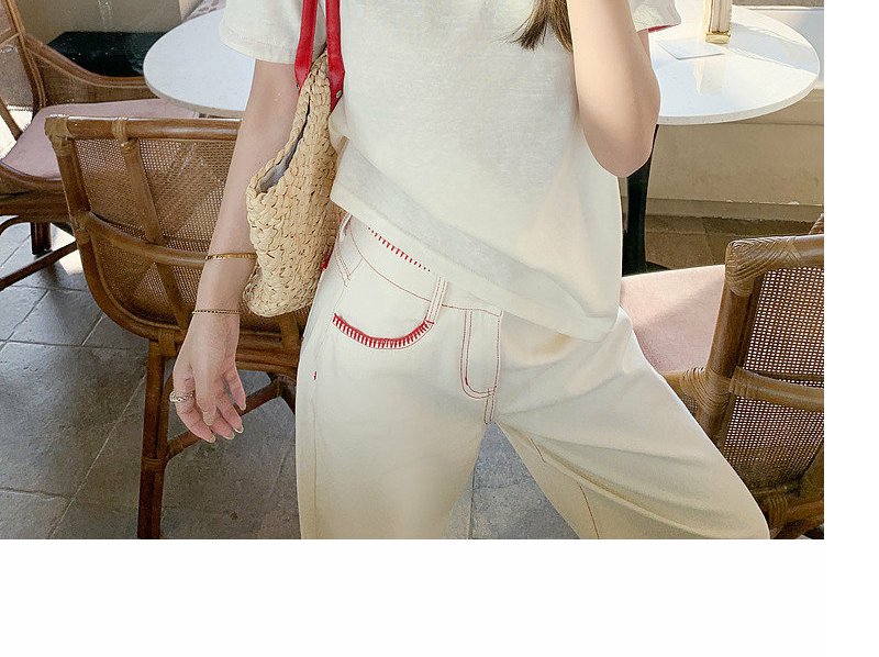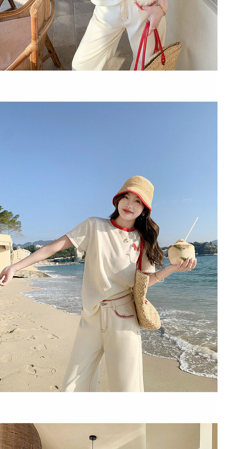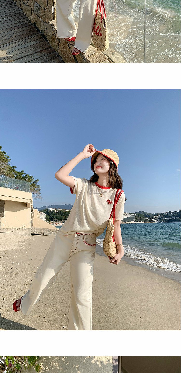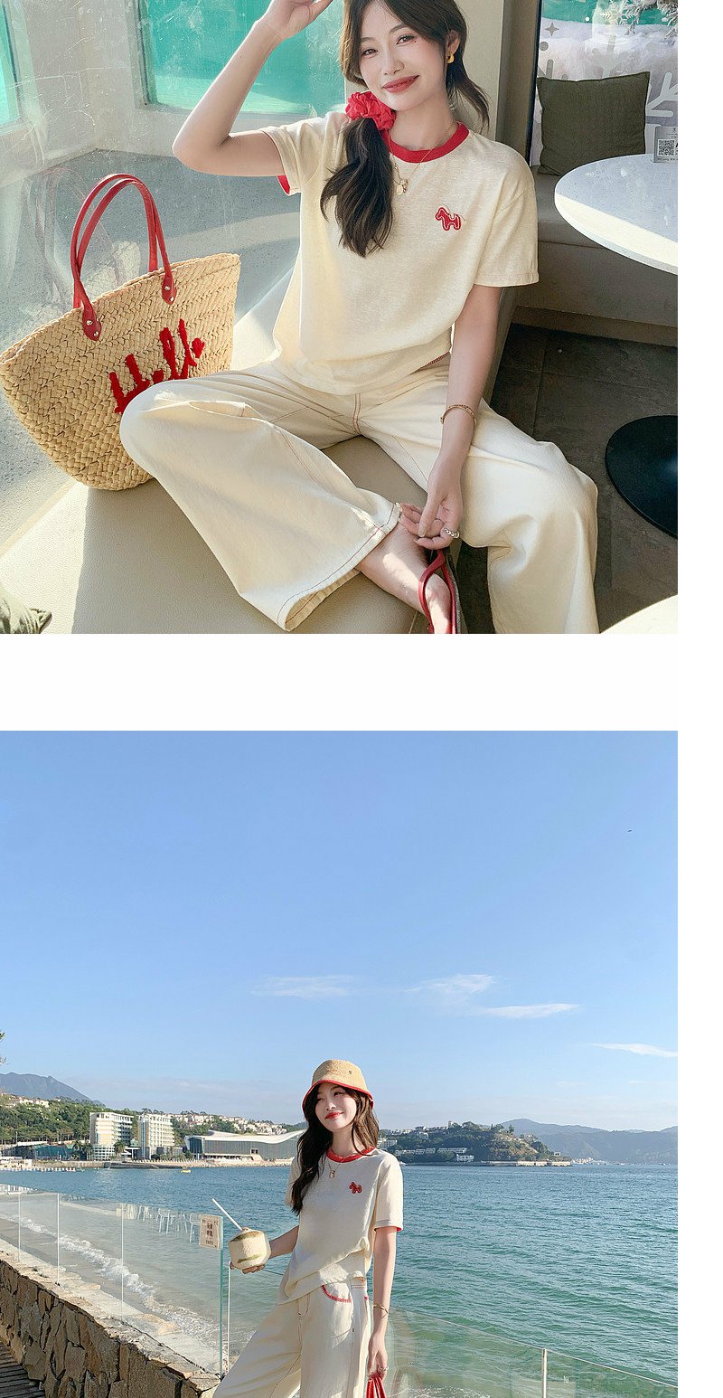 <曾小咸推荐>韩系撞色圆领减龄短袖t恤女