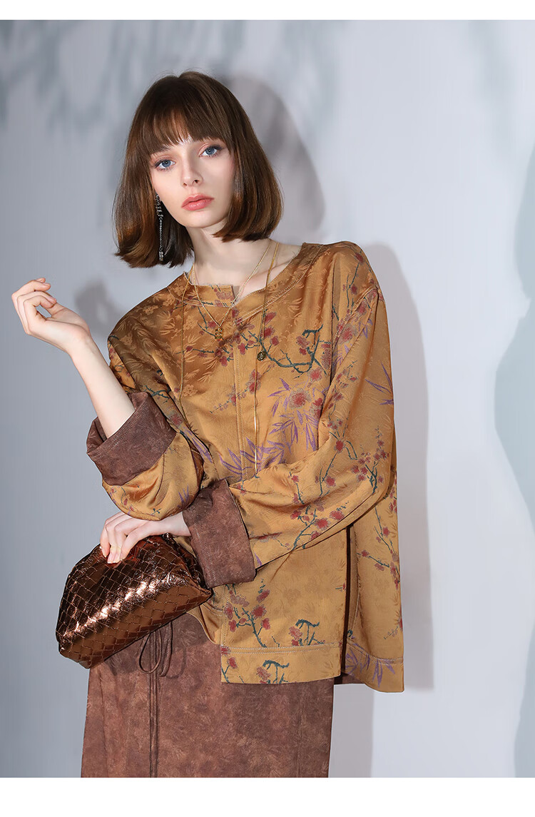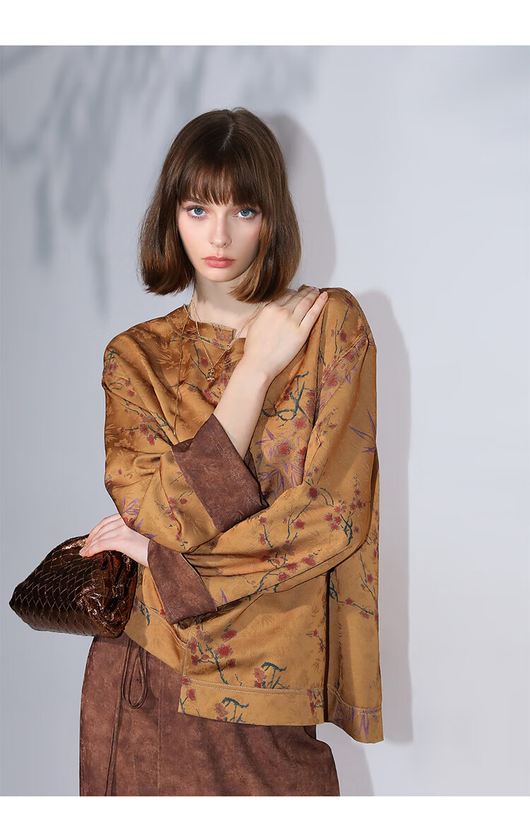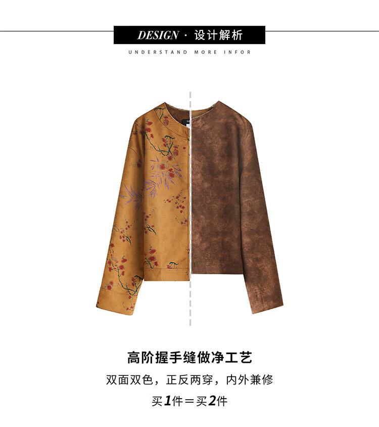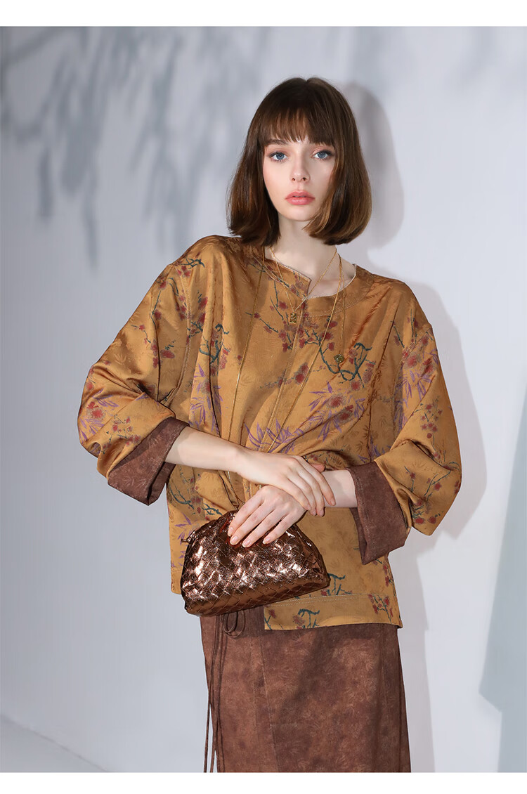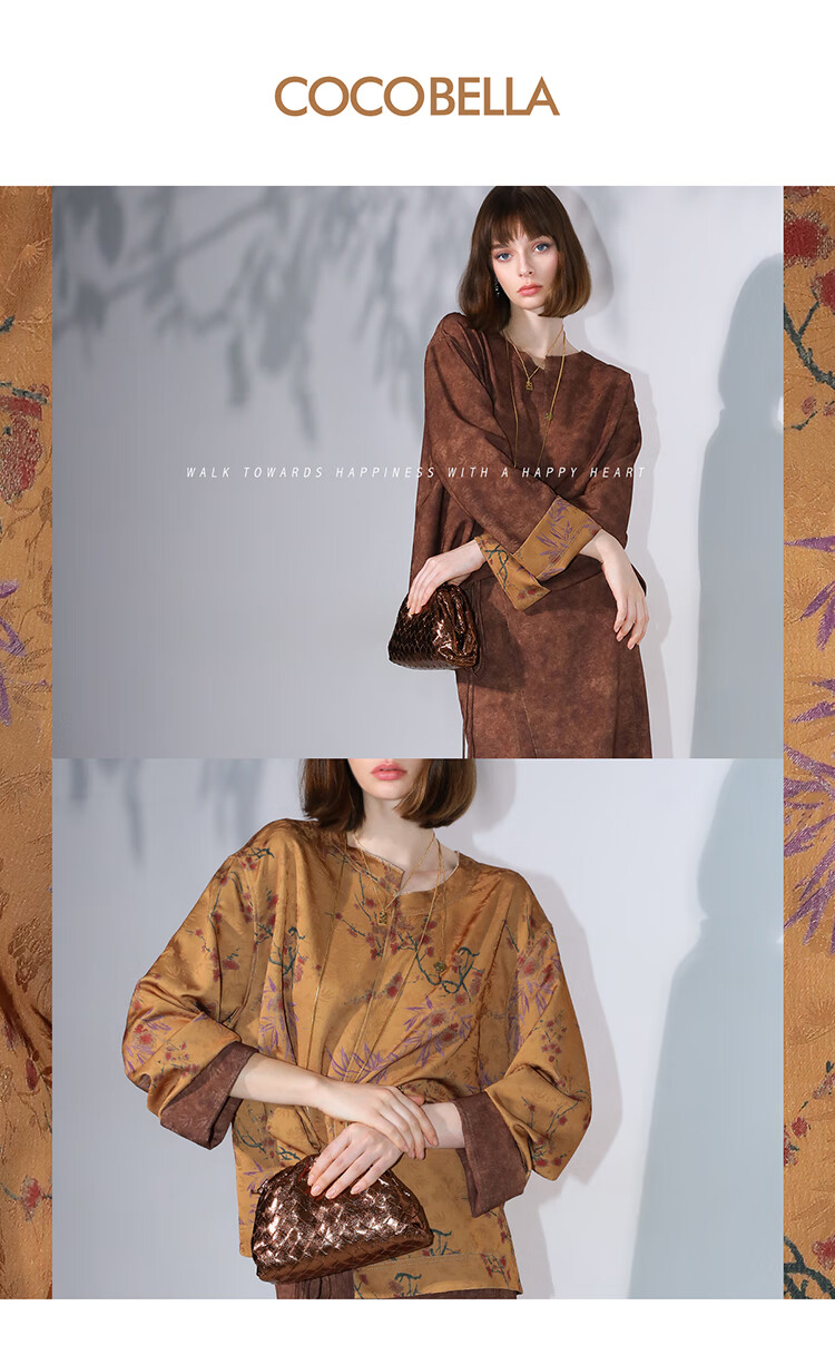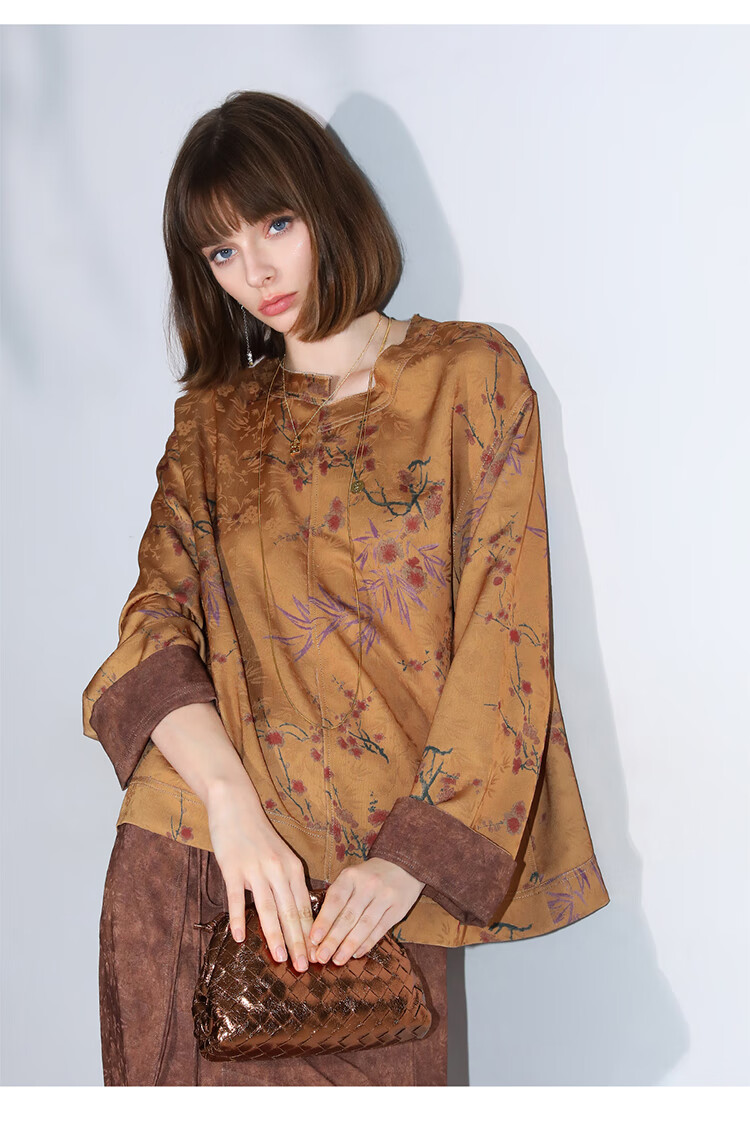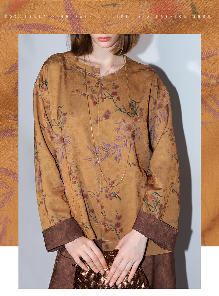 COCOBELLA仿香云纱双面穿提花缎衬衫两面穿新中式上衣TS3015