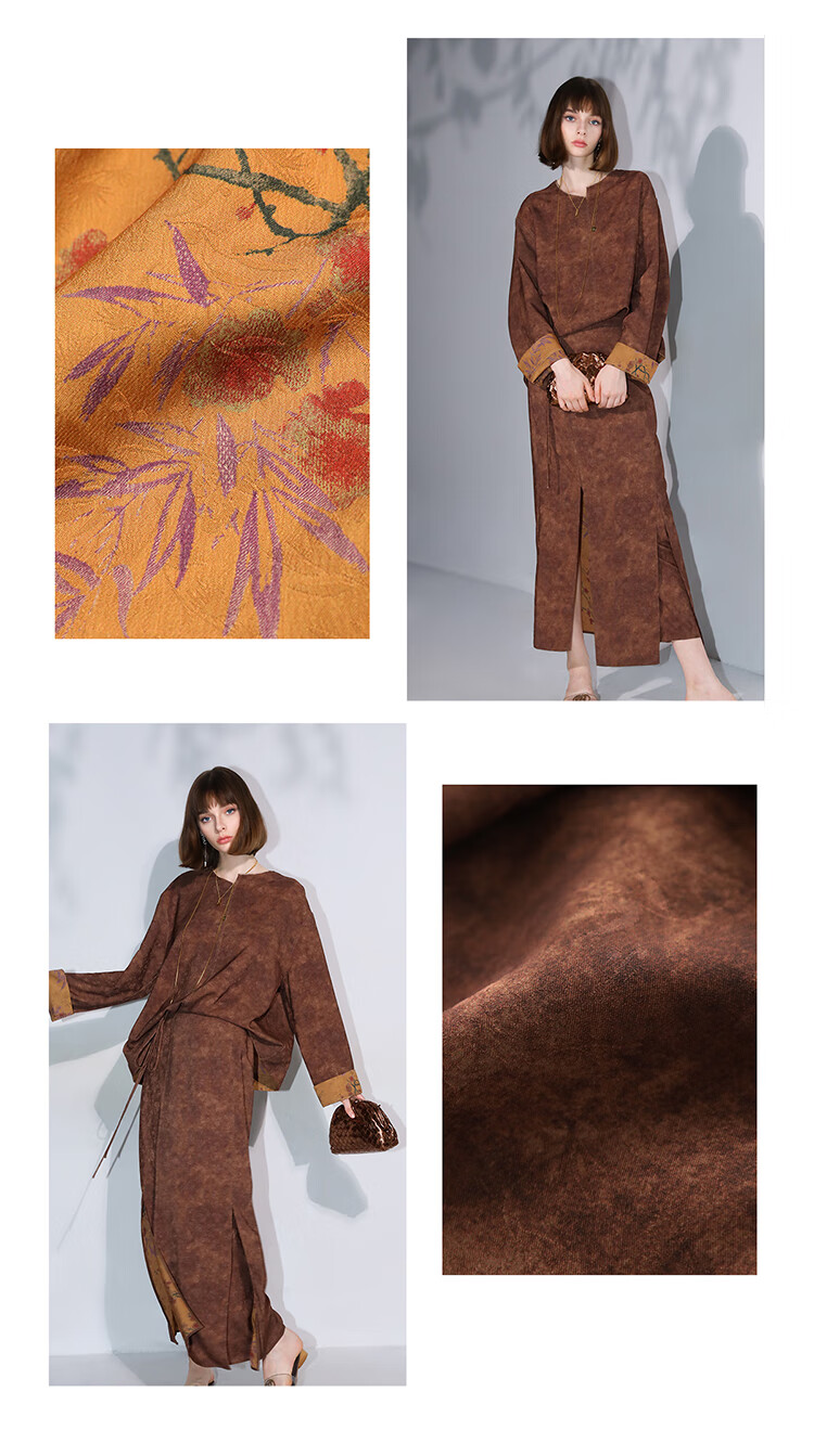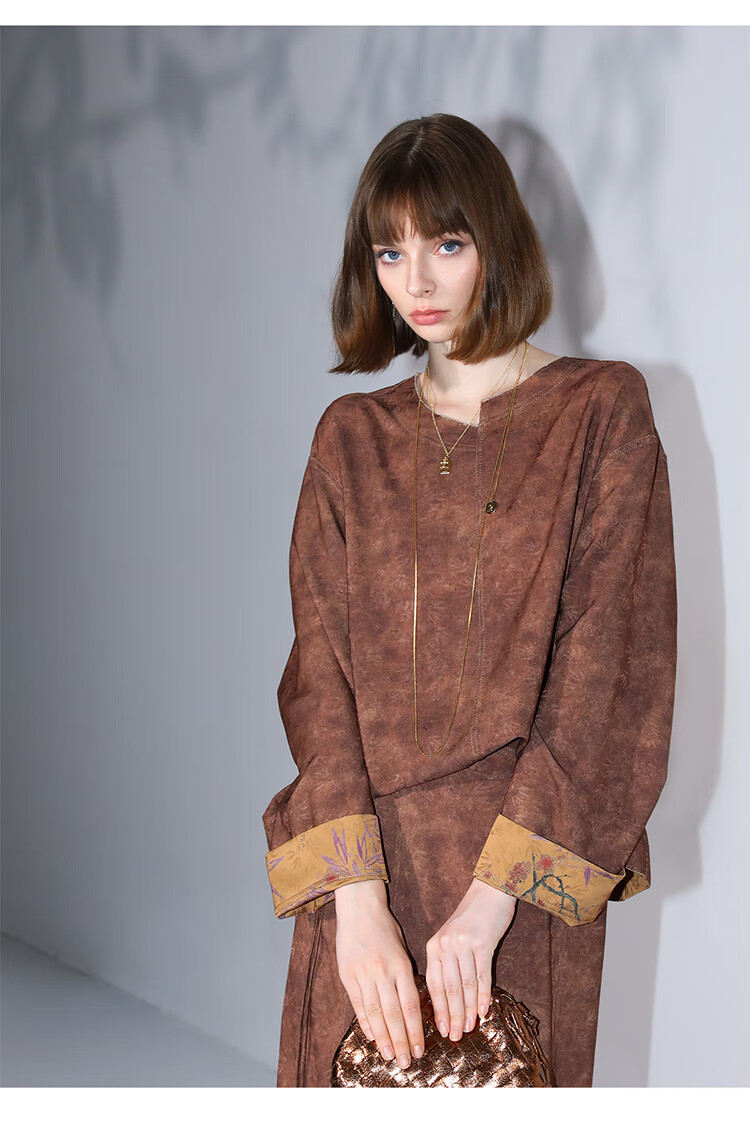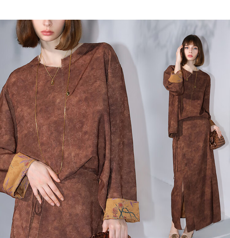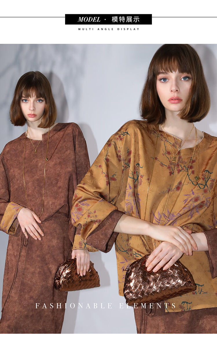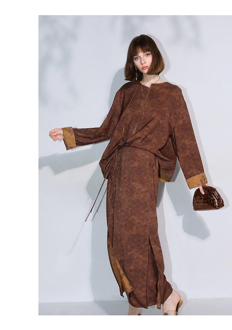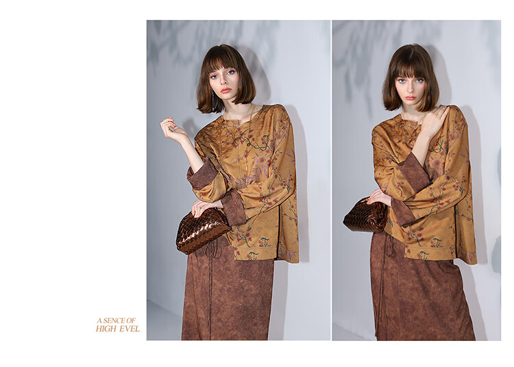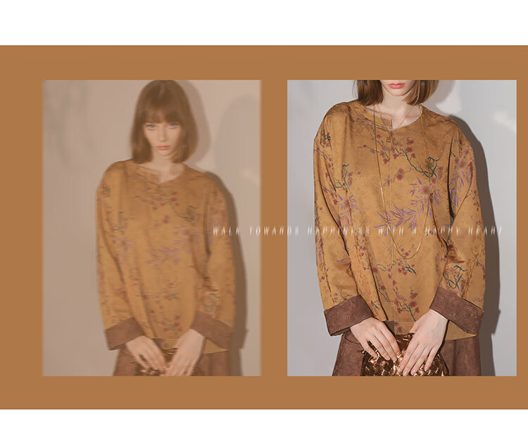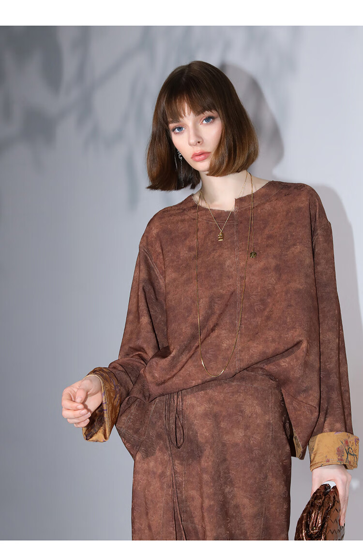 COCOBELLA仿香云纱双面穿提花缎衬衫两面穿新中式上衣TS3015