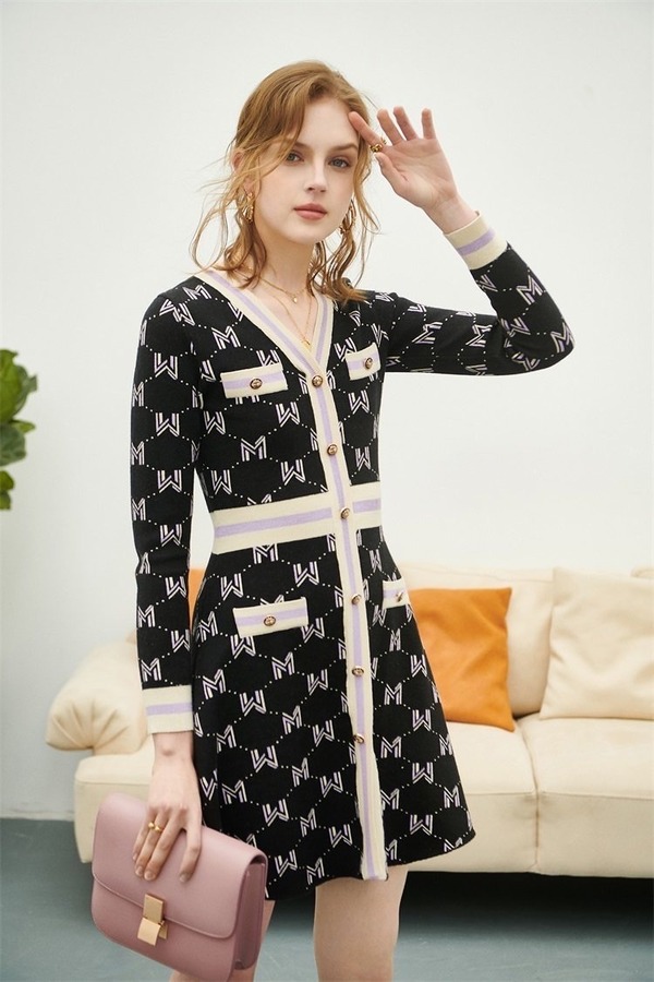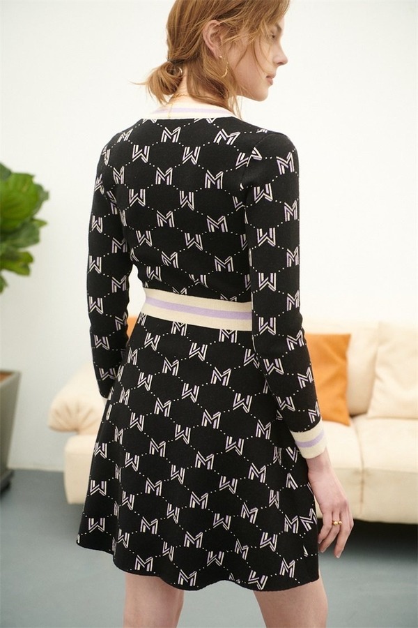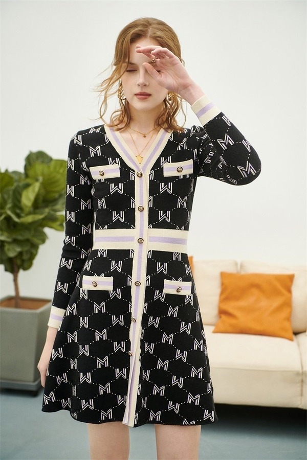 Le Malene 法式收腰显瘦撞色针织连衣裙 15231
