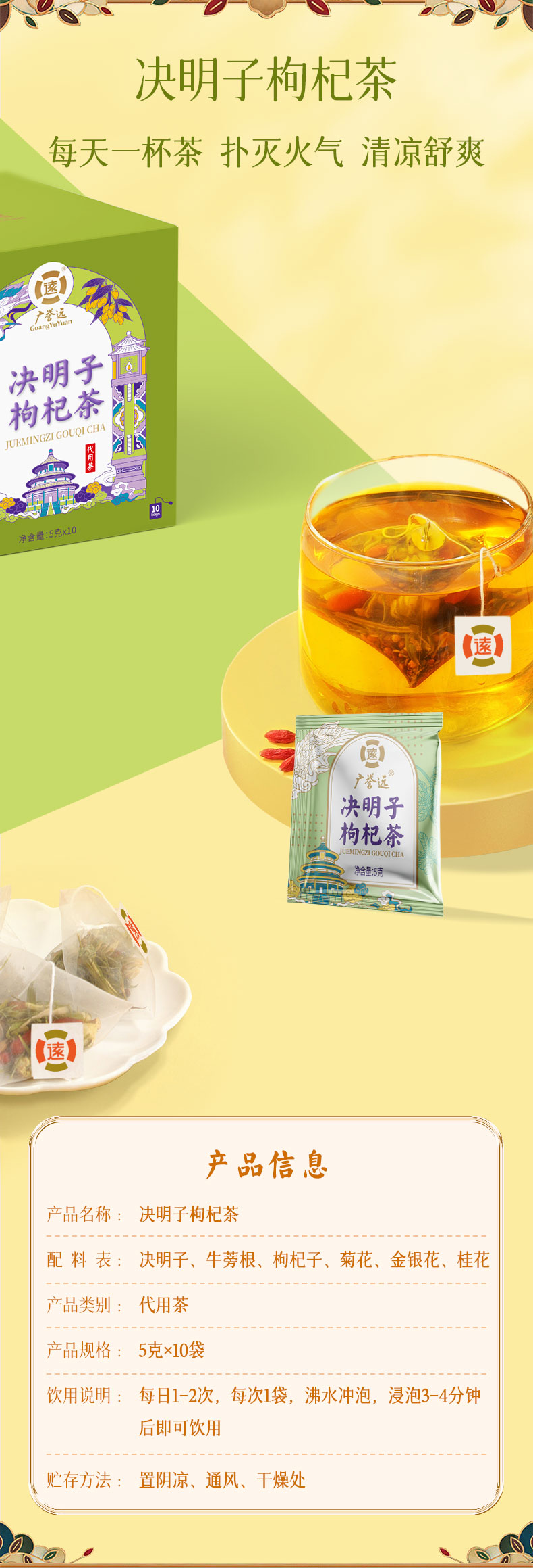 广誉远决明子枸杞茶5g*10袋