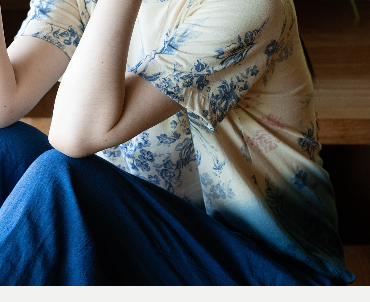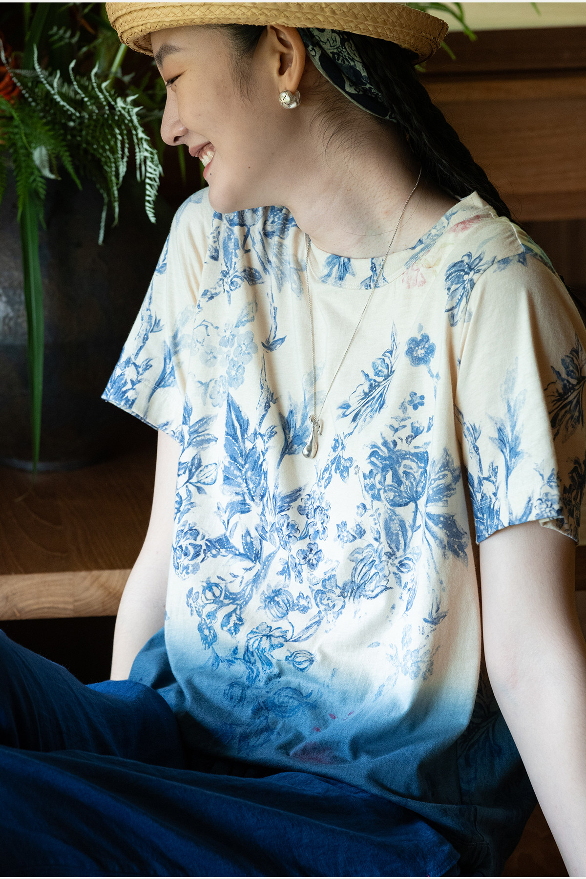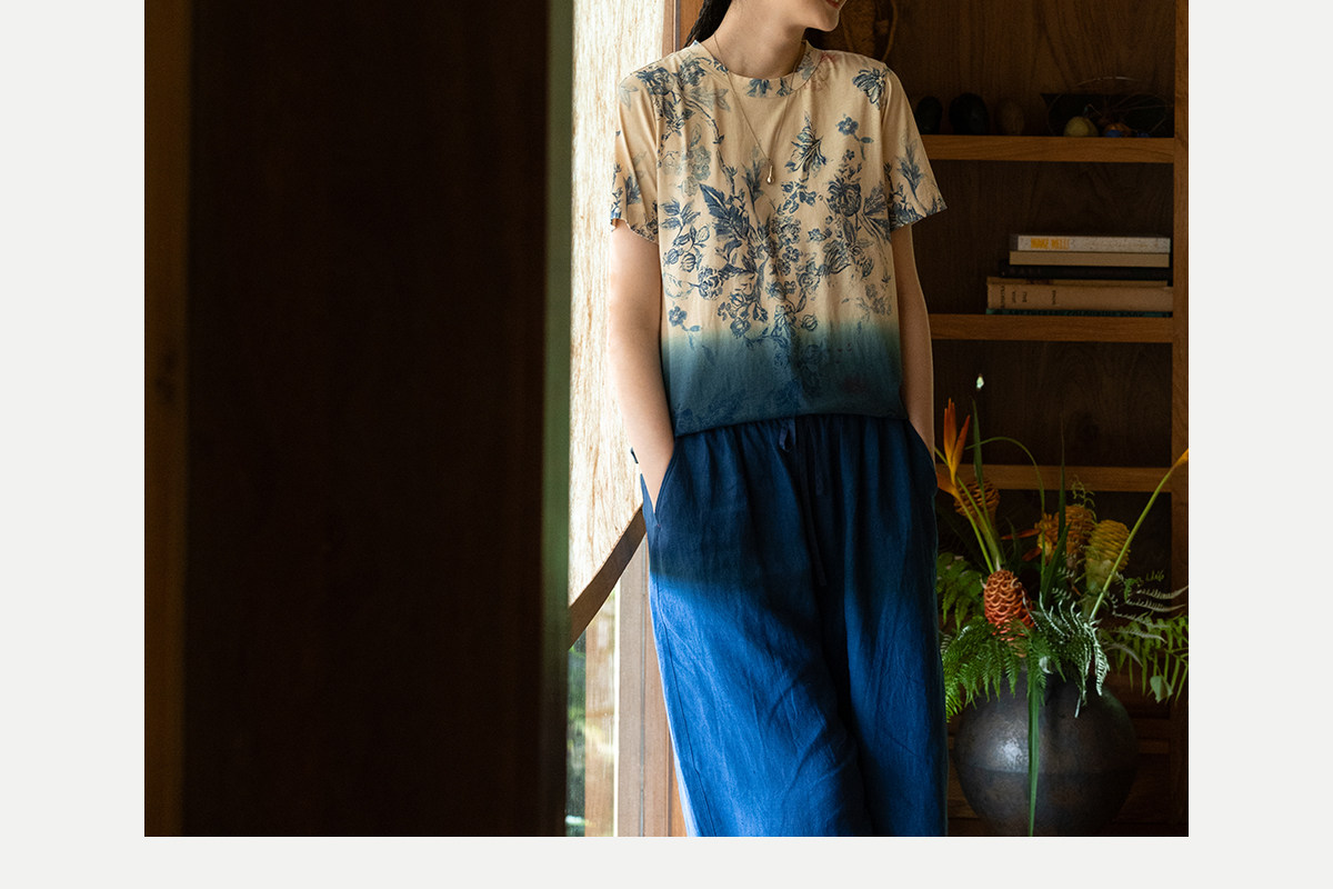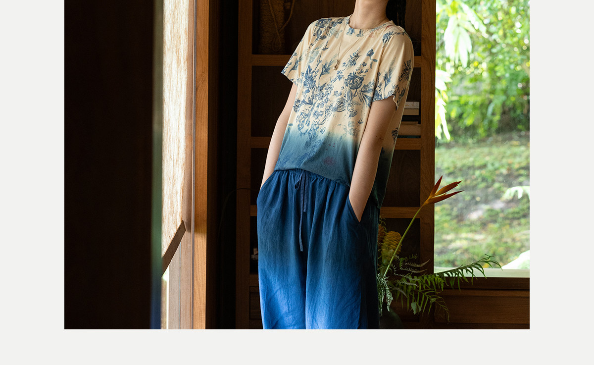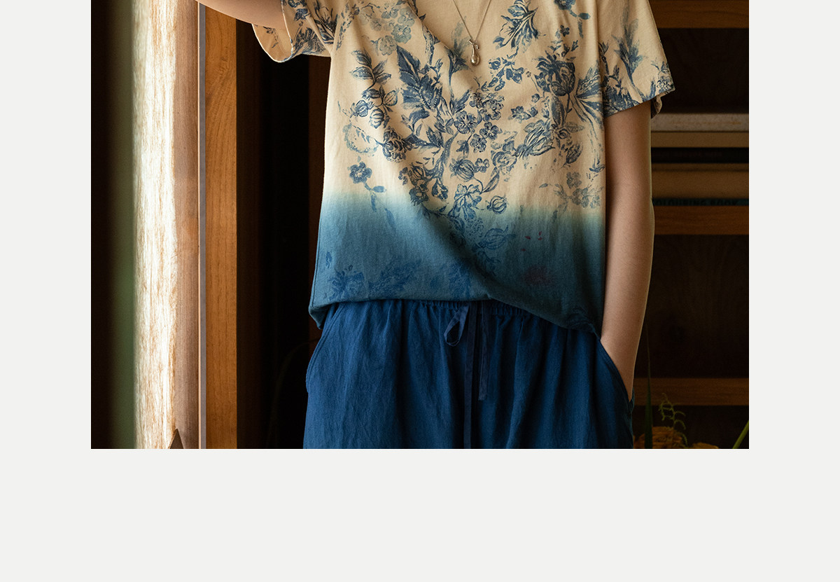 牧衣游原创 32支纯棉吊染T恤新款宽松百搭圆领休闲短袖上衣 恋花