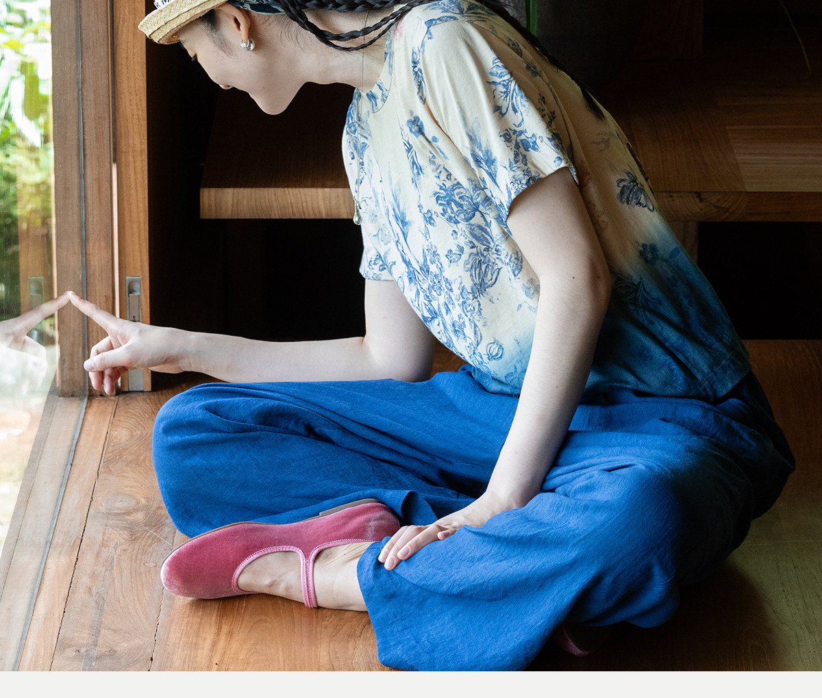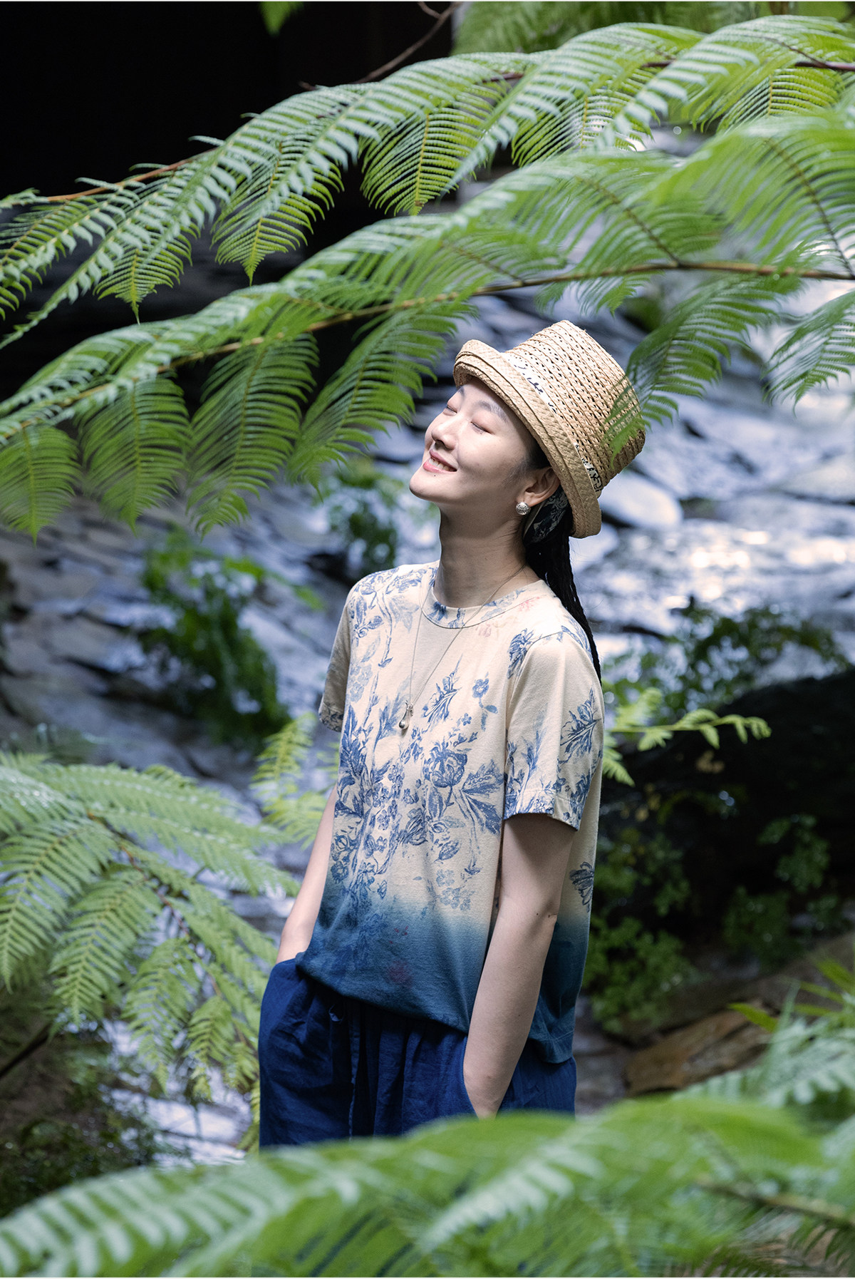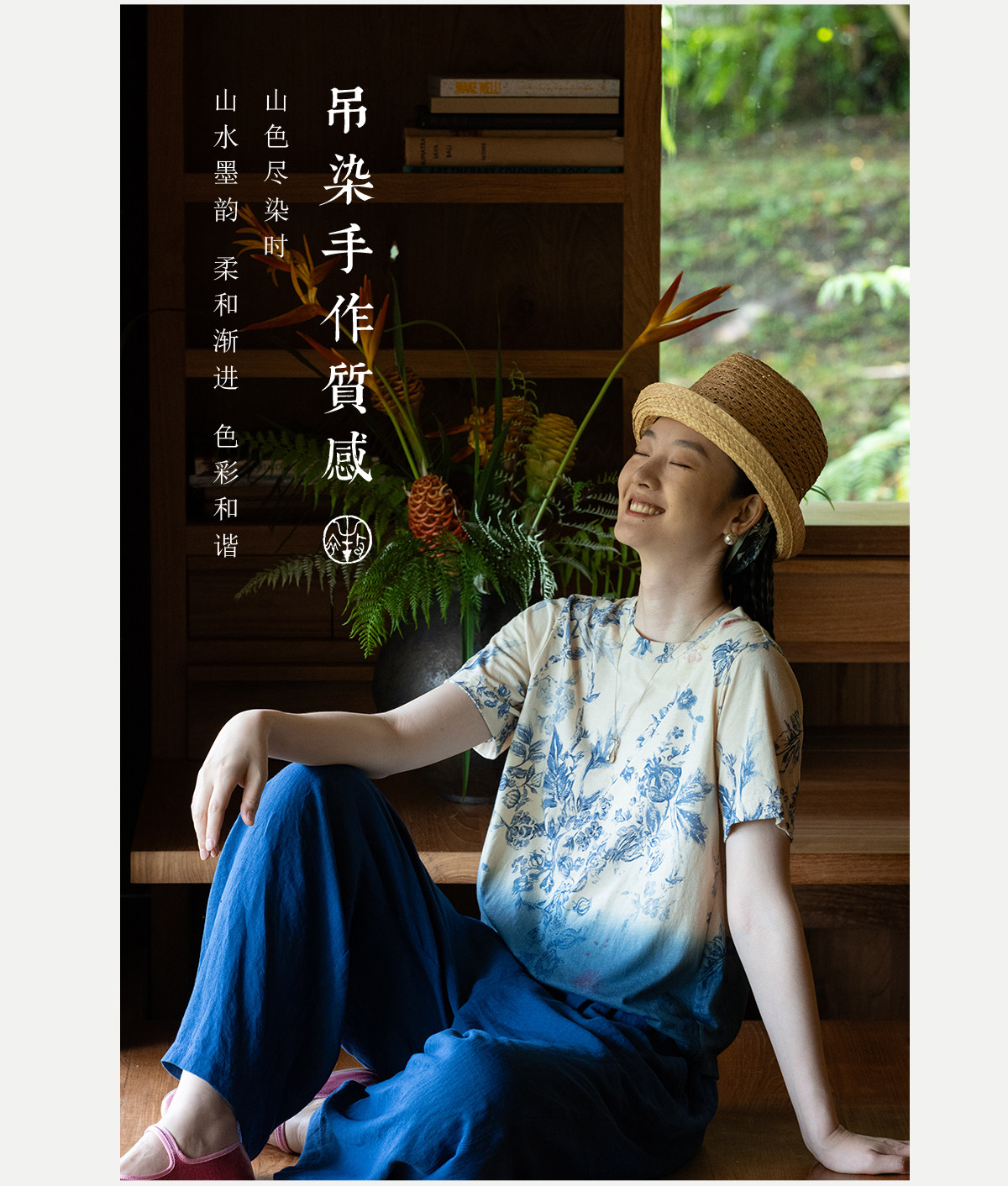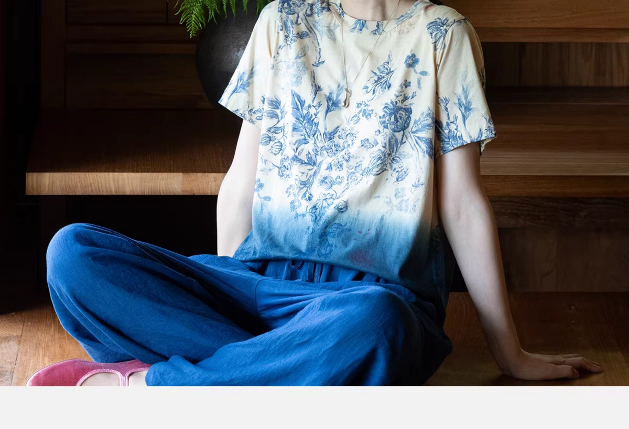 牧衣游原创 32支纯棉吊染T恤新款宽松百搭圆领休闲短袖上衣 恋花