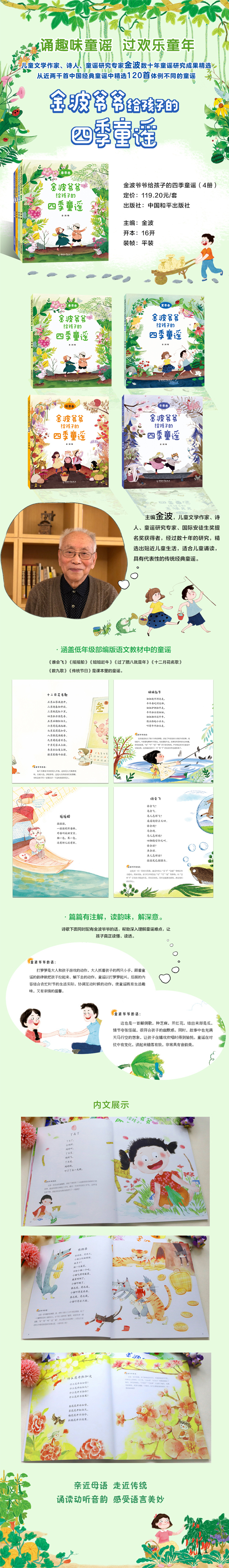 《金波爷爷给孩子的四季童谣》全4册 6-12岁 精选120首体例不同的童谣 篇篇有注解 帮助深入理解童谣难点 让孩子真正读懂、读透