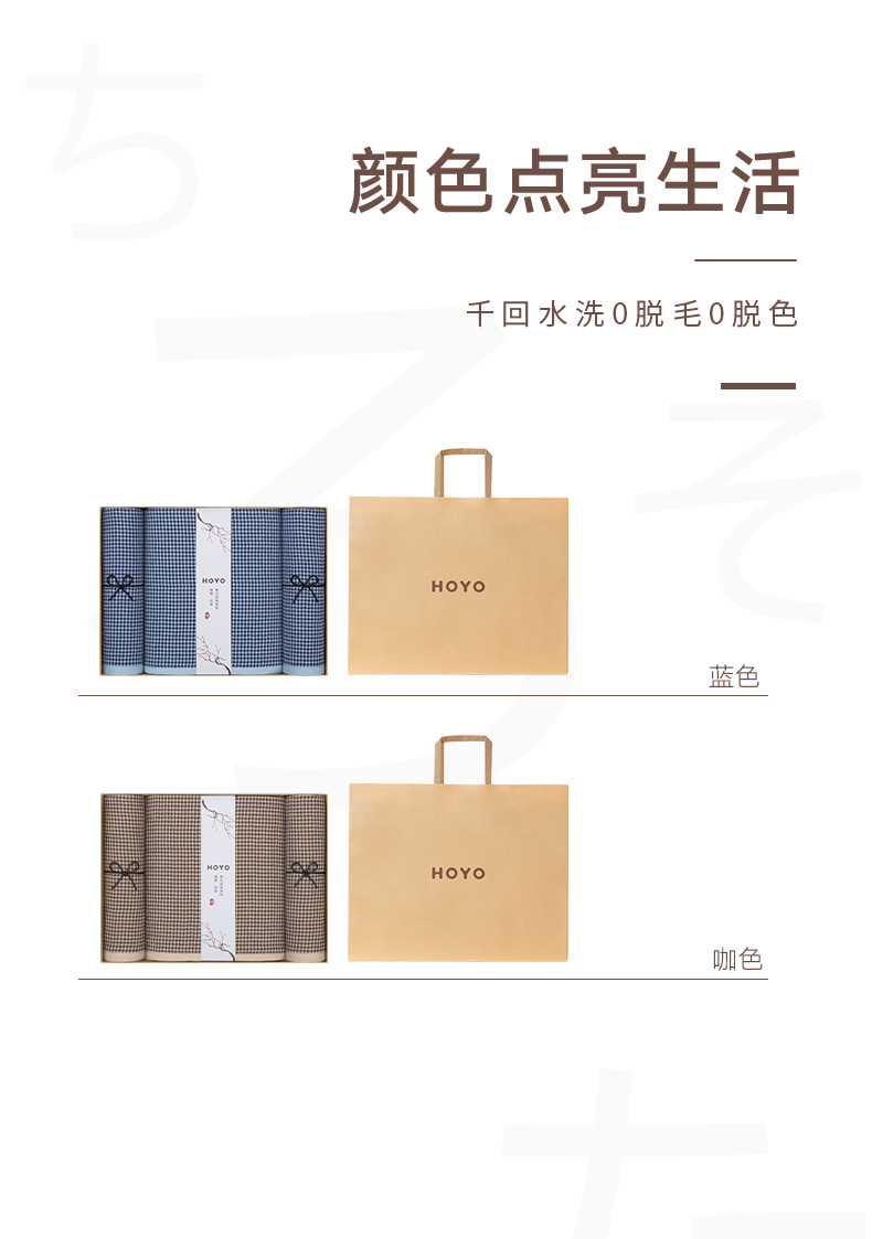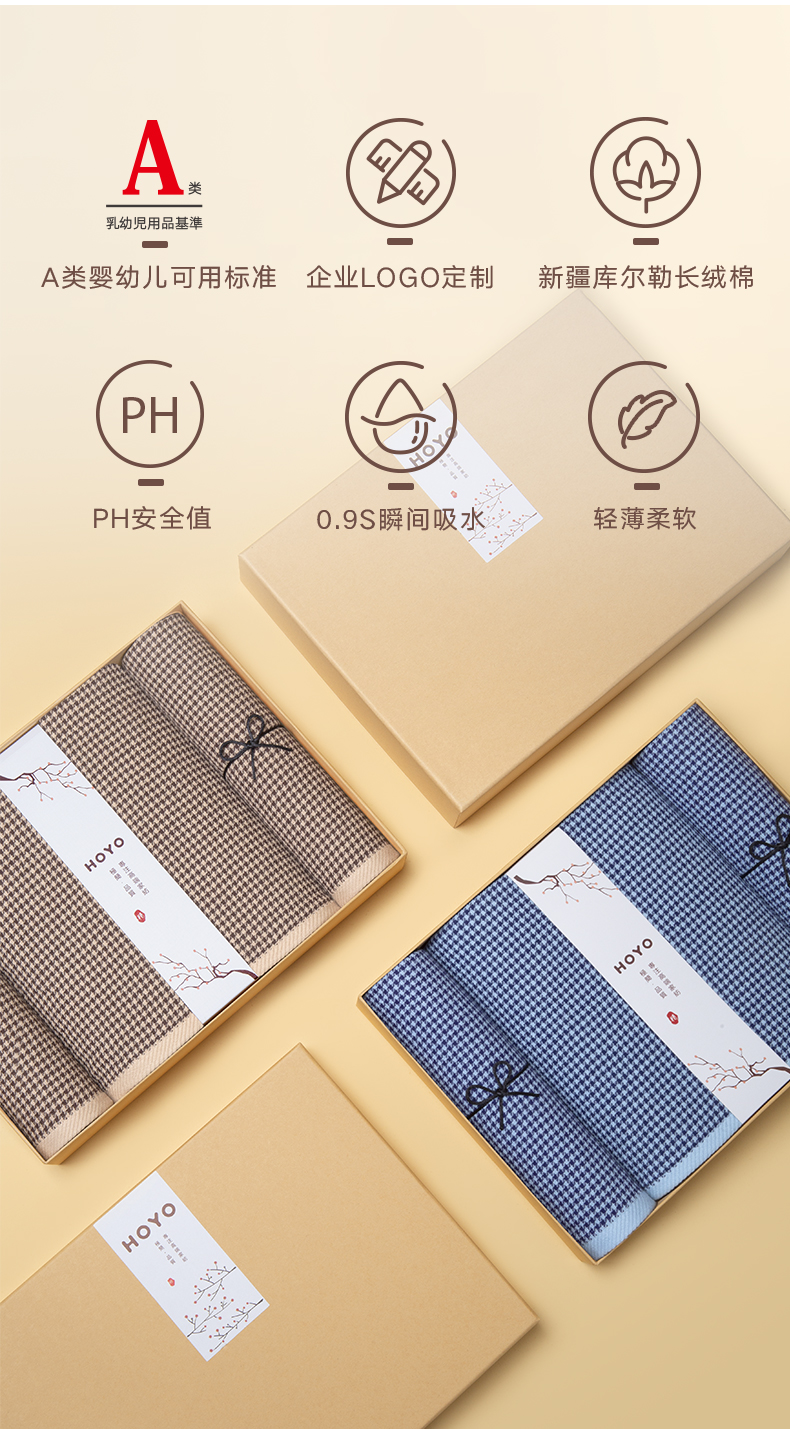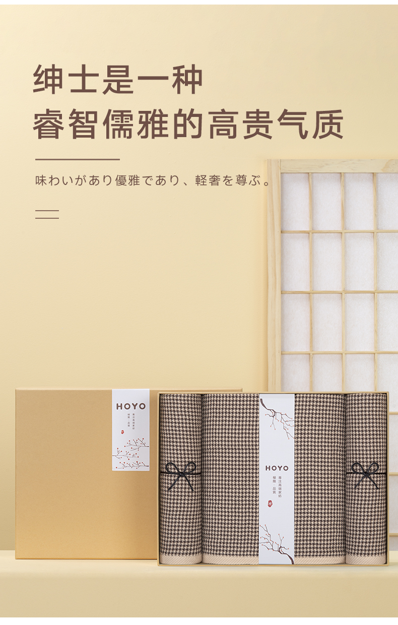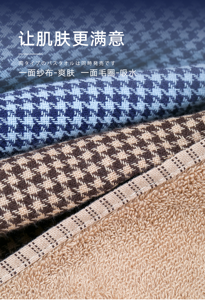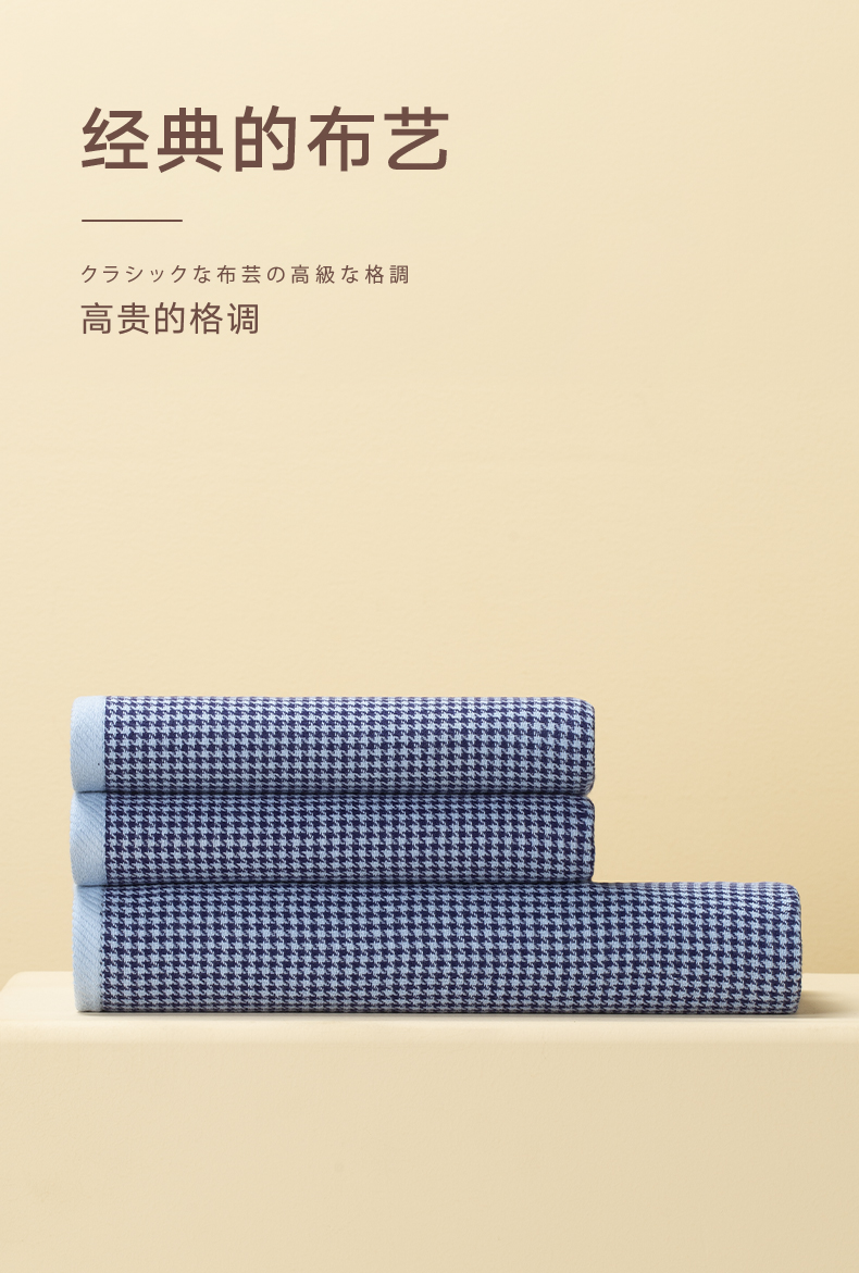 HOYO厚裕 千鸟格毛浴三件套(毛巾*2+浴巾*1)