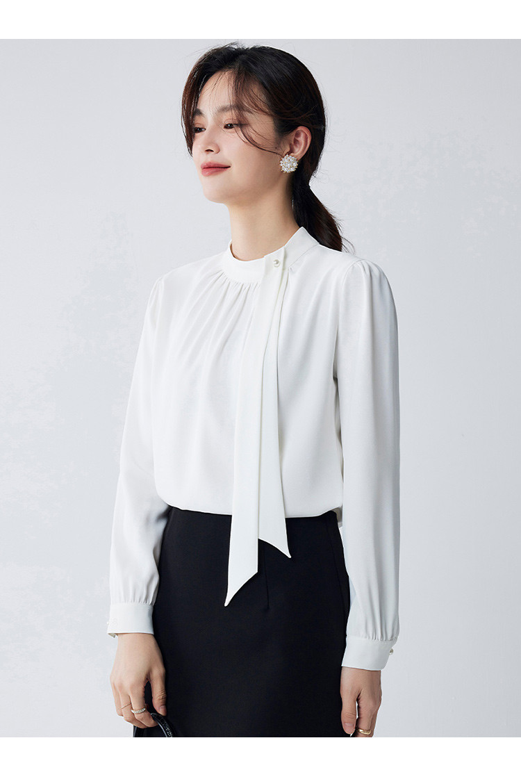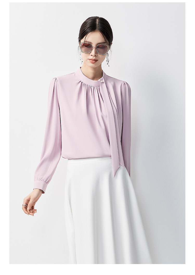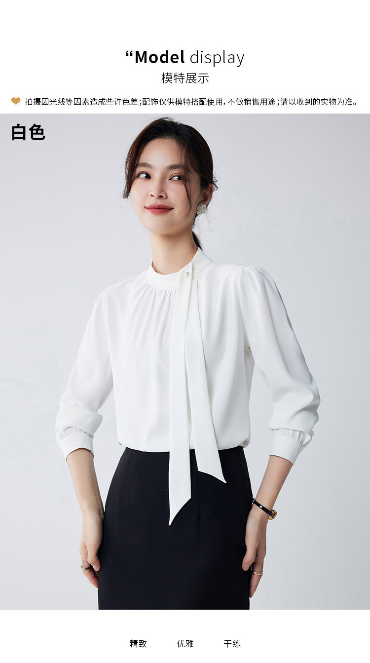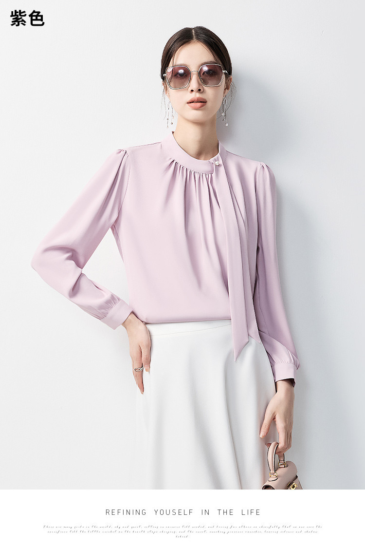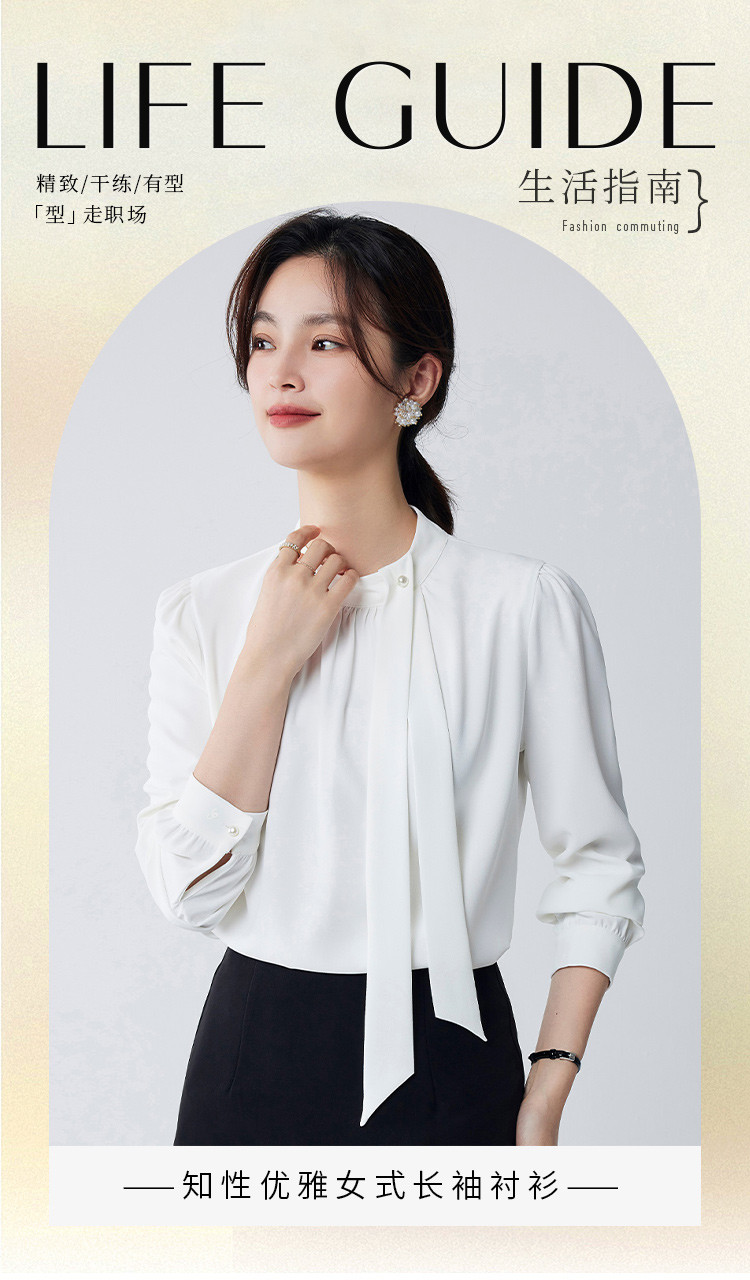 【时尚圆领】罗蒙四季款女式长袖衬衫气质简约大方优雅百搭衬衫女