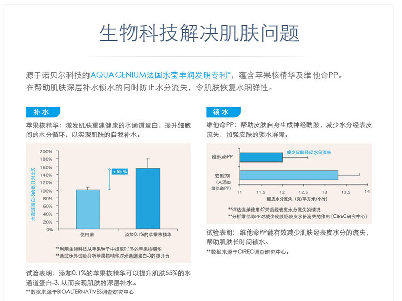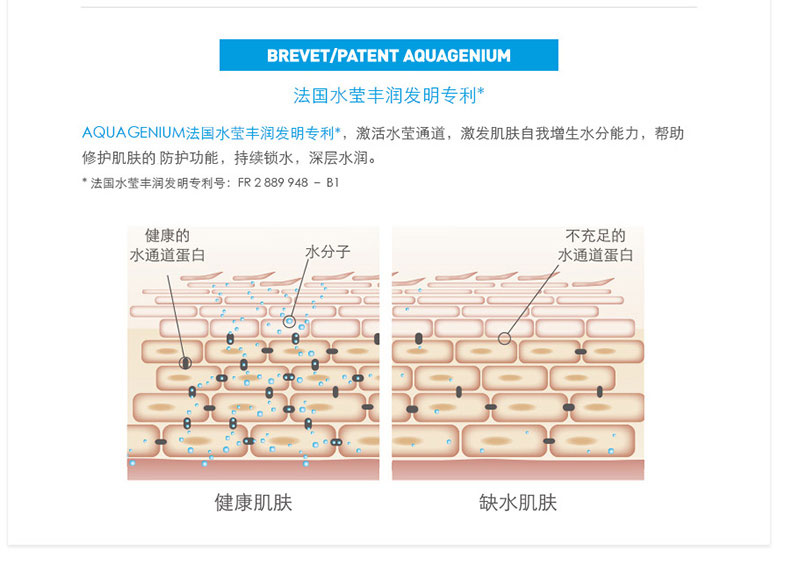 科技成分:AQUAGENIUM法国水莹丰润发明专利,能帮助激发水通道蛋白(补水)以及促进皮肤合成神经酰胺(锁水),令肌肤回复弹润;