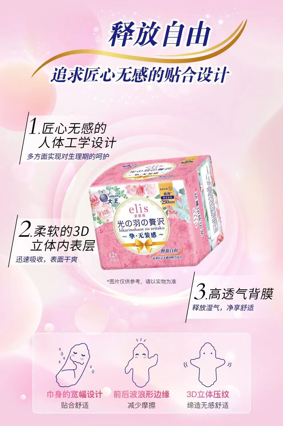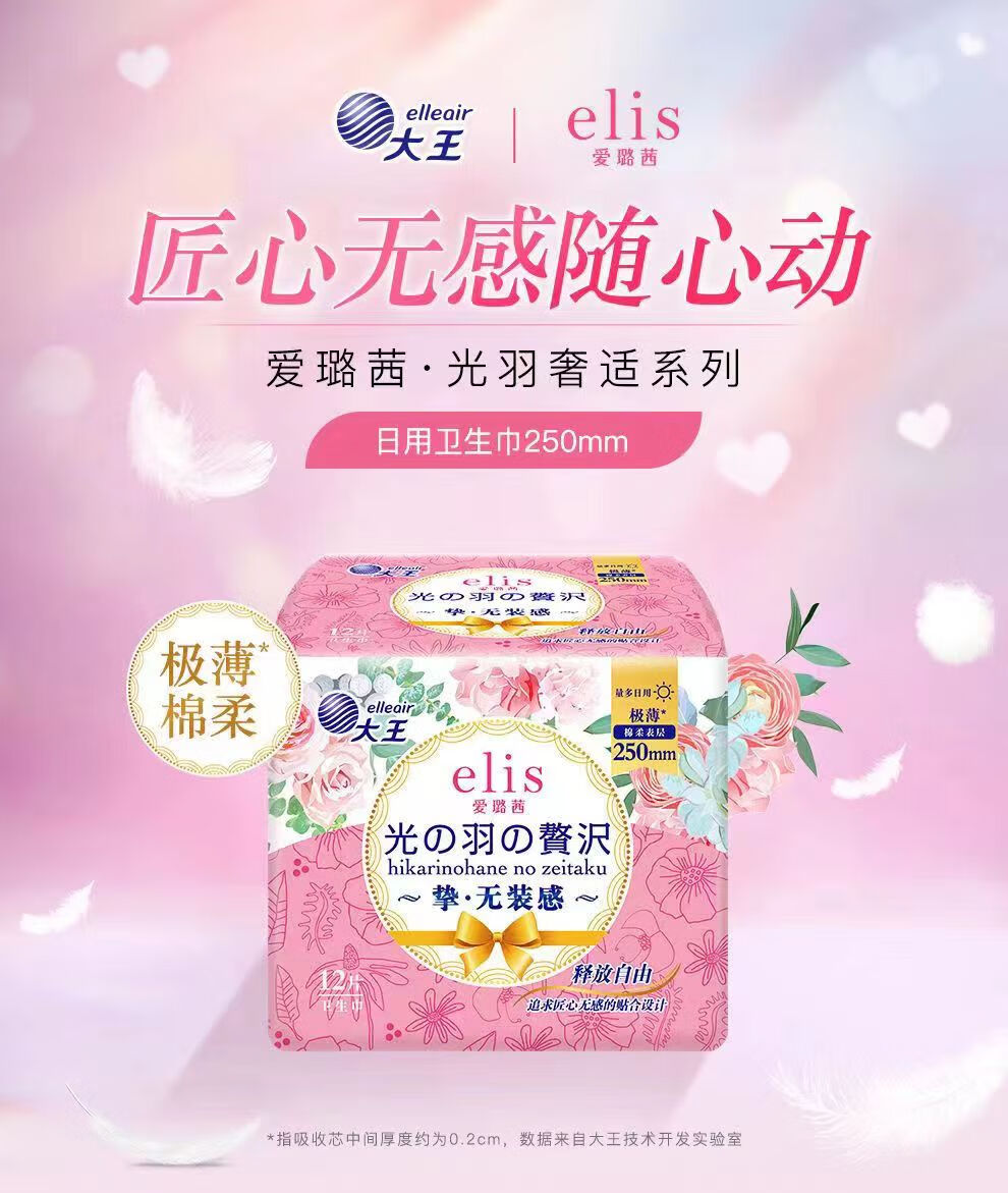 【买四送一】大王光羽奢适极薄棉柔日用卫生巾250mm 12片/份