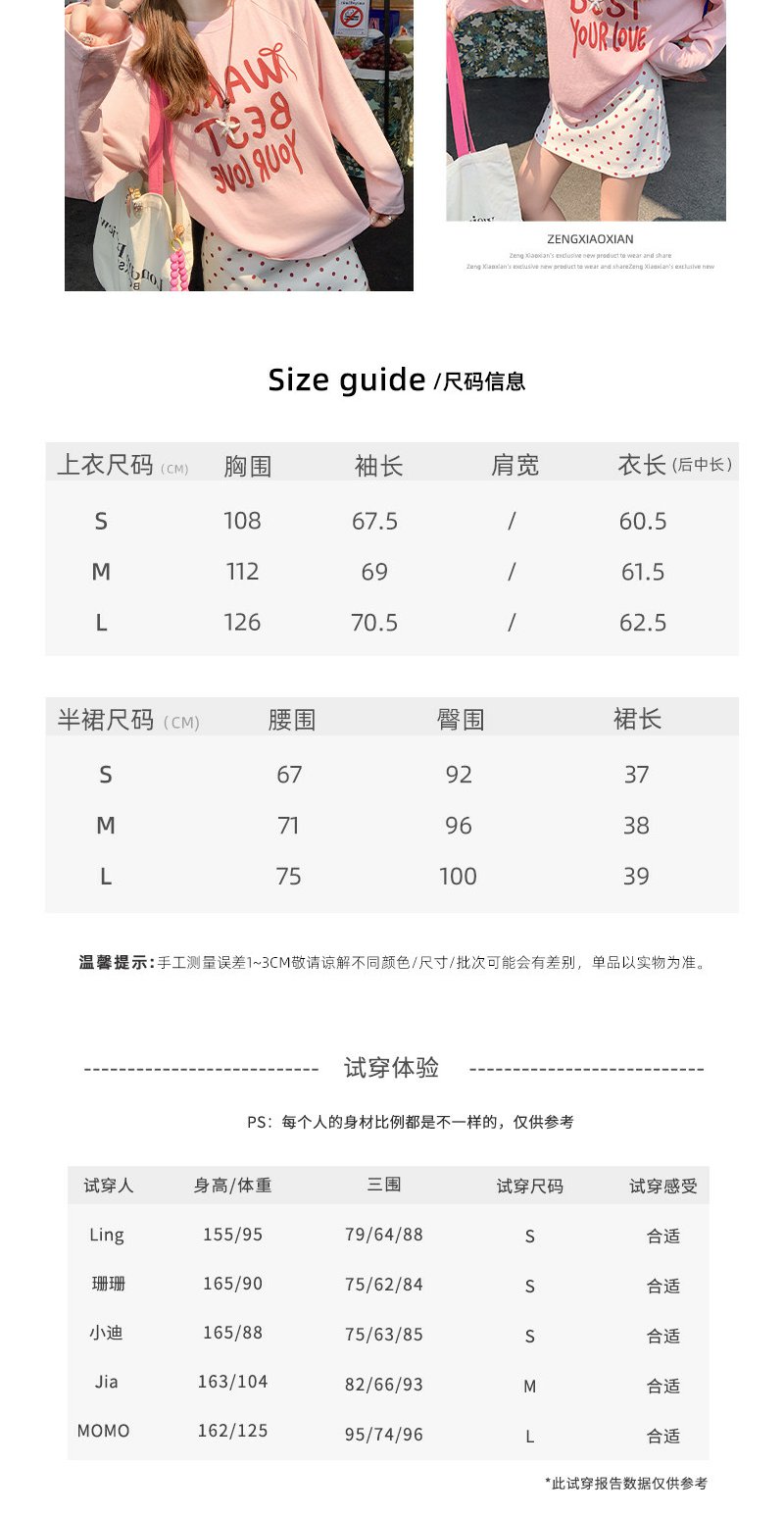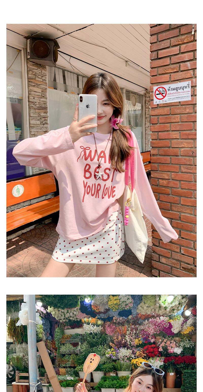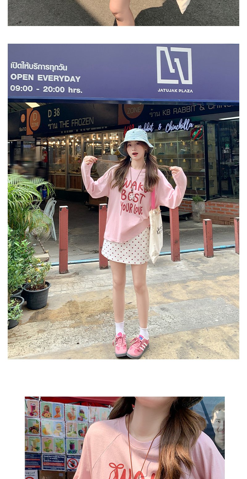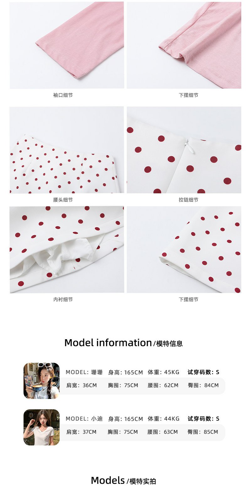 <曾小咸推荐>韩系粉色圆领印花t恤波点半裙【预售3-15天发货】