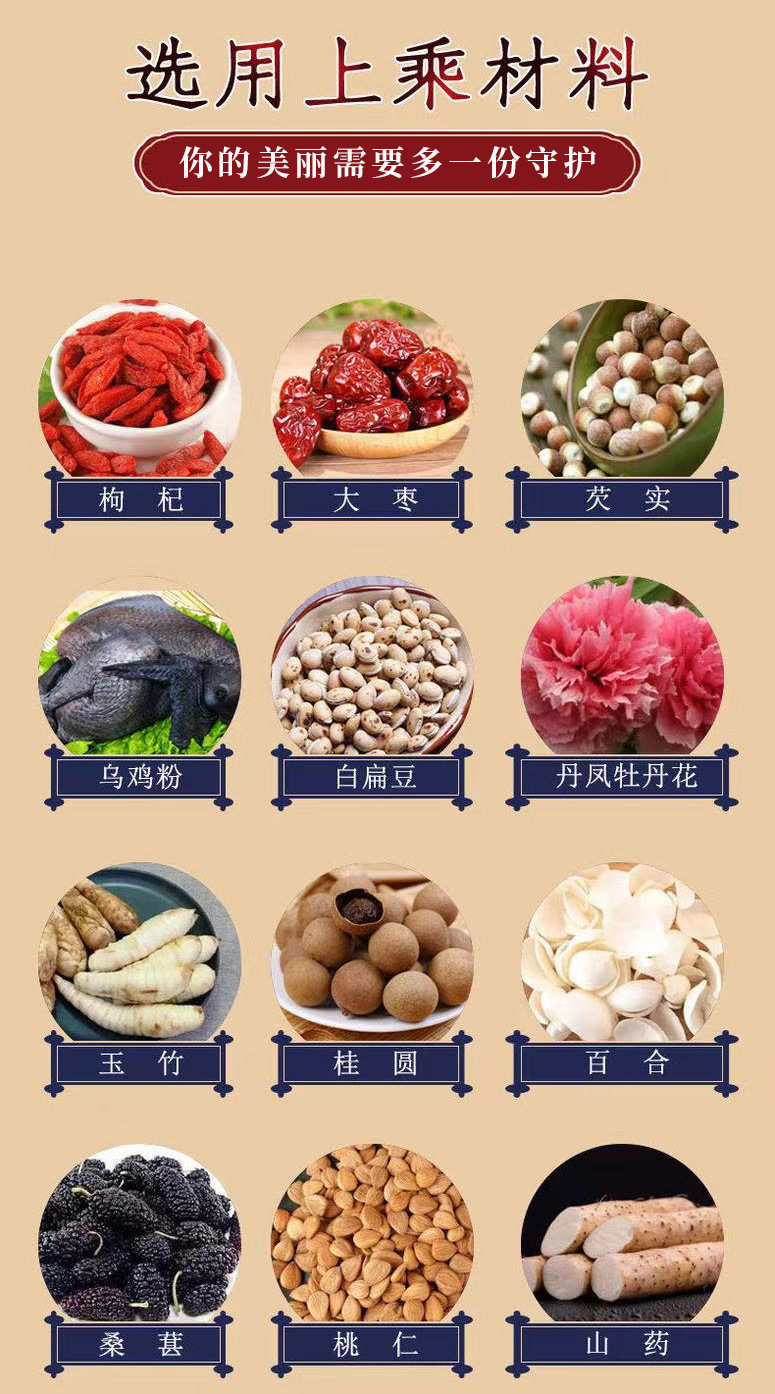 再加上添加了酸枣仁、玉竹、百合、血红素铁等十几种种对女人好的高级成分。对于病后、产后贫血者,补血、促进康复的作用更优。长期食用可使脸色红润,皮肤细嫩有光泽,头发乌黑亮丽,看上去年轻了不止10岁。