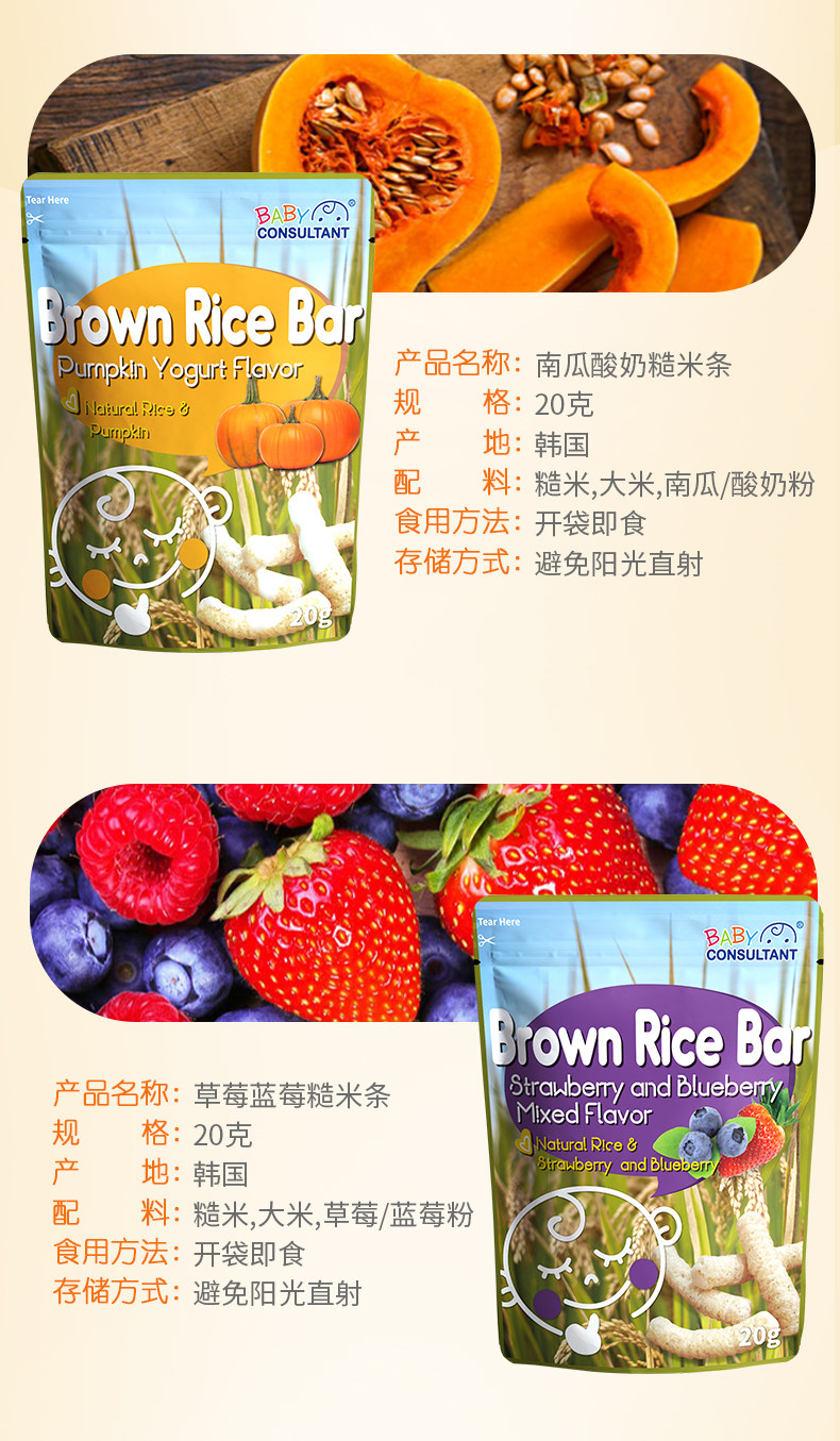 宝贝顾问韩国进口糙米条手指泡芙宝宝米条辅食儿童磨牙米条
