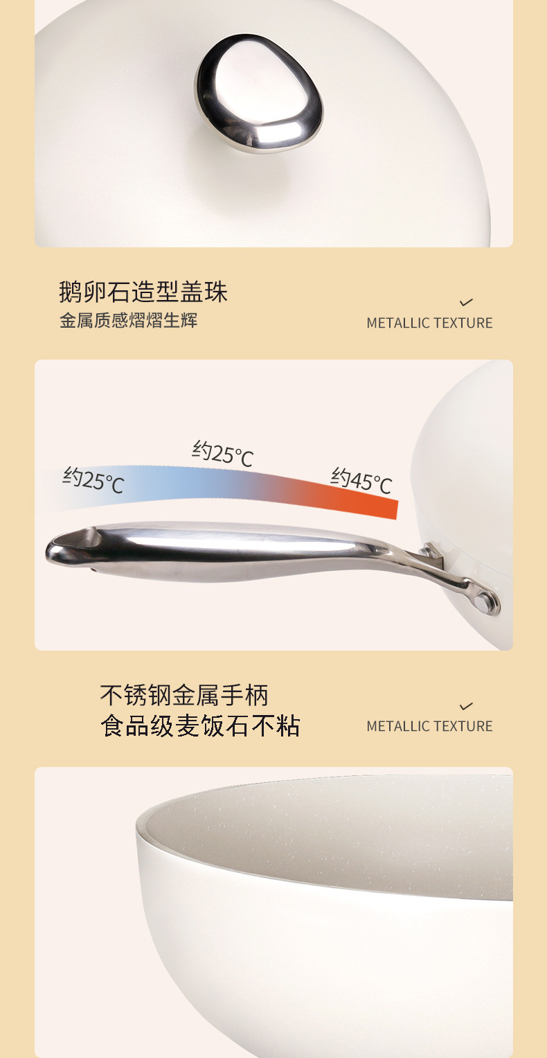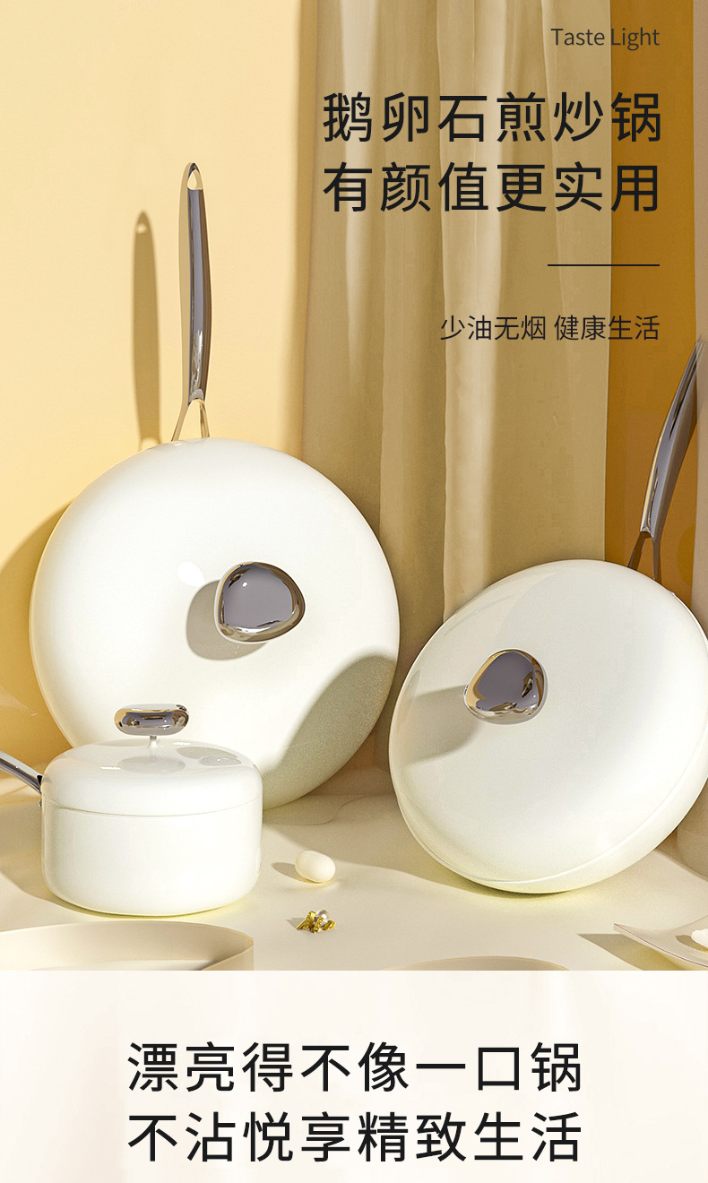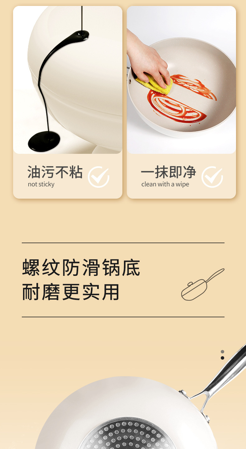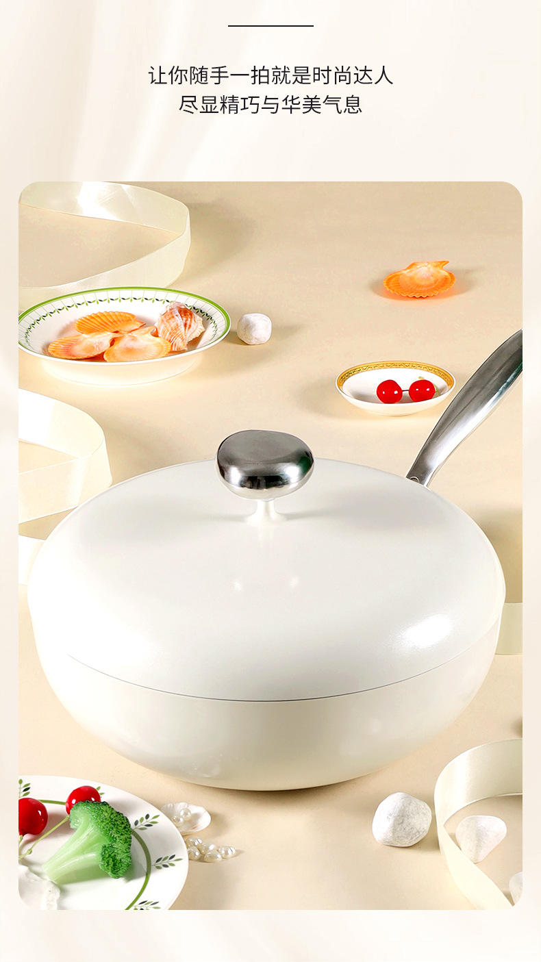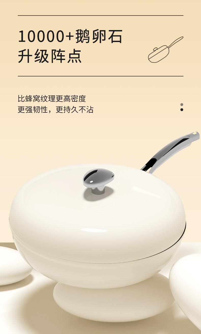【应季好物】鹅卵石炒锅麦饭石不粘锅 (象牙白)28cm