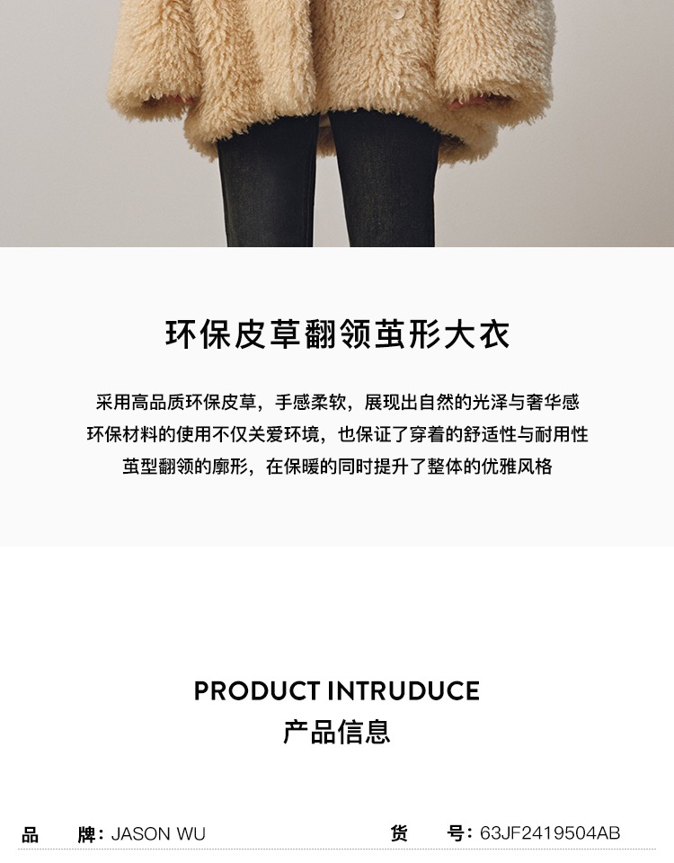 【JASON WU】(多色)【JASON WU】(多色)秋冬新款环保皮草翻领茧形大衣外套女保暖