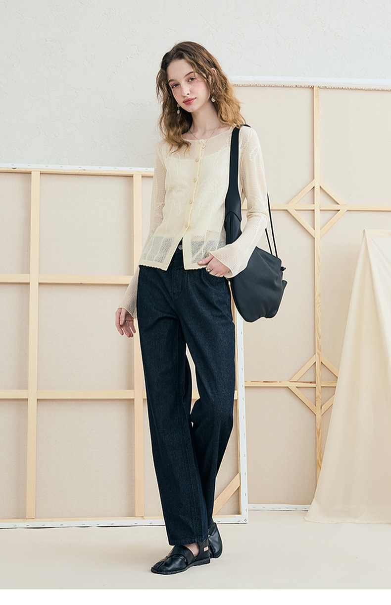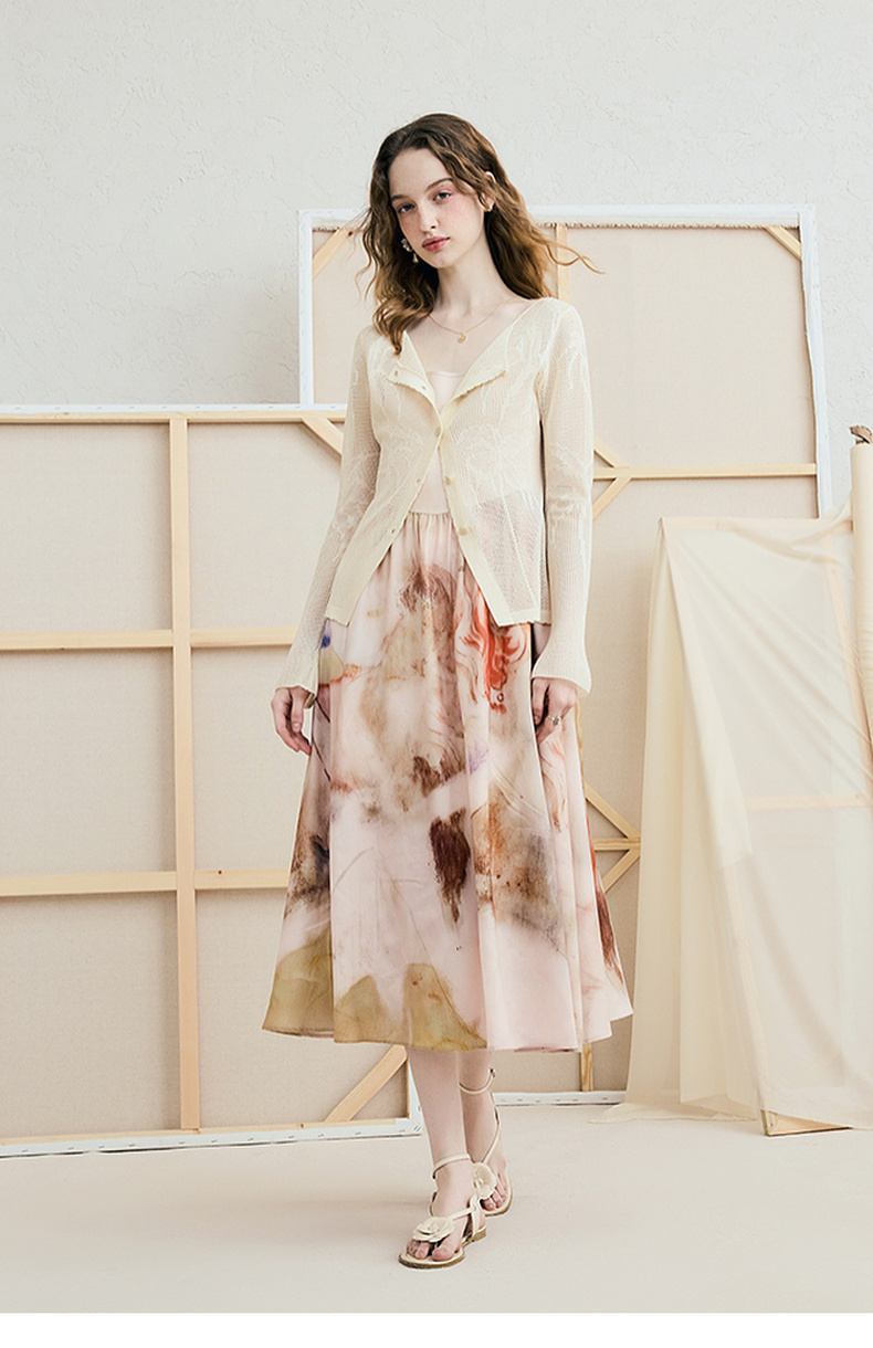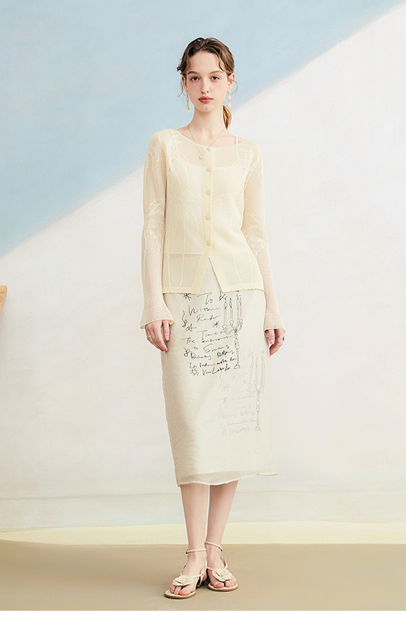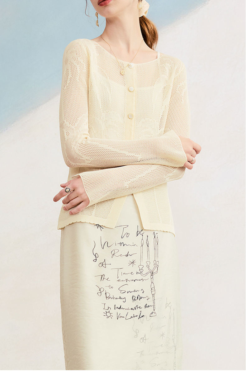 两三事 邮寄月光 2025夏季新款小清新钩针提花透视针织开衫女