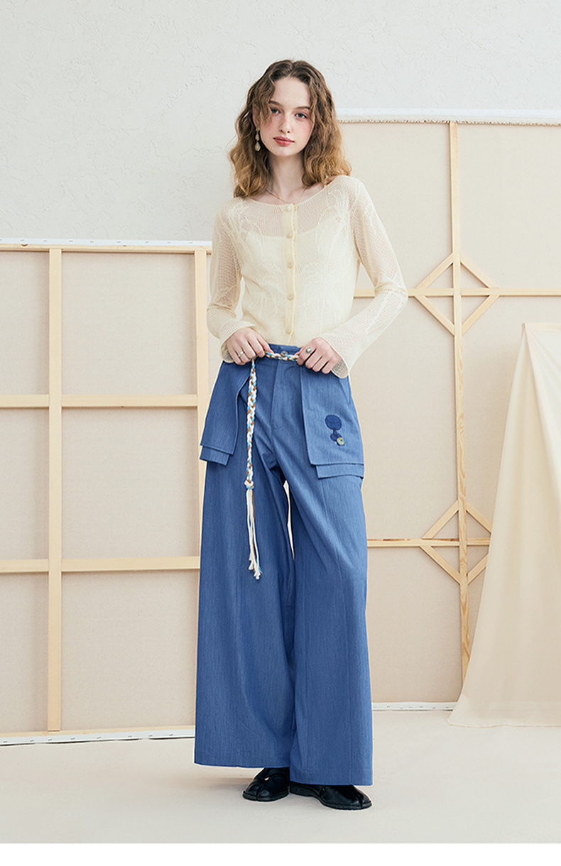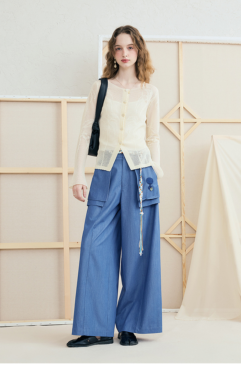 两三事梵高文艺 赭谣漫信 2025秋季新款刺绣纽扣装饰阔腿休闲裤女