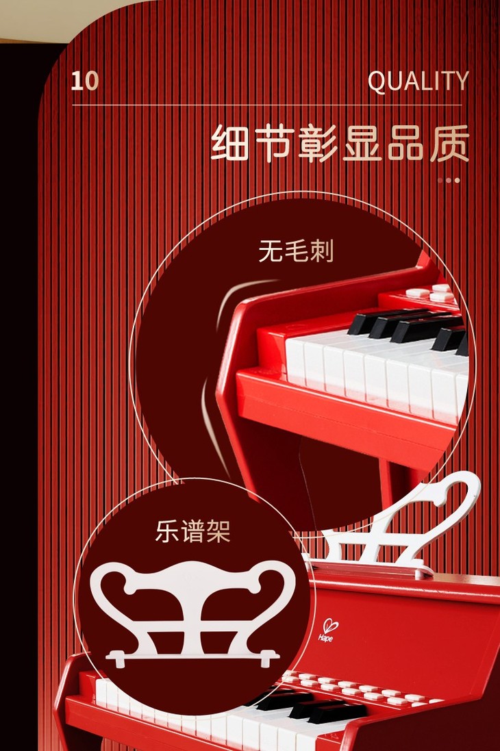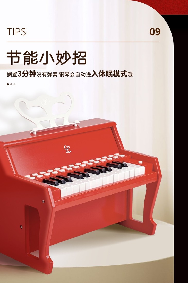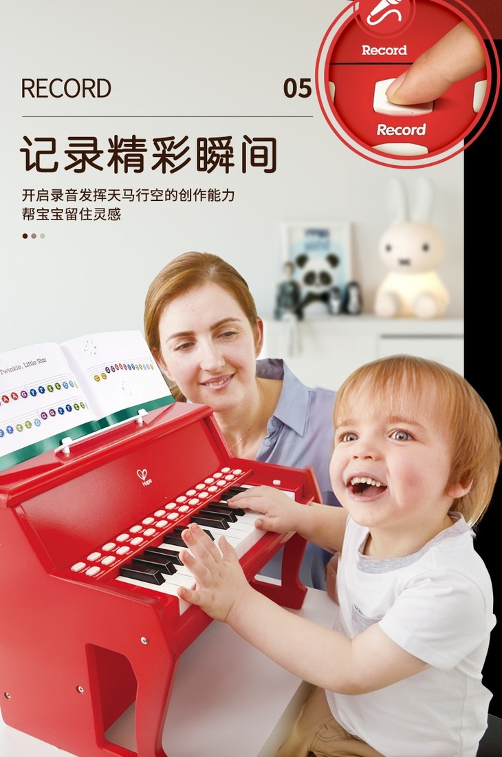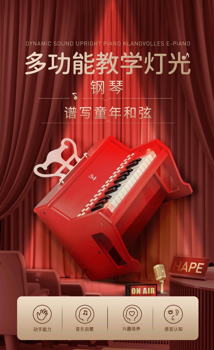Hape多功能灯光教学钢琴(增高版)红色E0630