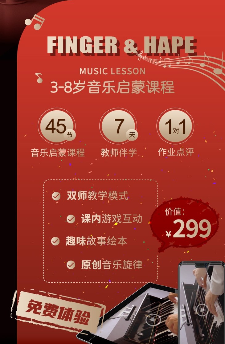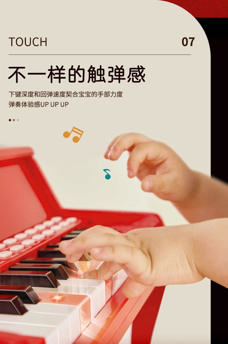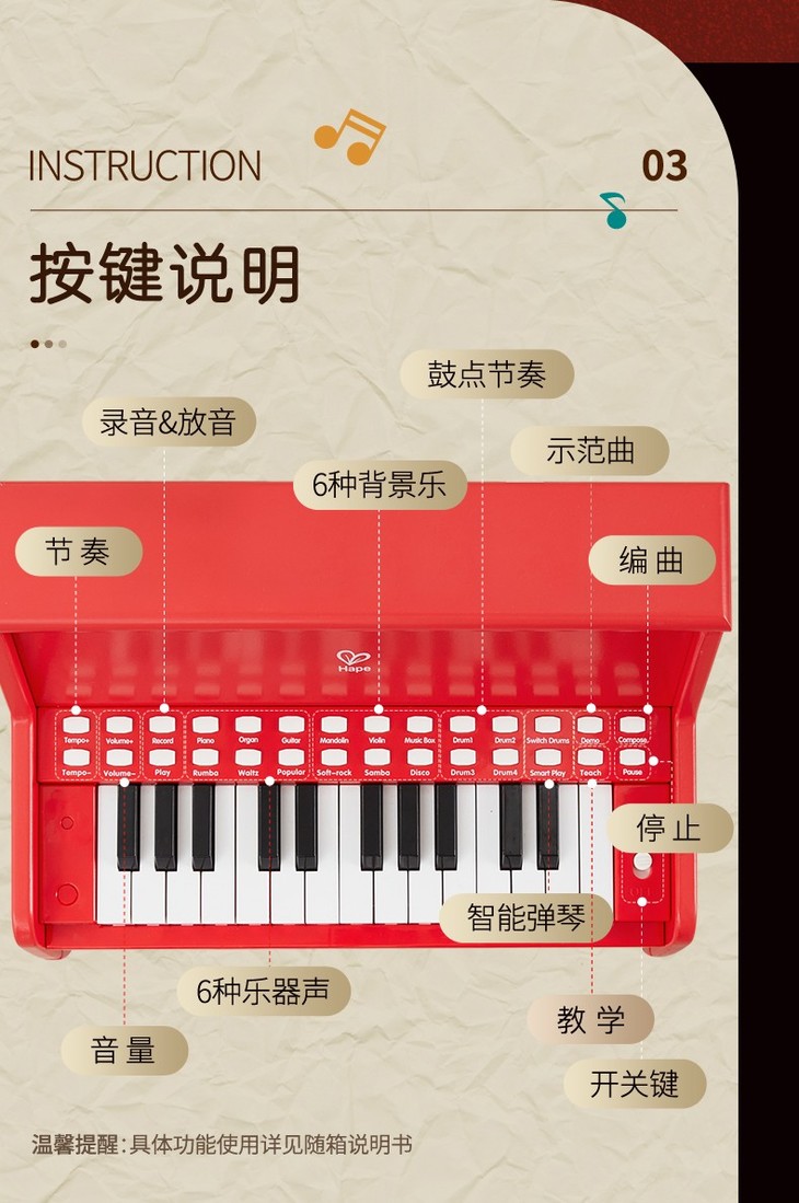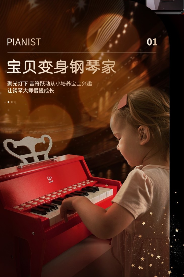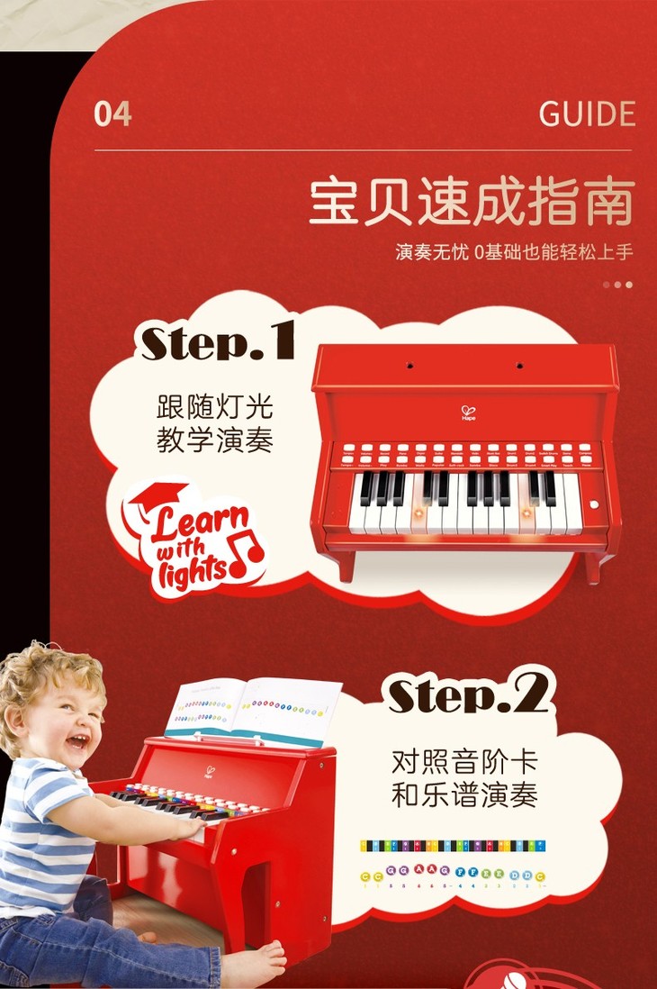 Hape多功能灯光教学钢琴(增高版)红色E0630