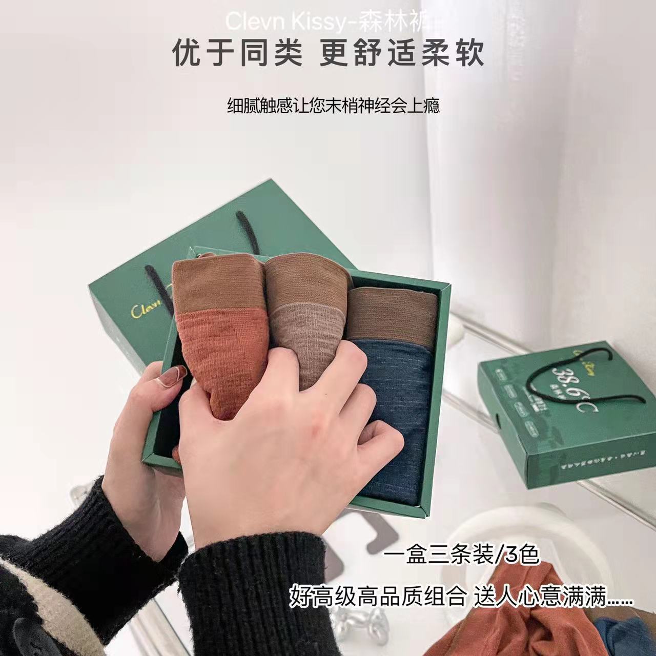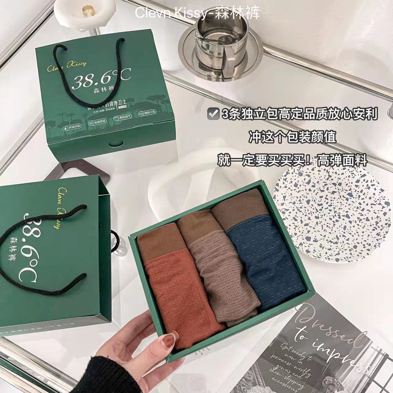 高定品质!新品38.6度森林裤男士内裤中腰无痕舒适运动透气高弹平角裤礼盒装