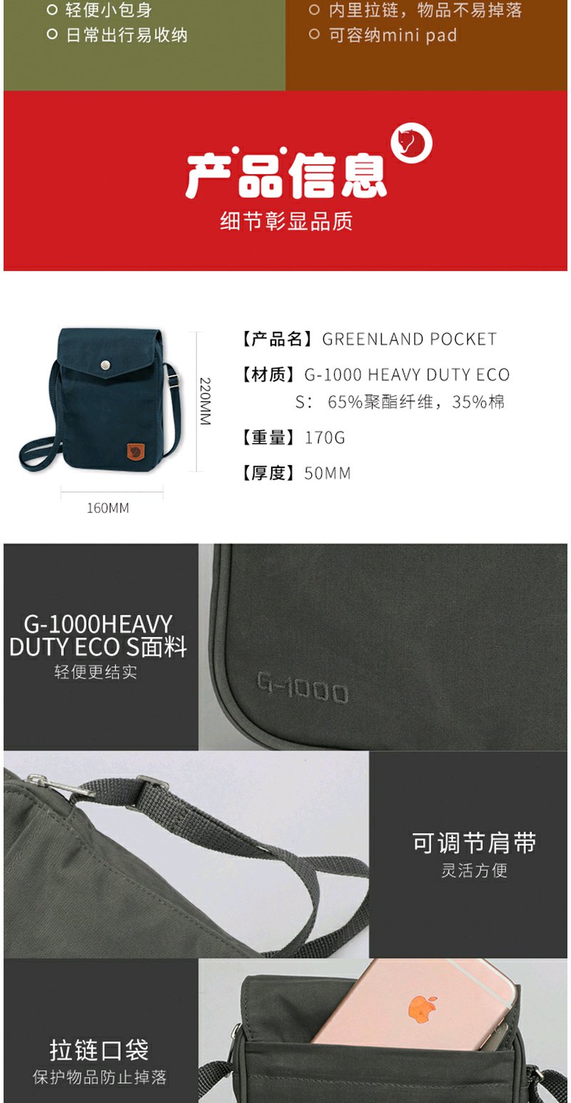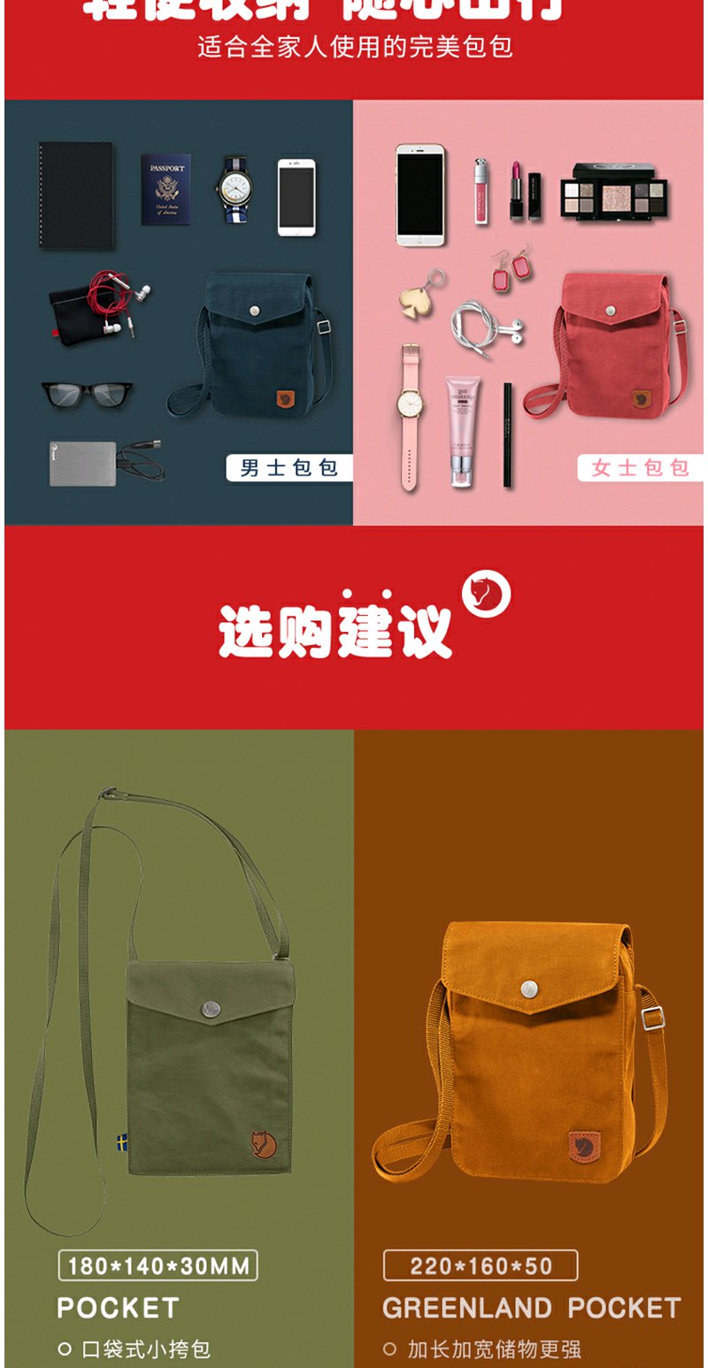 fjallraven北极狐时尚多功能日常运动户外3L单肩斜跨腰包 23227