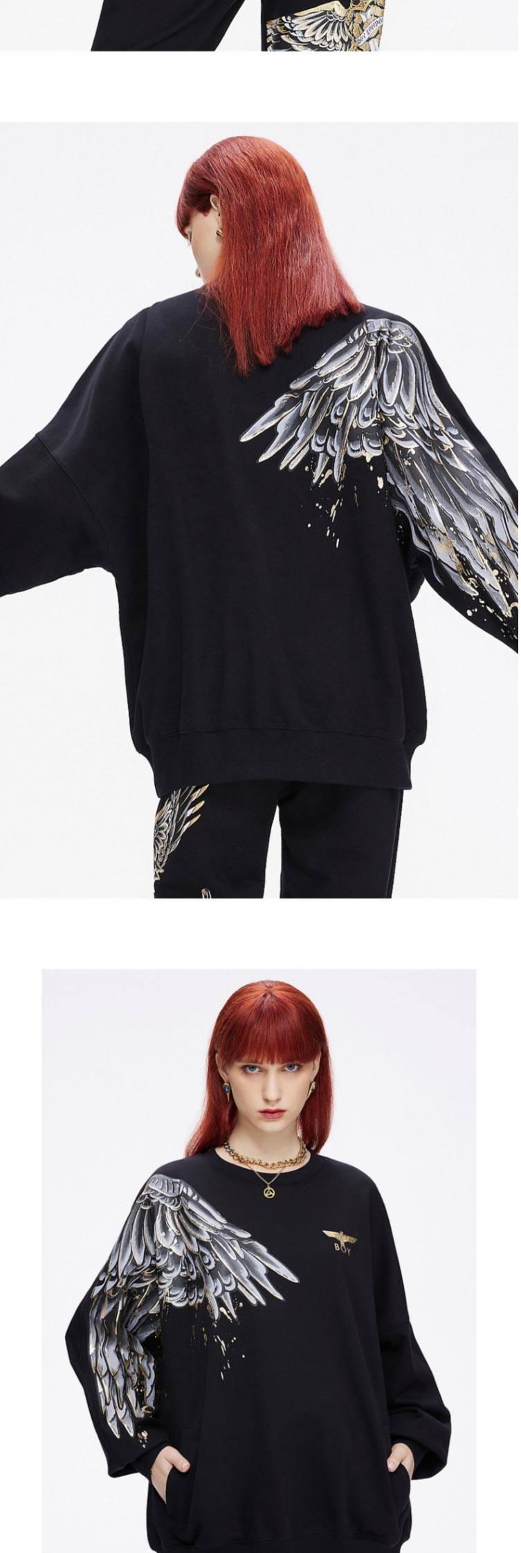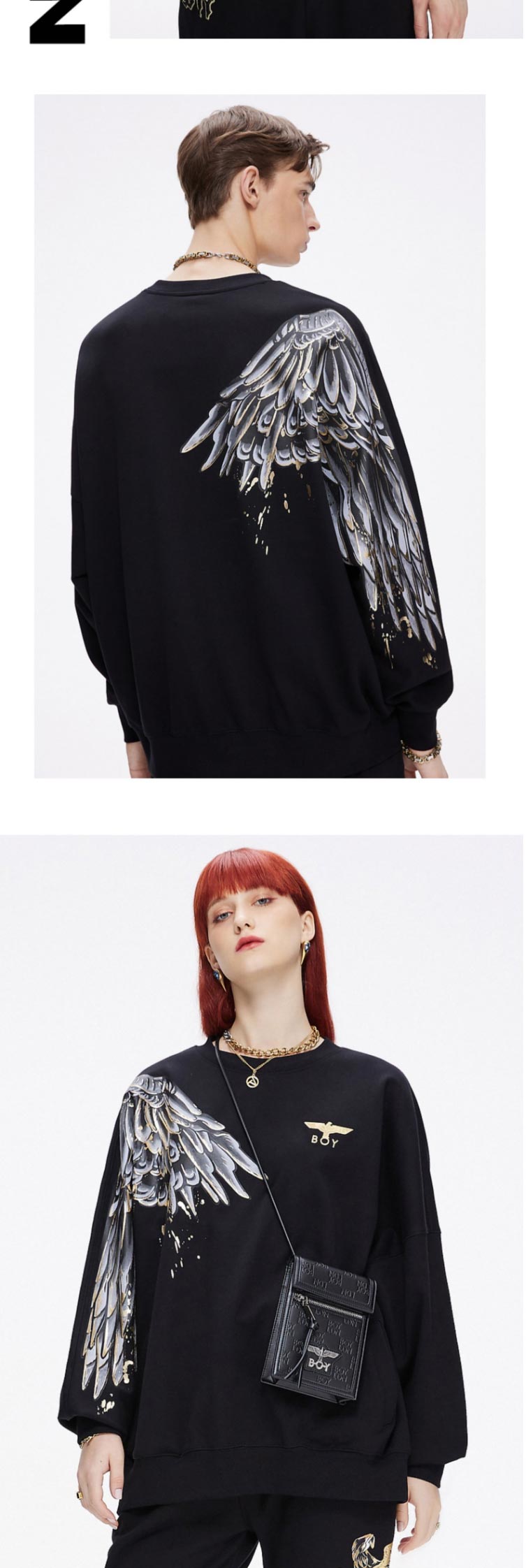 BOY2021水墨印花翅膀潮卫衣B213NB205202