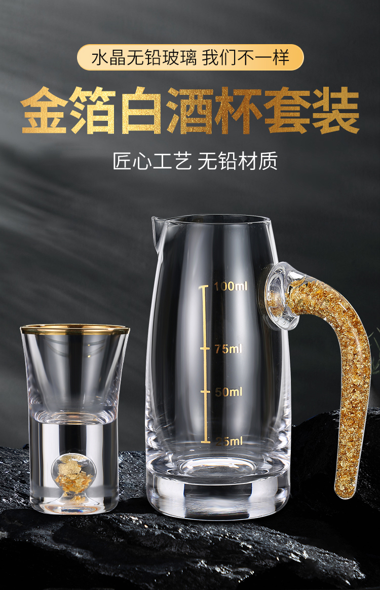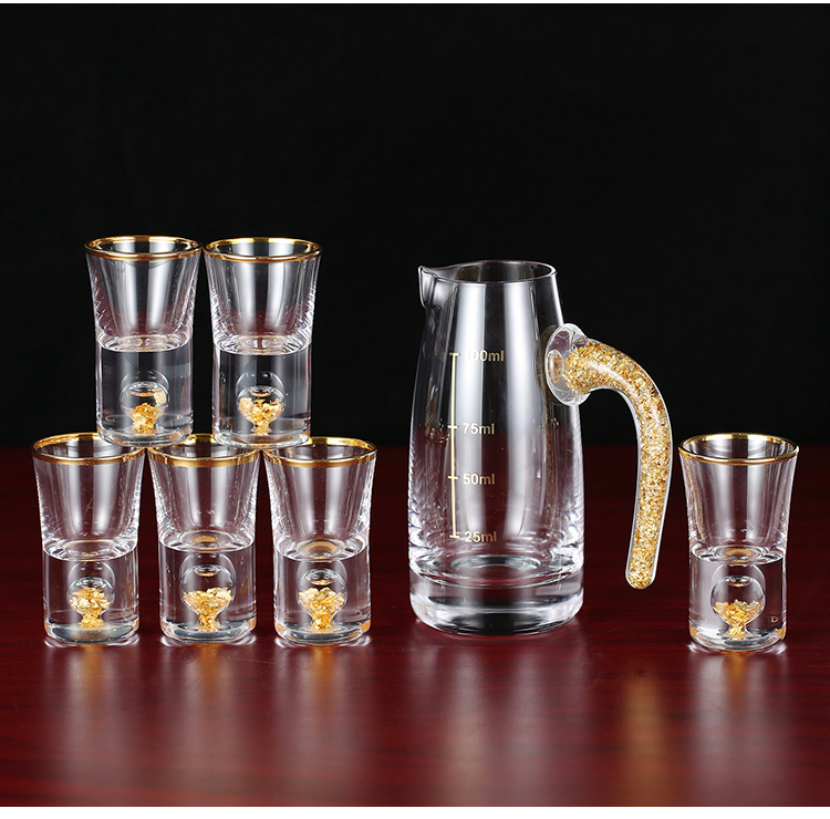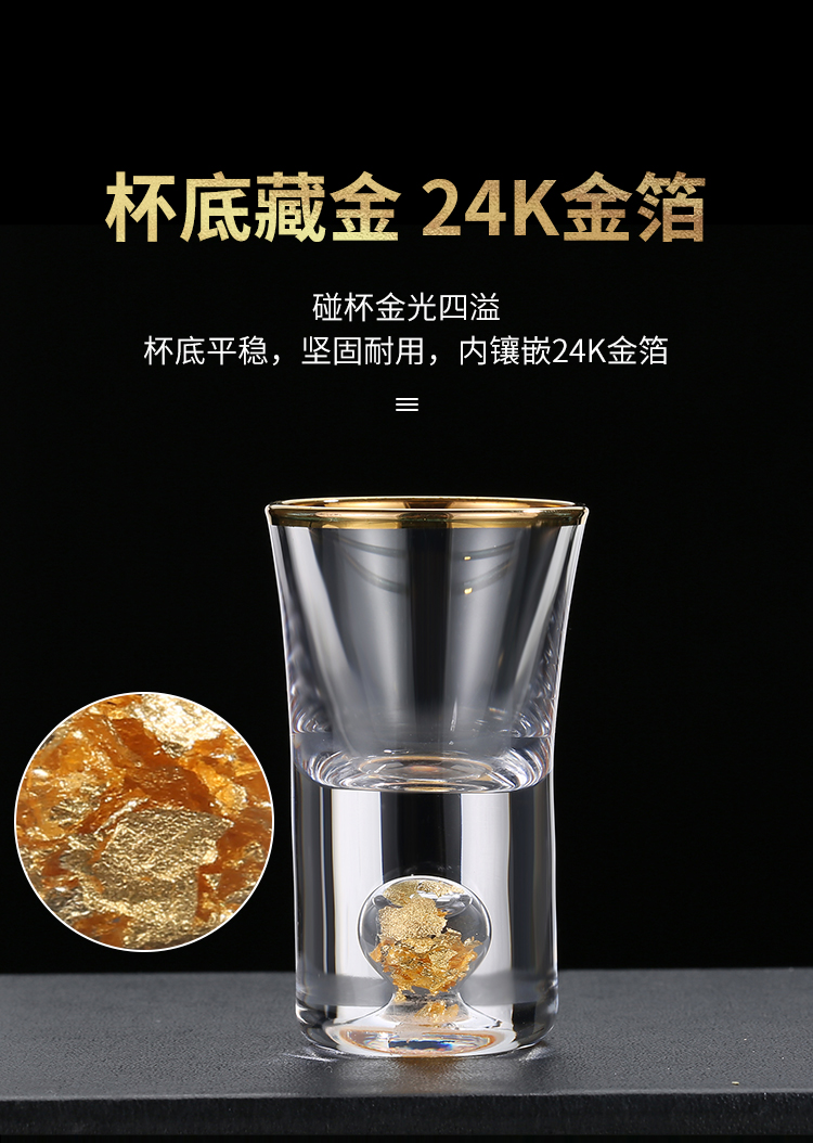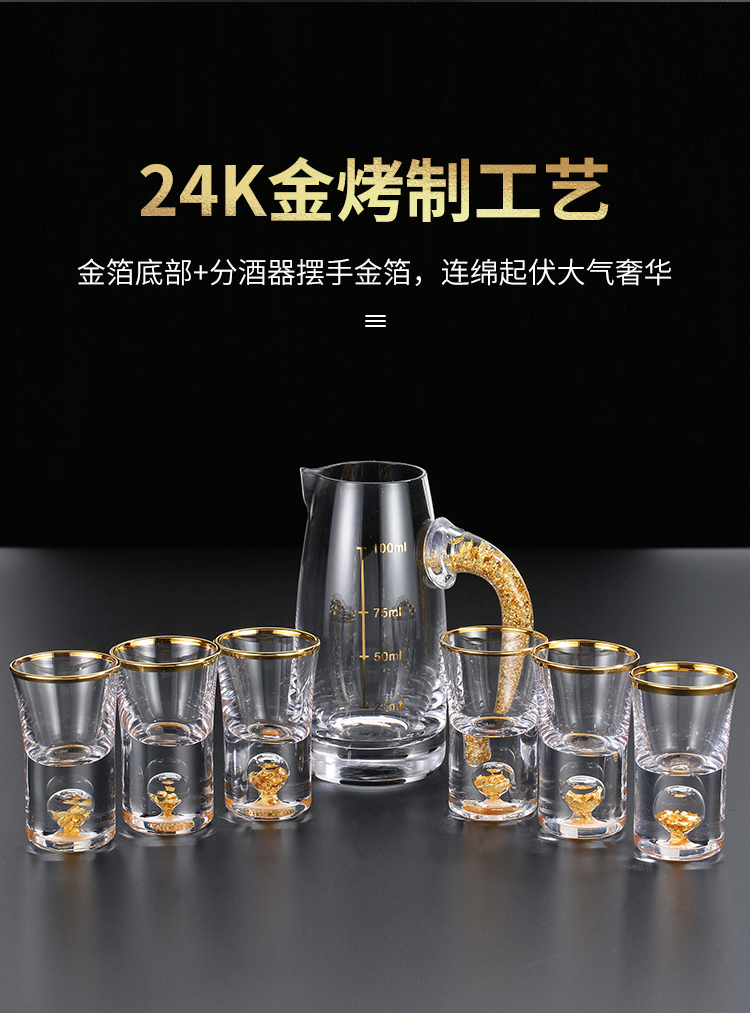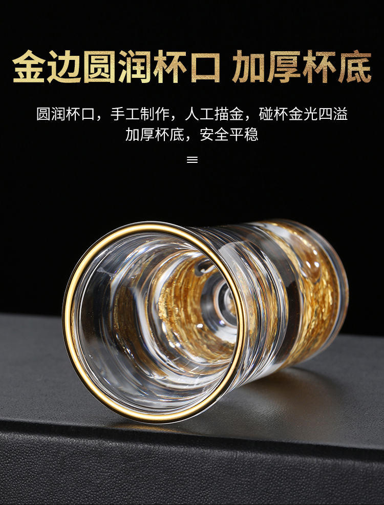 金箔白酒杯酒具套装礼盒分酒器高档金边一口杯水晶小酒盅喝酒杯子