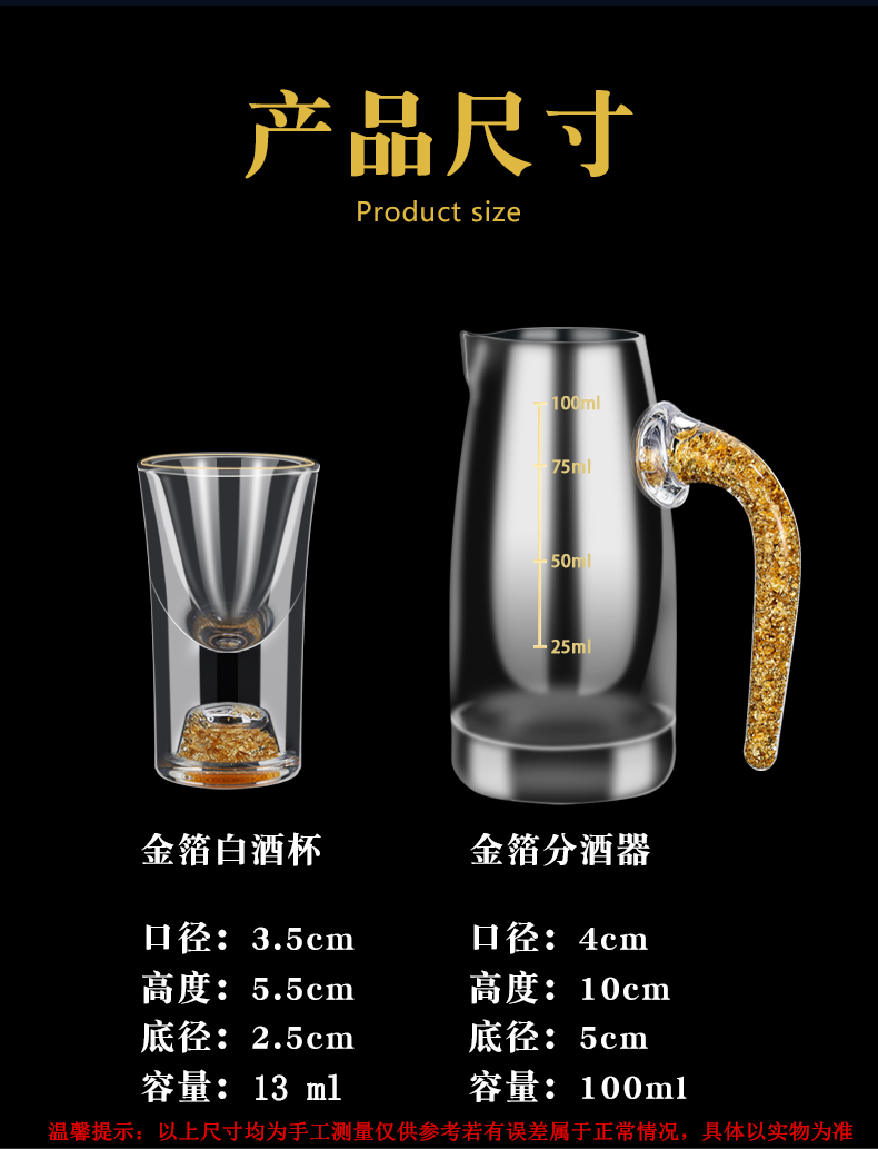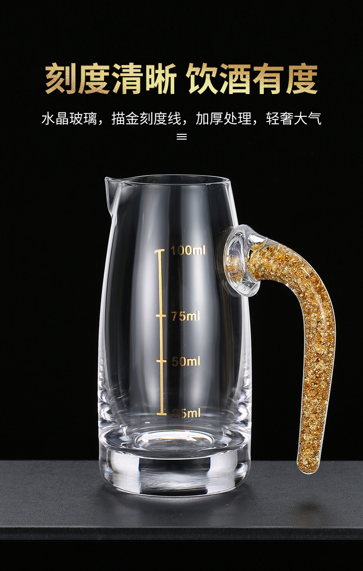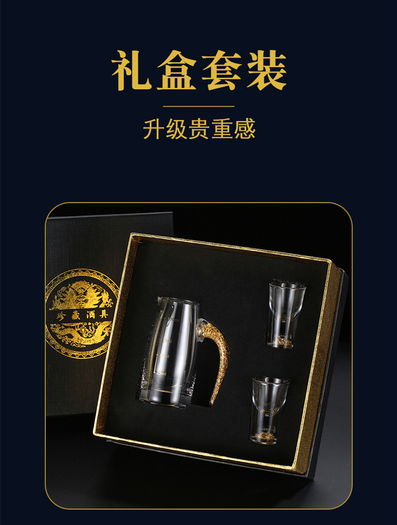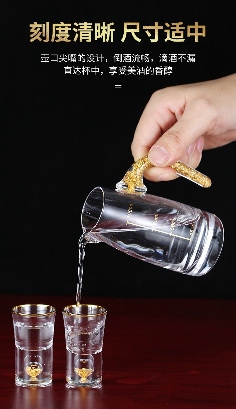 金箔白酒杯酒具套装礼盒分酒器高档金边一口杯水晶小酒盅喝酒杯子
