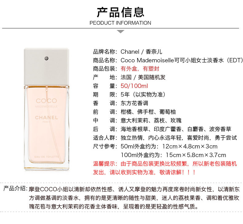 CHANEL 香奈儿 coco小姐香水白盒淡香水 EDT 法国
