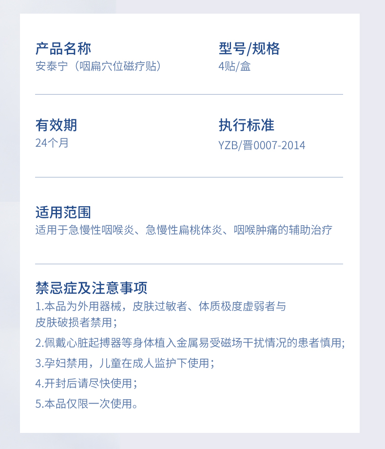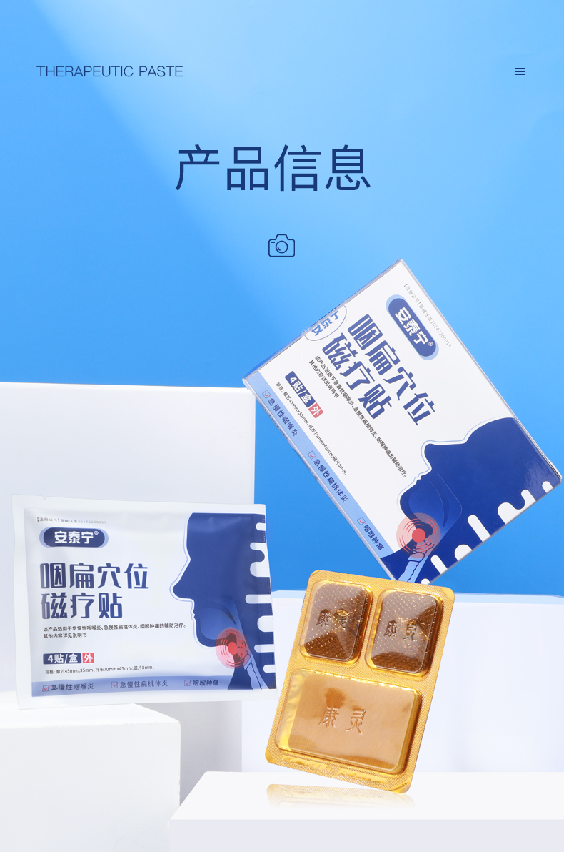 安泰宁咽扁穴位磁疗贴辅助治疗急慢性咽喉炎扁桃体炎咽喉肿痛正品