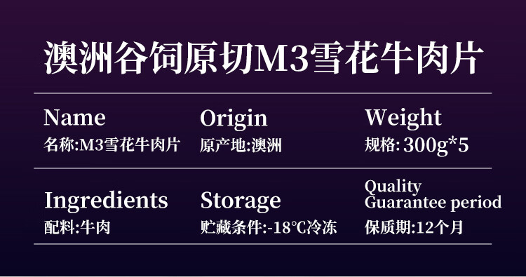 春禾秋牧 澳洲M3雪花牛肉片300g*5