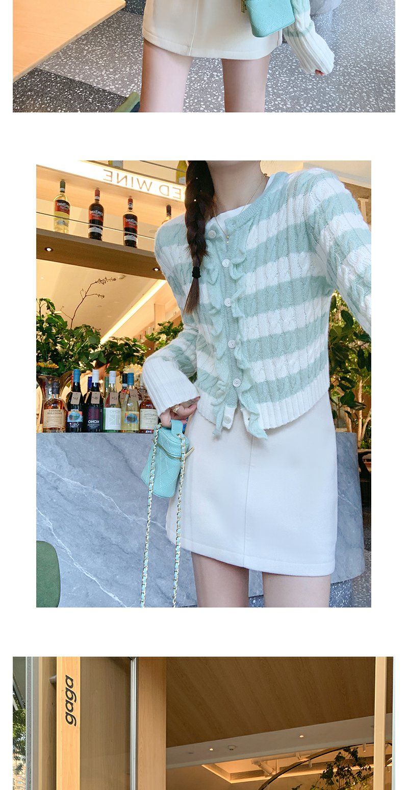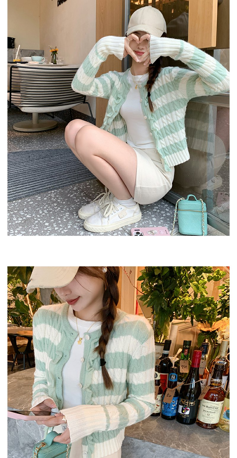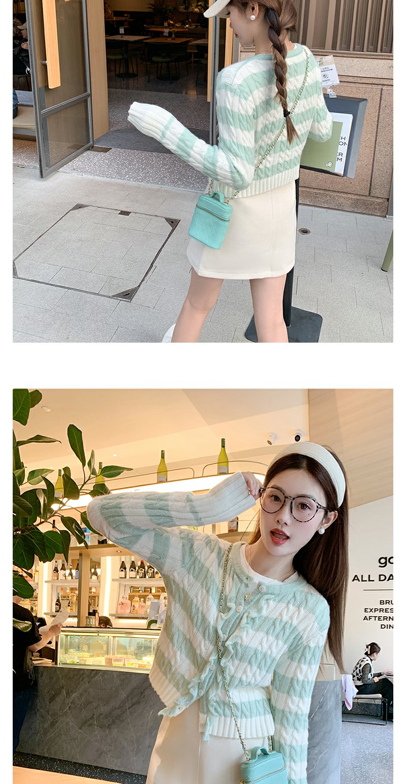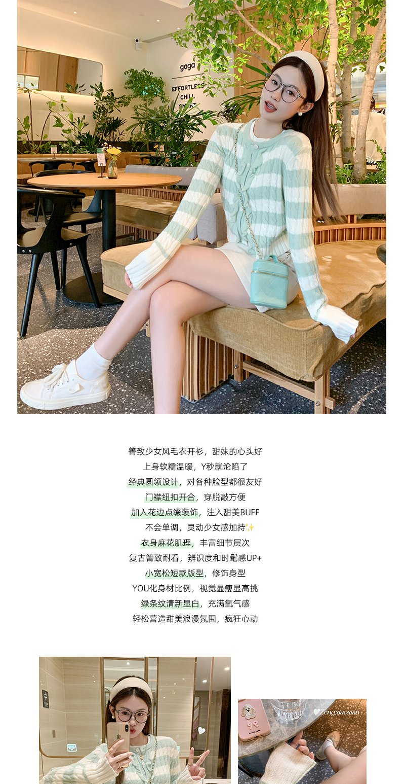 【169元任选2件】最后一波现货!设计感修身短款条纹系扣毛织衫