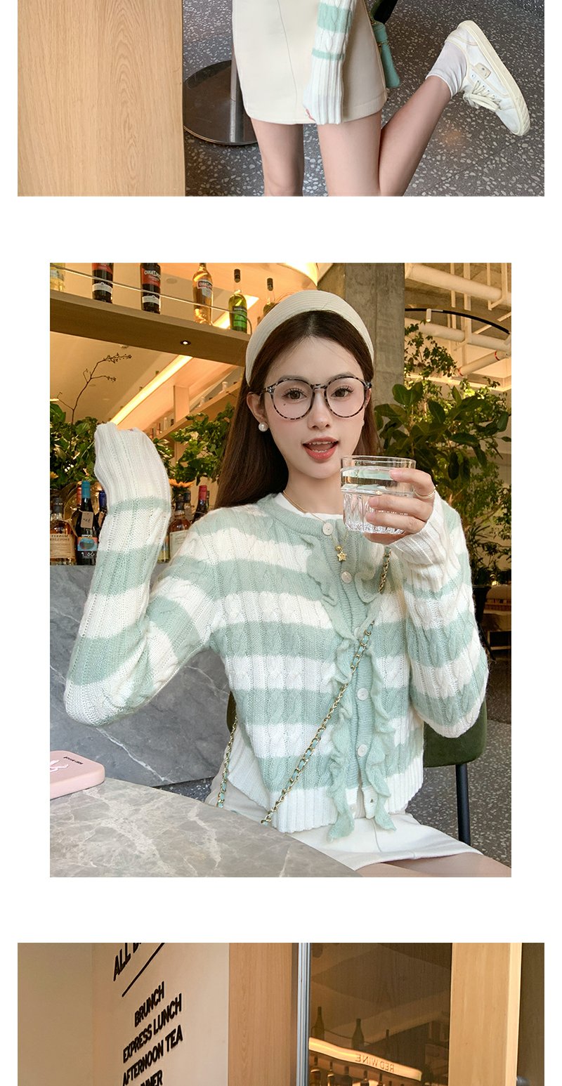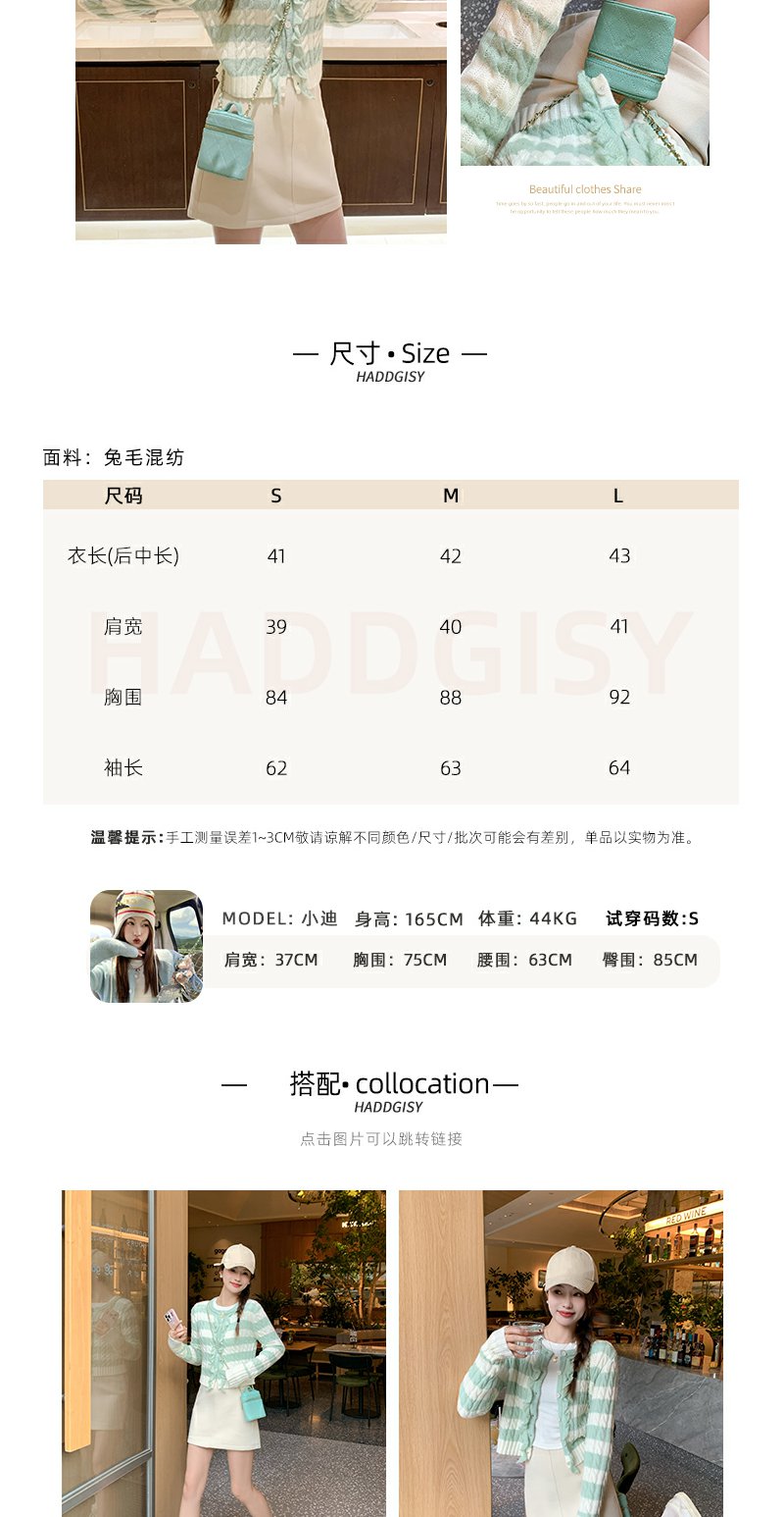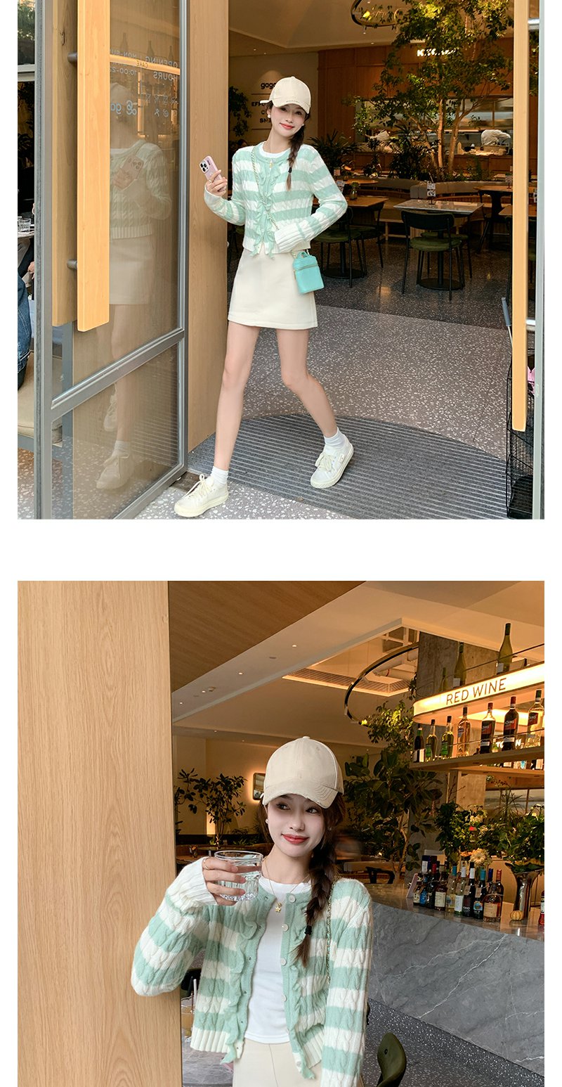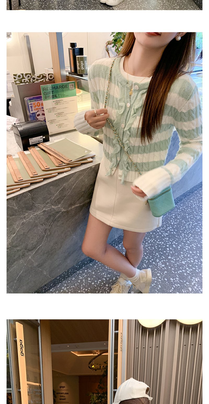 【169元任选2件】最后一波现货!设计感修身短款条纹系扣毛织衫
