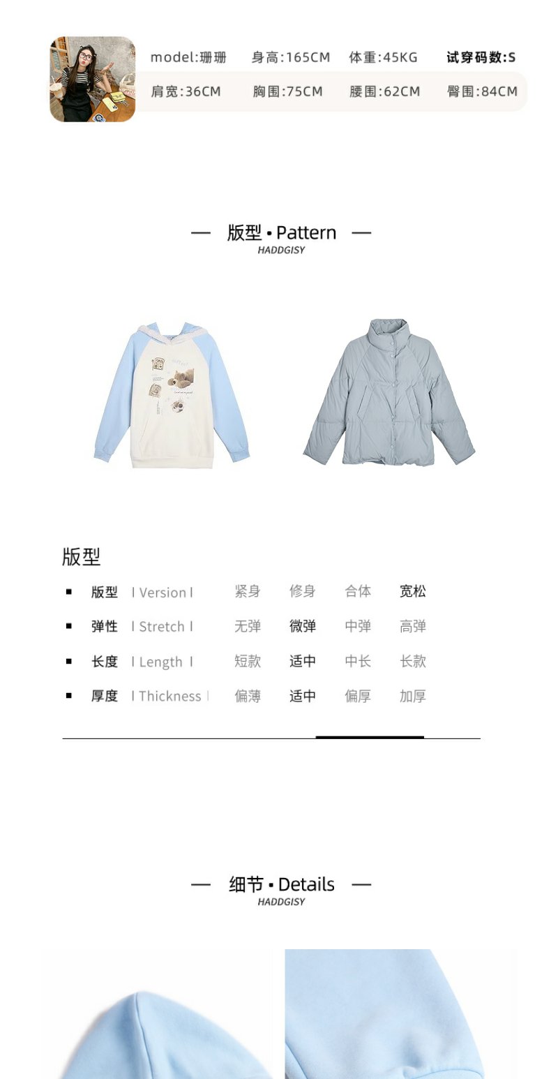 <曾小咸推荐>【韩系叠穿】蓝色棉服+卫衣+鲨鱼裤