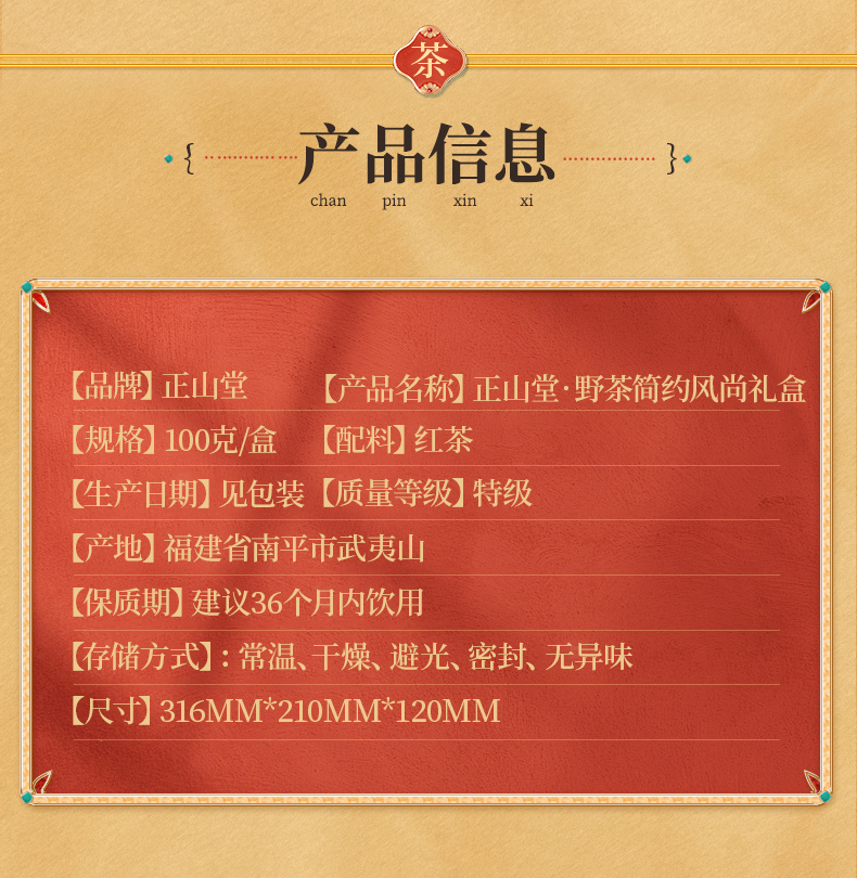 正山堂茶业正山小种野茶简约风尚礼盒装特级正宗野生红茶送礼100g