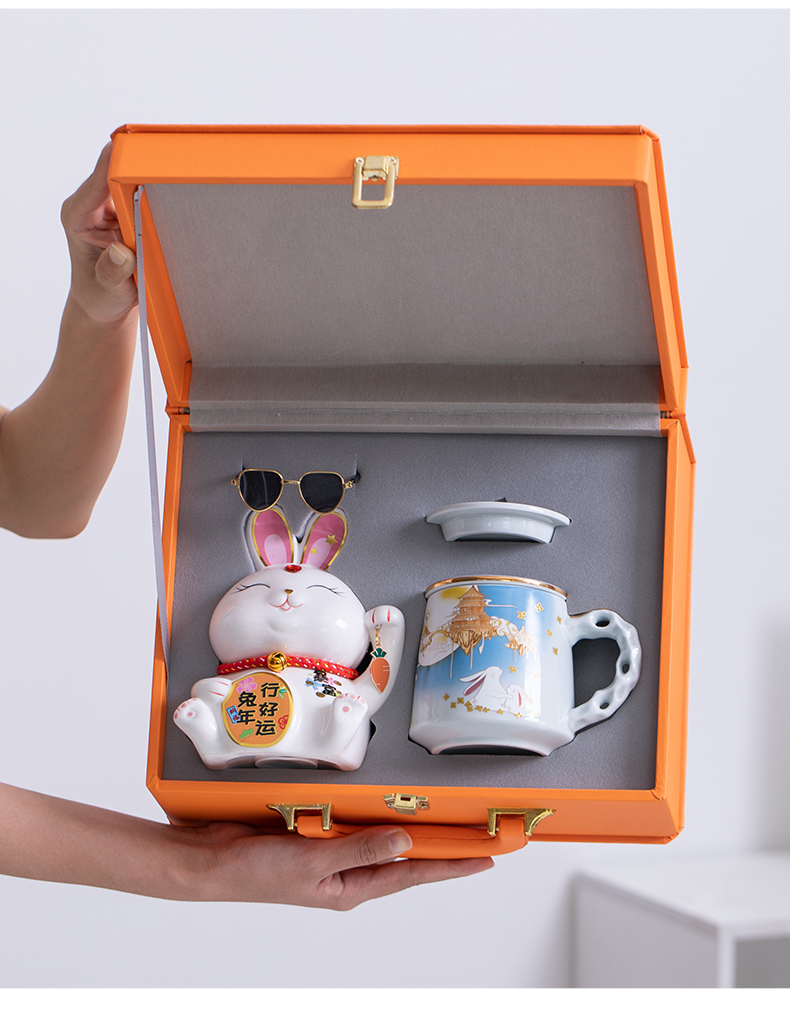 【优雅好礼】珍瓷窑 玉兔办公茶礼 礼盒装