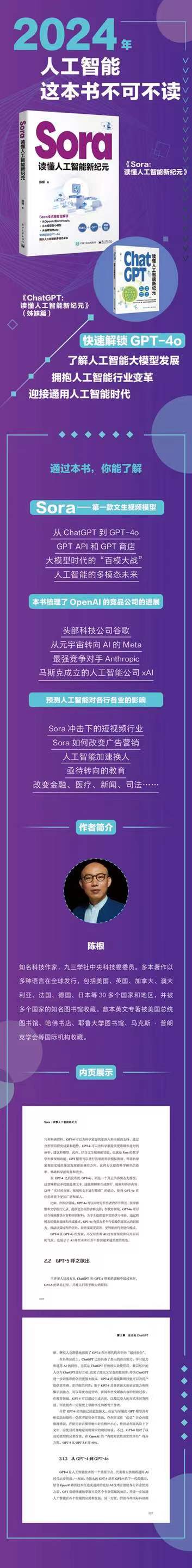 《ChatGPT:读懂人工智能新纪元》的姊妹篇,详述了Sora的技术和应用,梳理了OpenAI公司于2023年的发展与今后的布局,剖析了大模型路线即将引发的社会变革