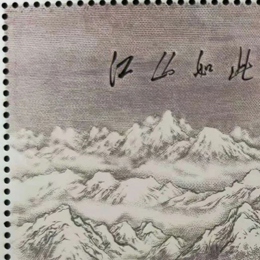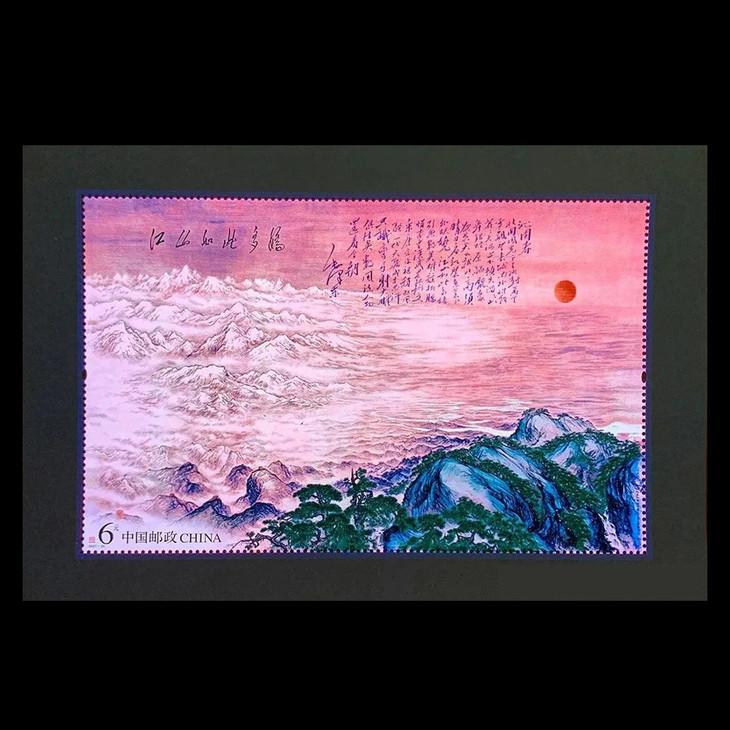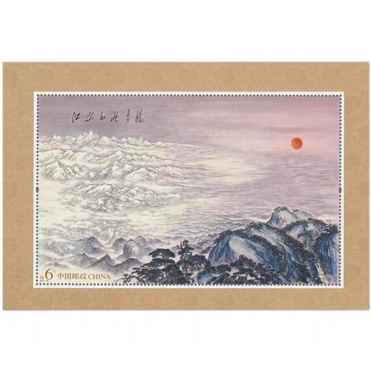9月25日,中国邮政正式发行《江山如此多娇》小型张,1套1枚,面值6元,发行量600万套,尺寸156x106毫米。