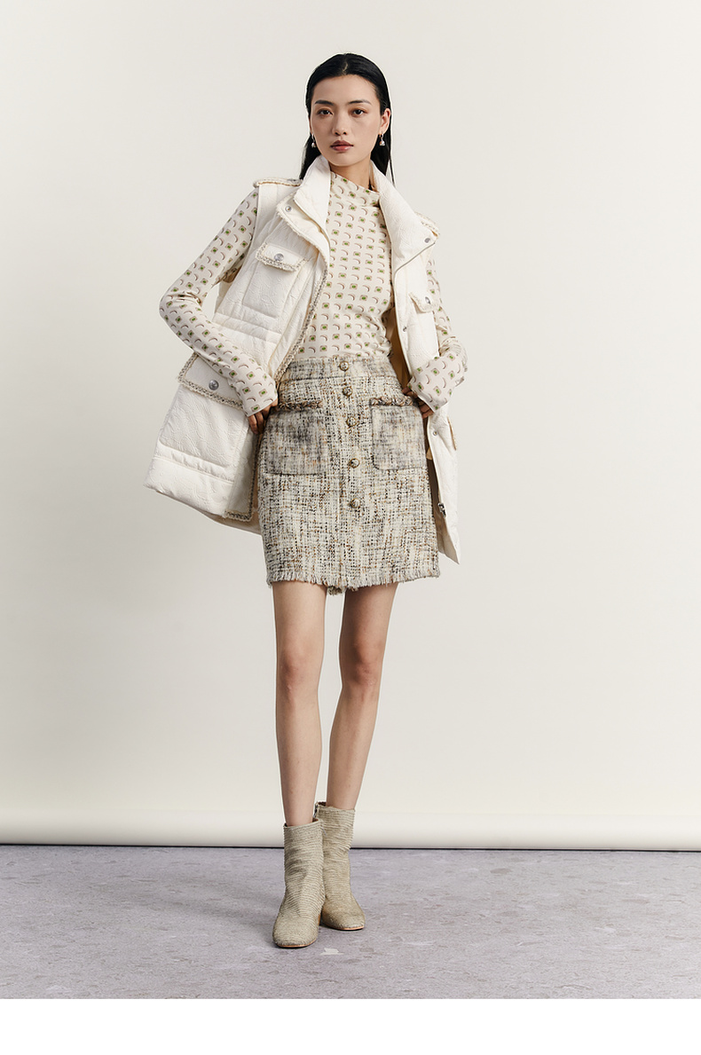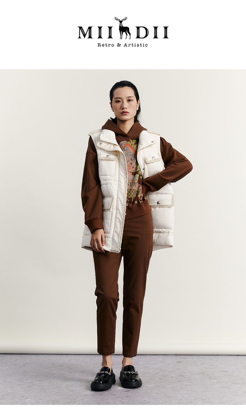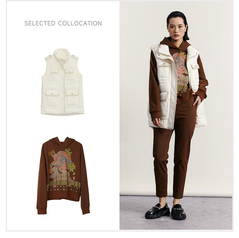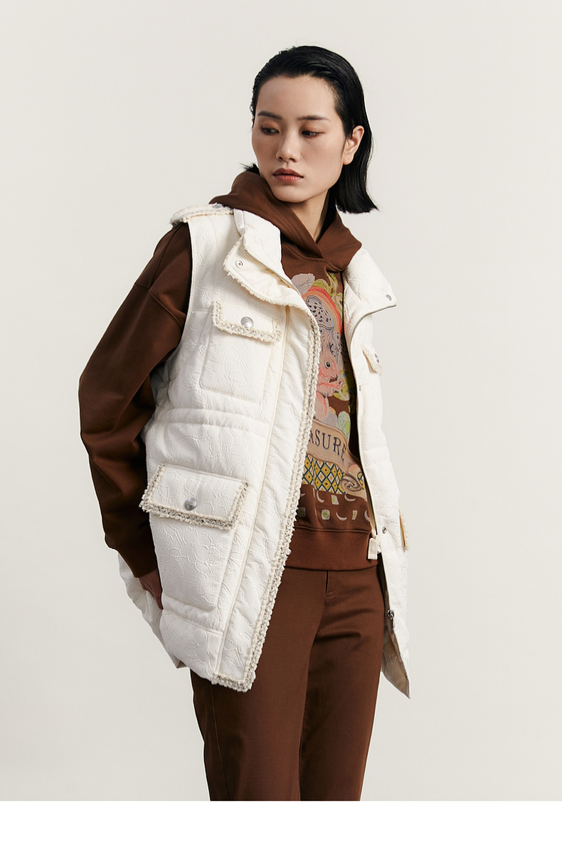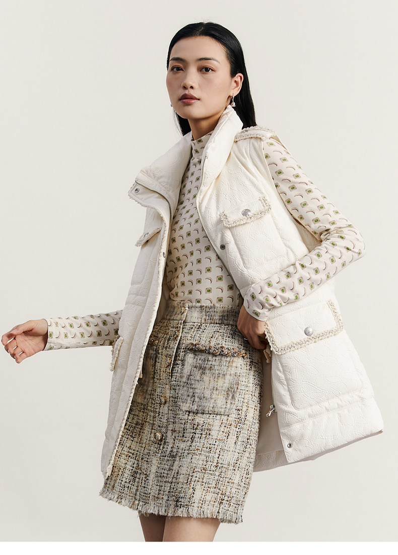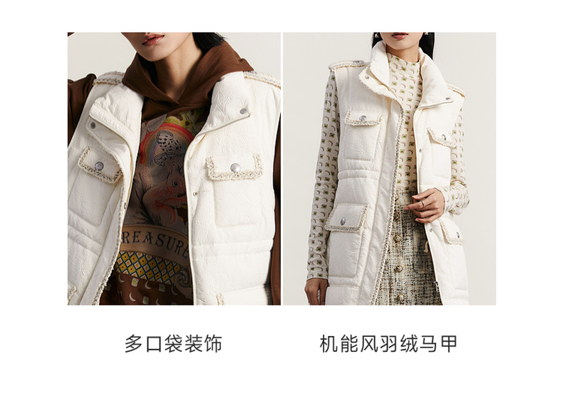 谜底羽绒马甲女2023秋季新款时尚气质立领中长款羽绒服233MY0991