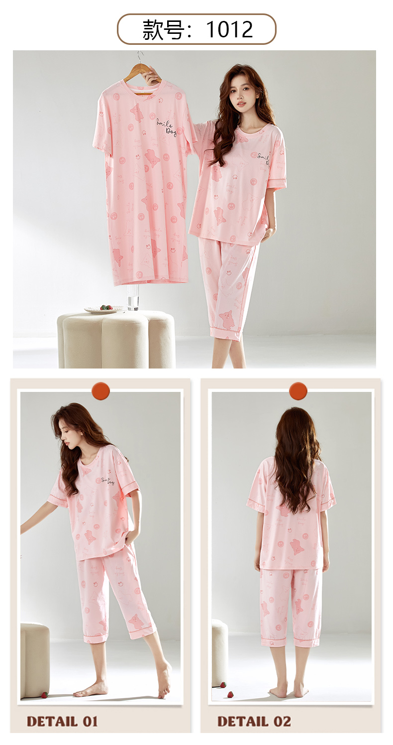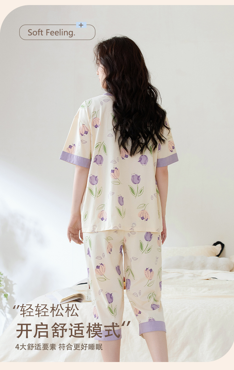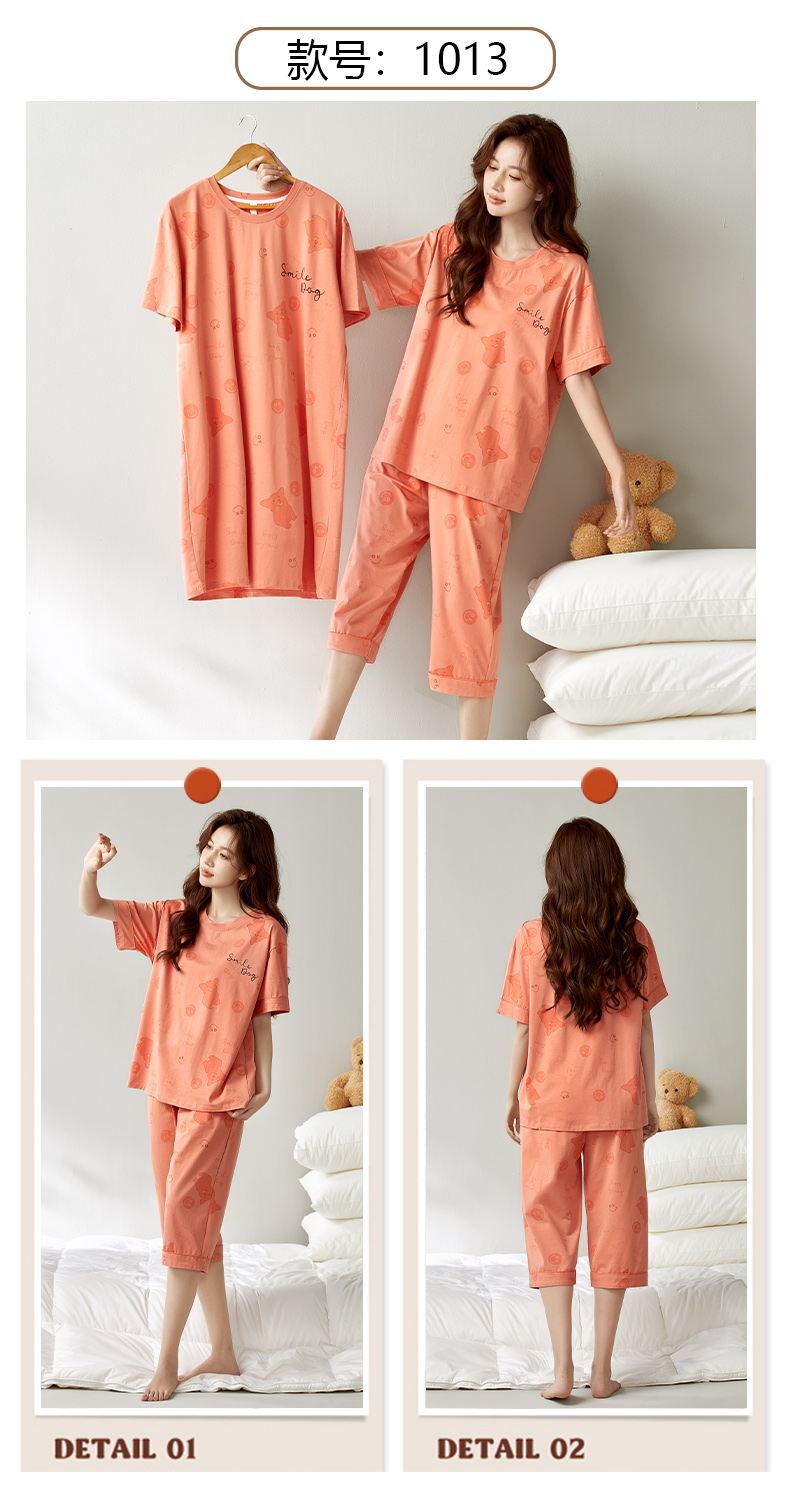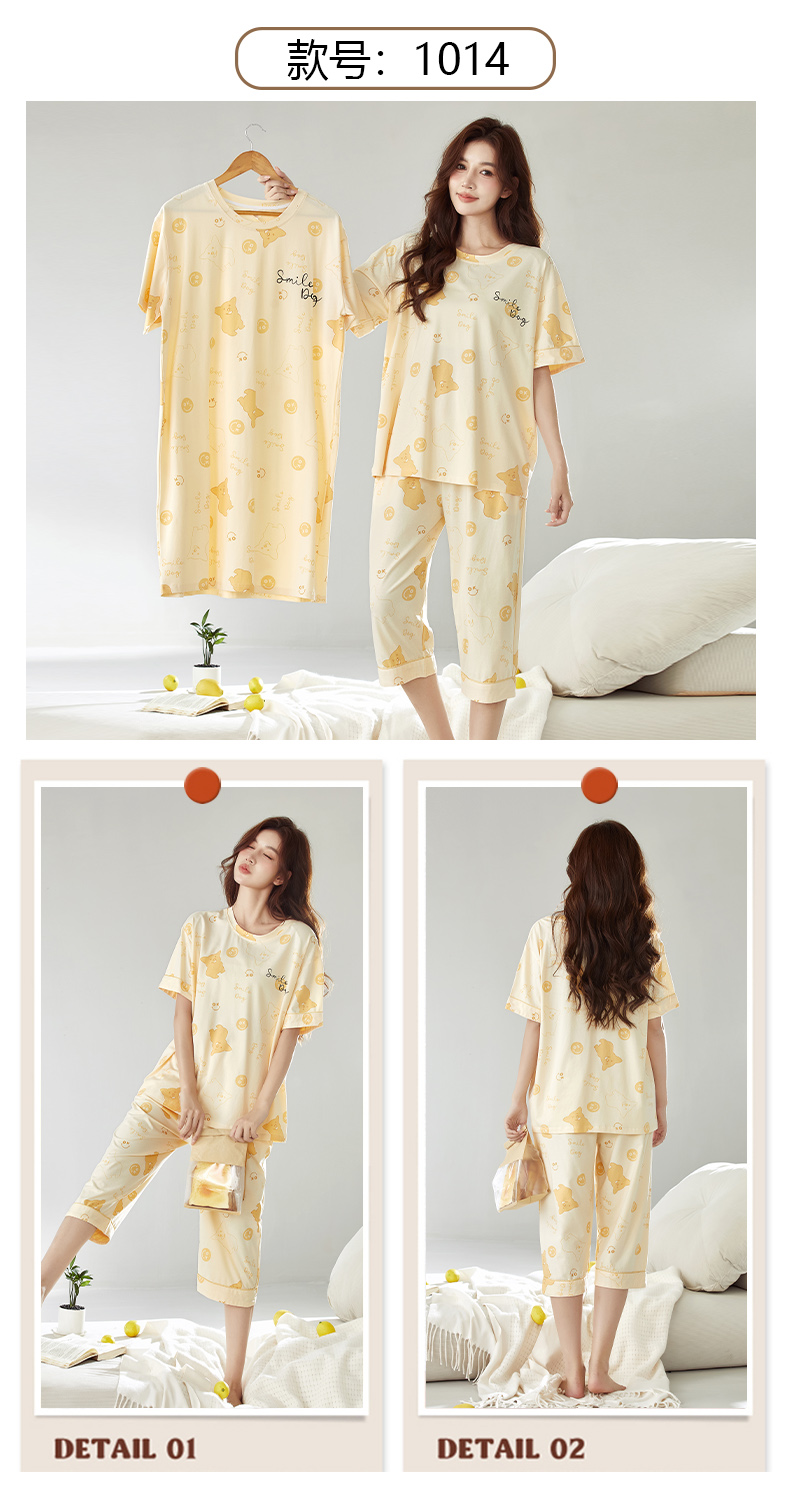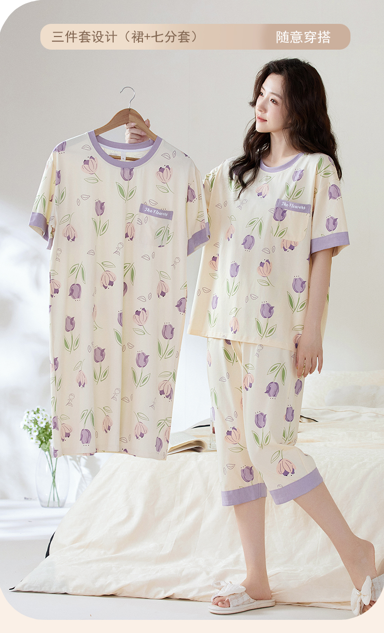 【初夏焕新】自然醒白柔女士家居服牛奶丝三件套裙+七分套头睡衣QH