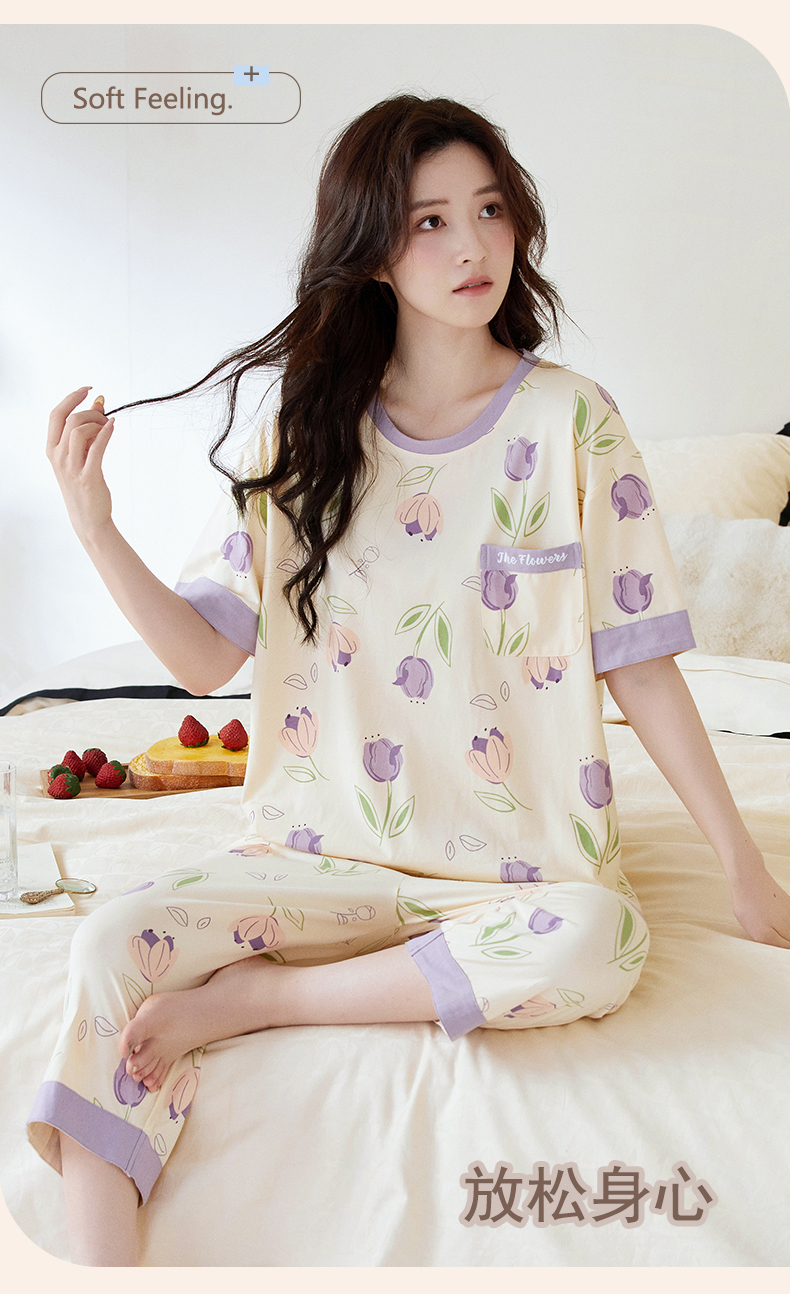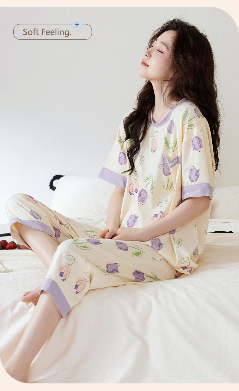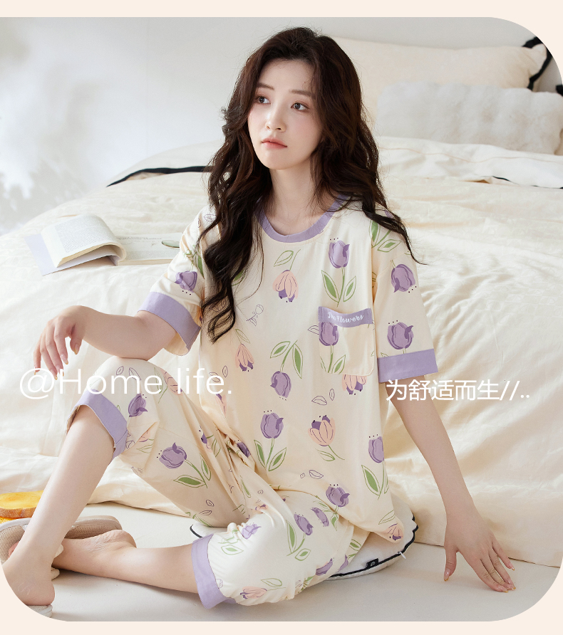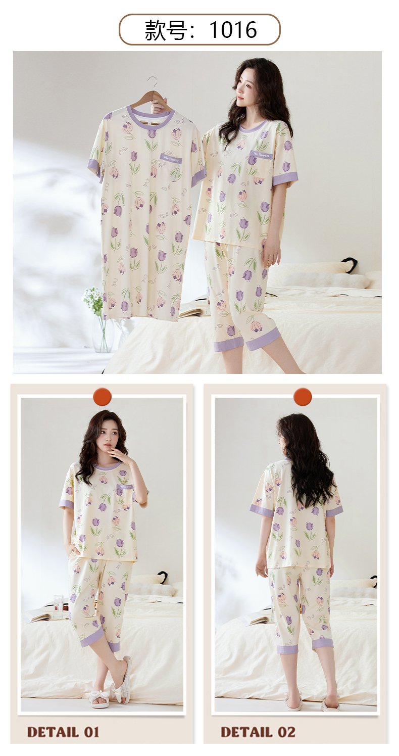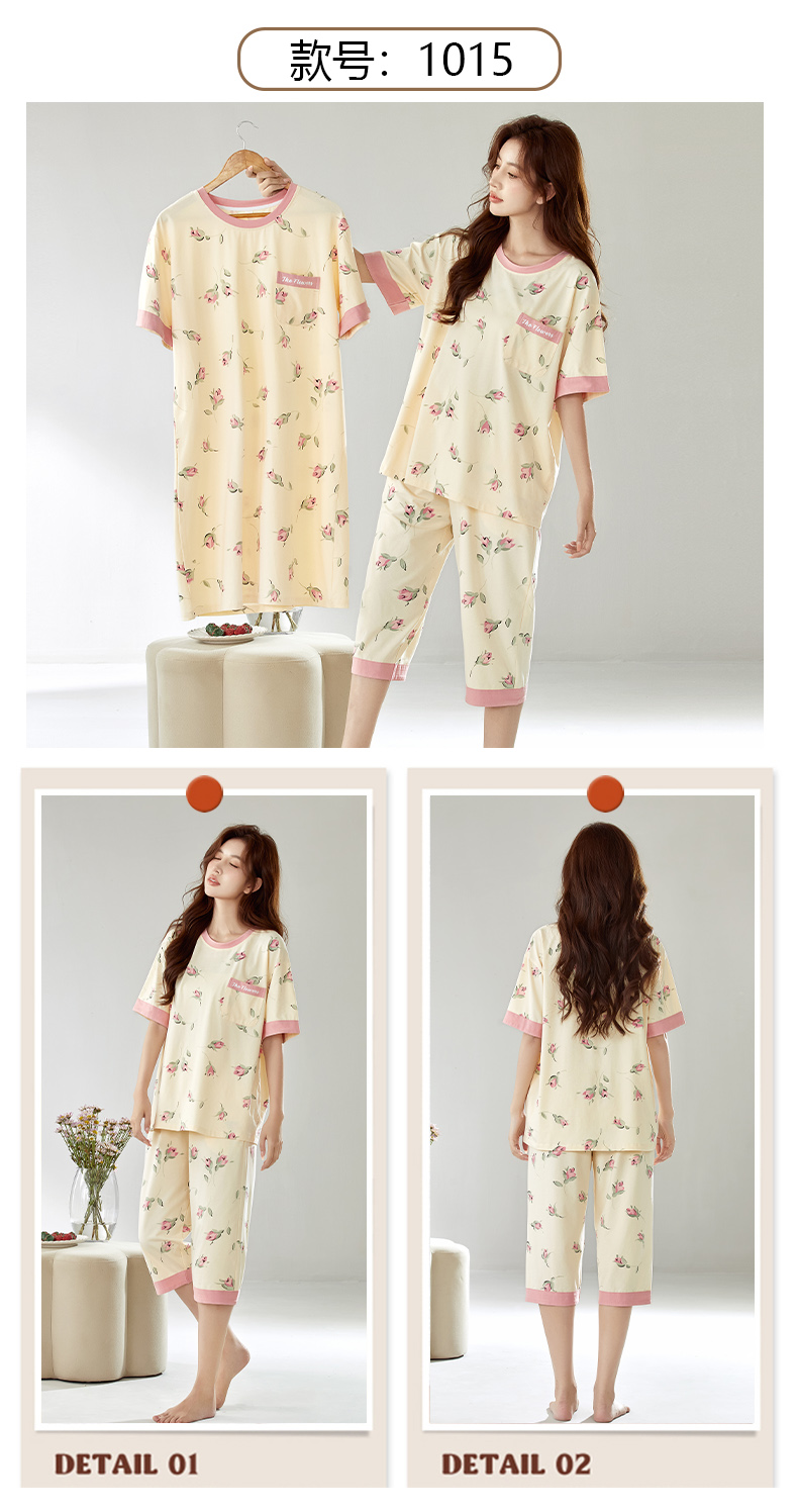 【初夏焕新】自然醒白柔女士家居服牛奶丝三件套裙+七分套头睡衣QH