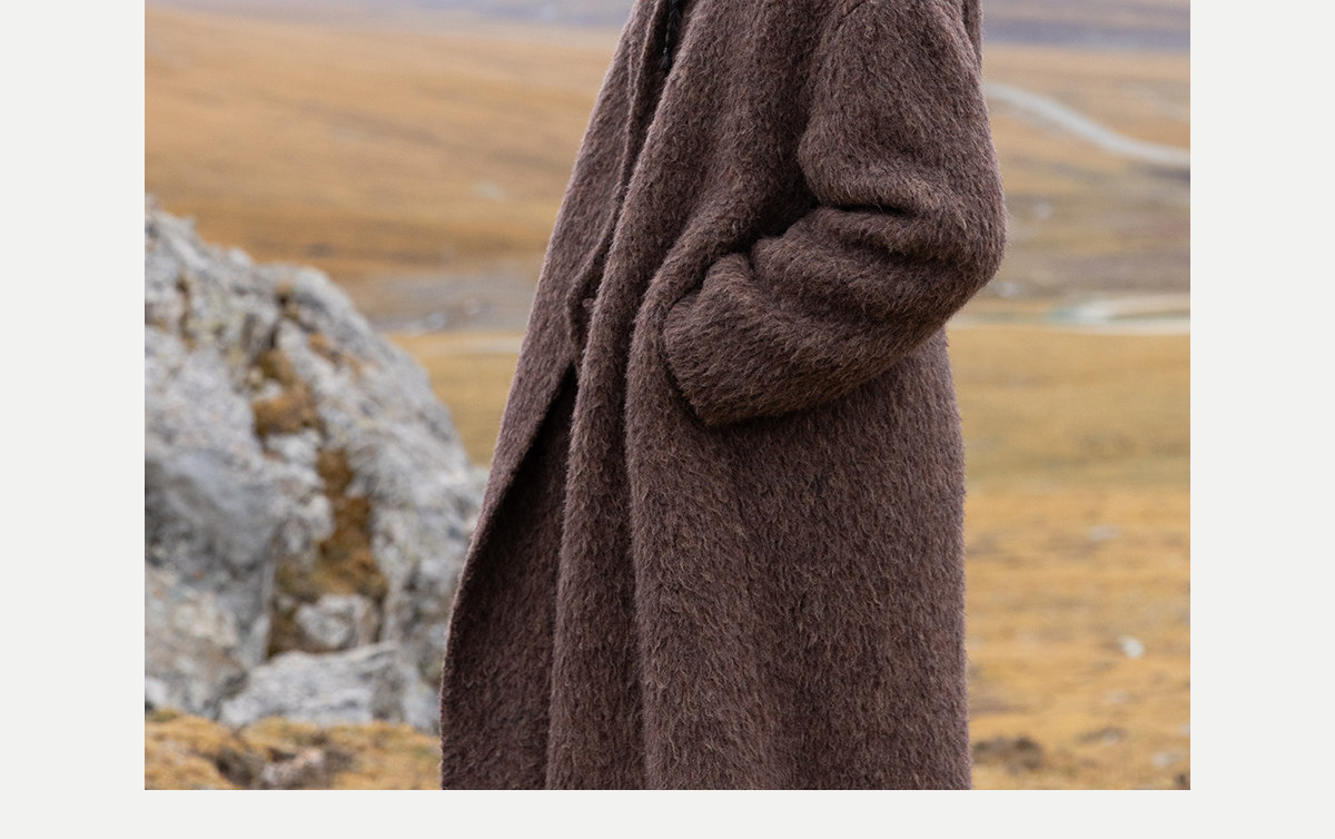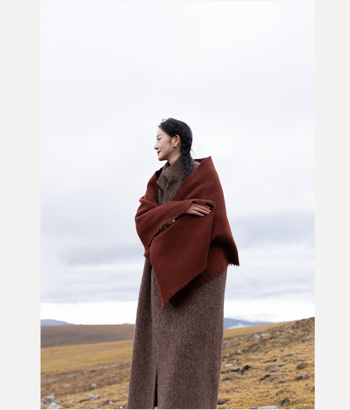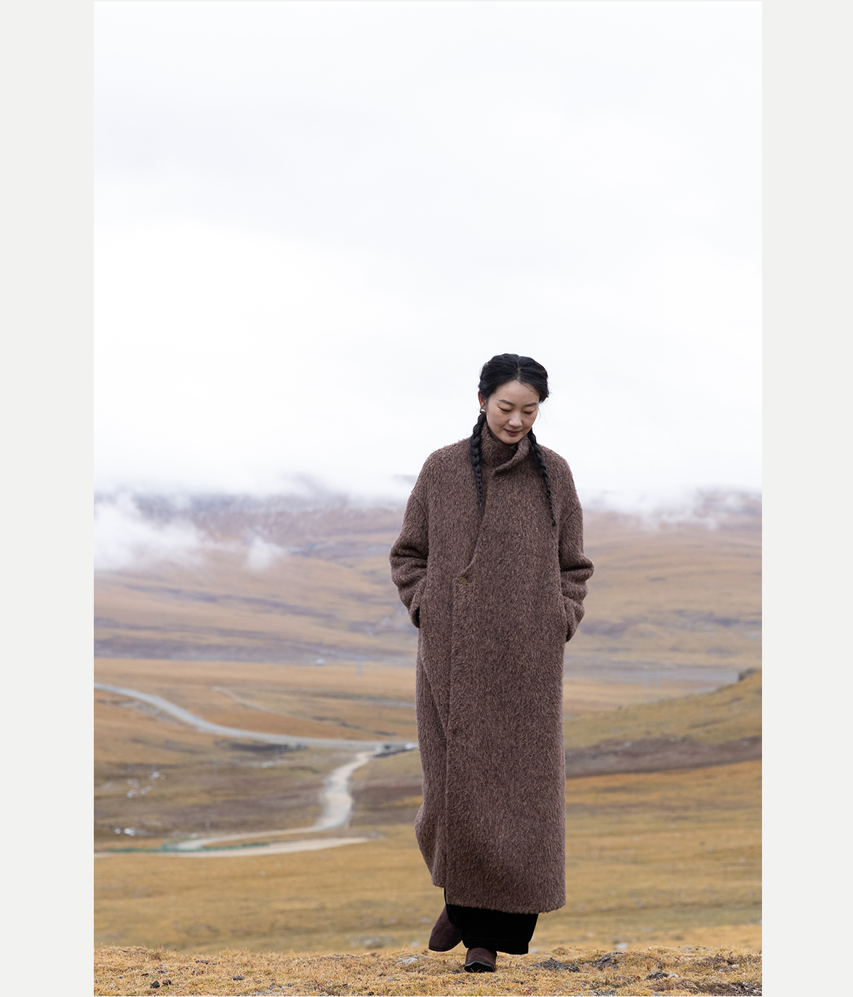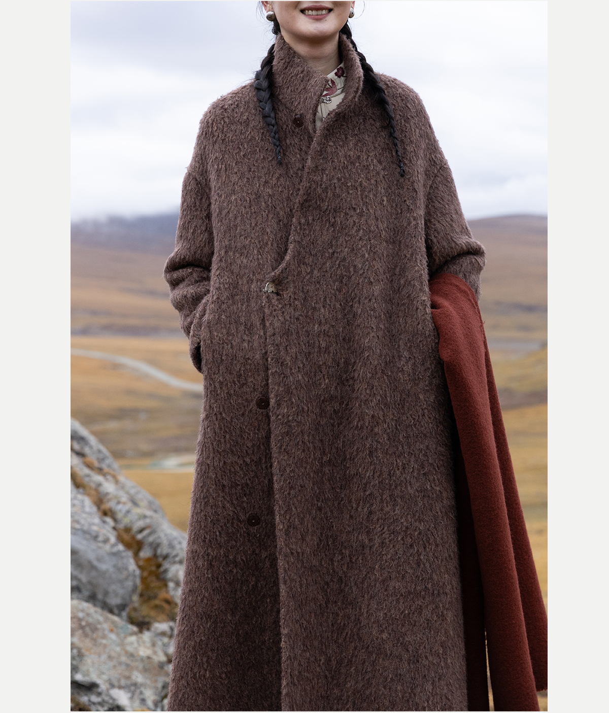 牧衣游原创 进口羊驼毛混纺羊羔毛长外套古朴中式风毛呢外套 时染