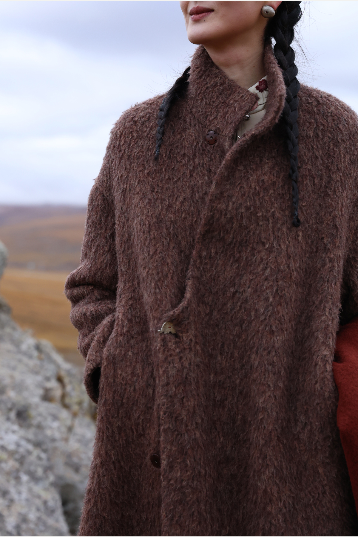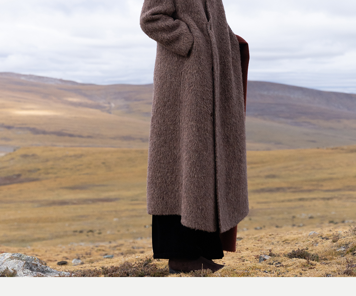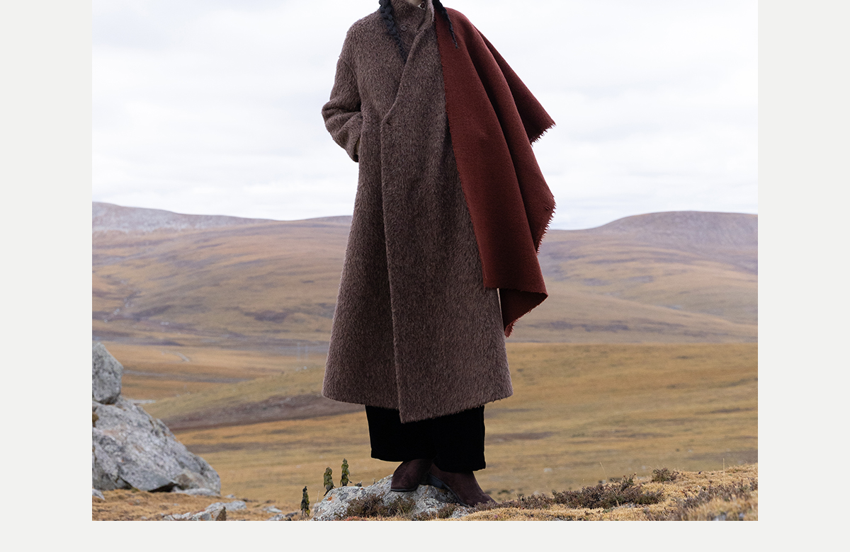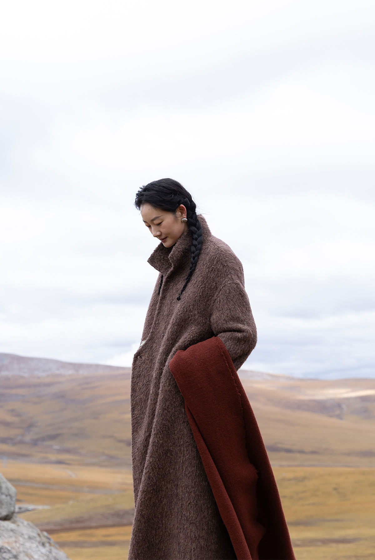 牧衣游原创 进口羊驼毛混纺羊羔毛长外套古朴中式风毛呢外套 时染